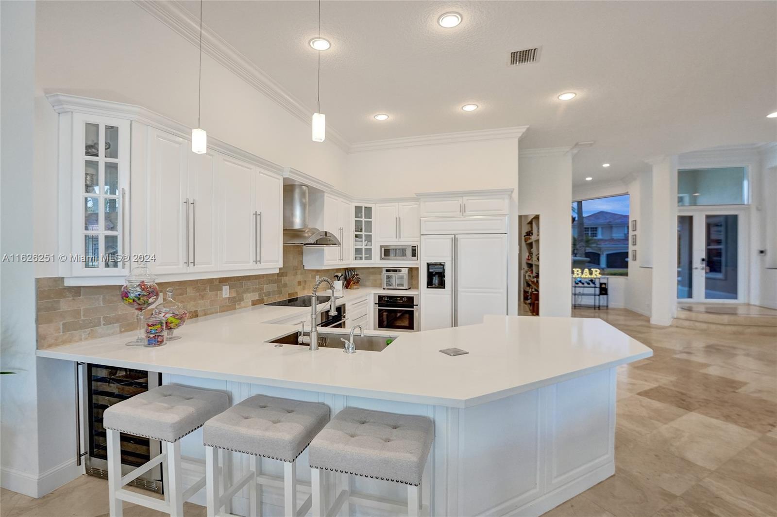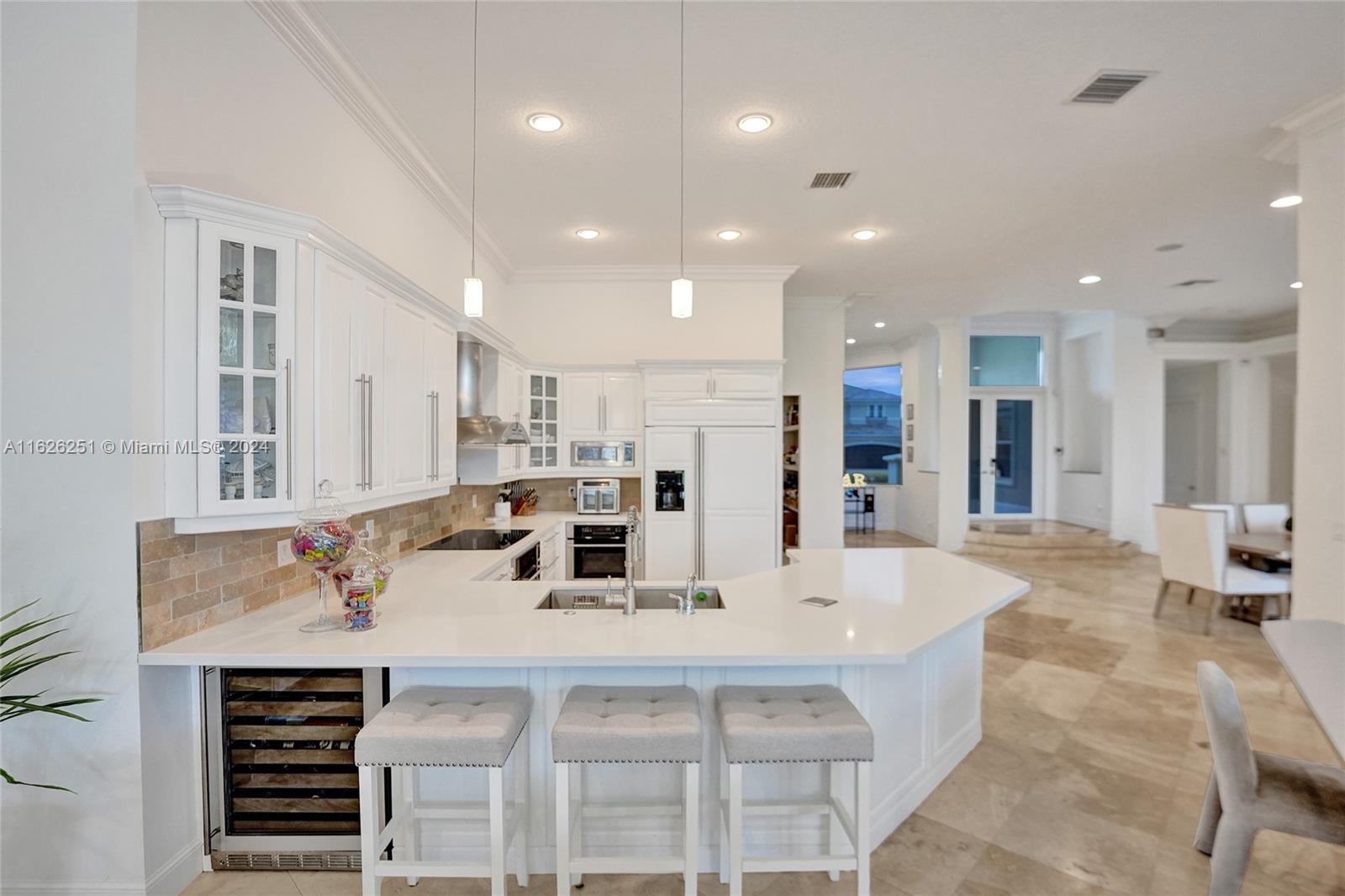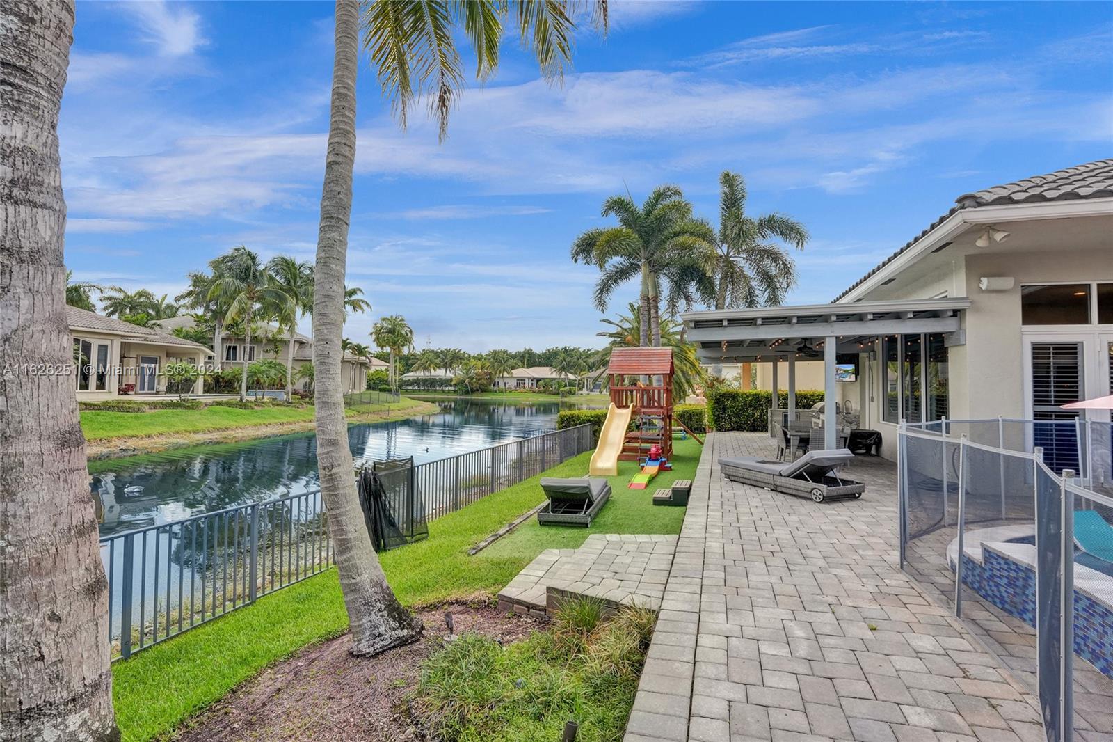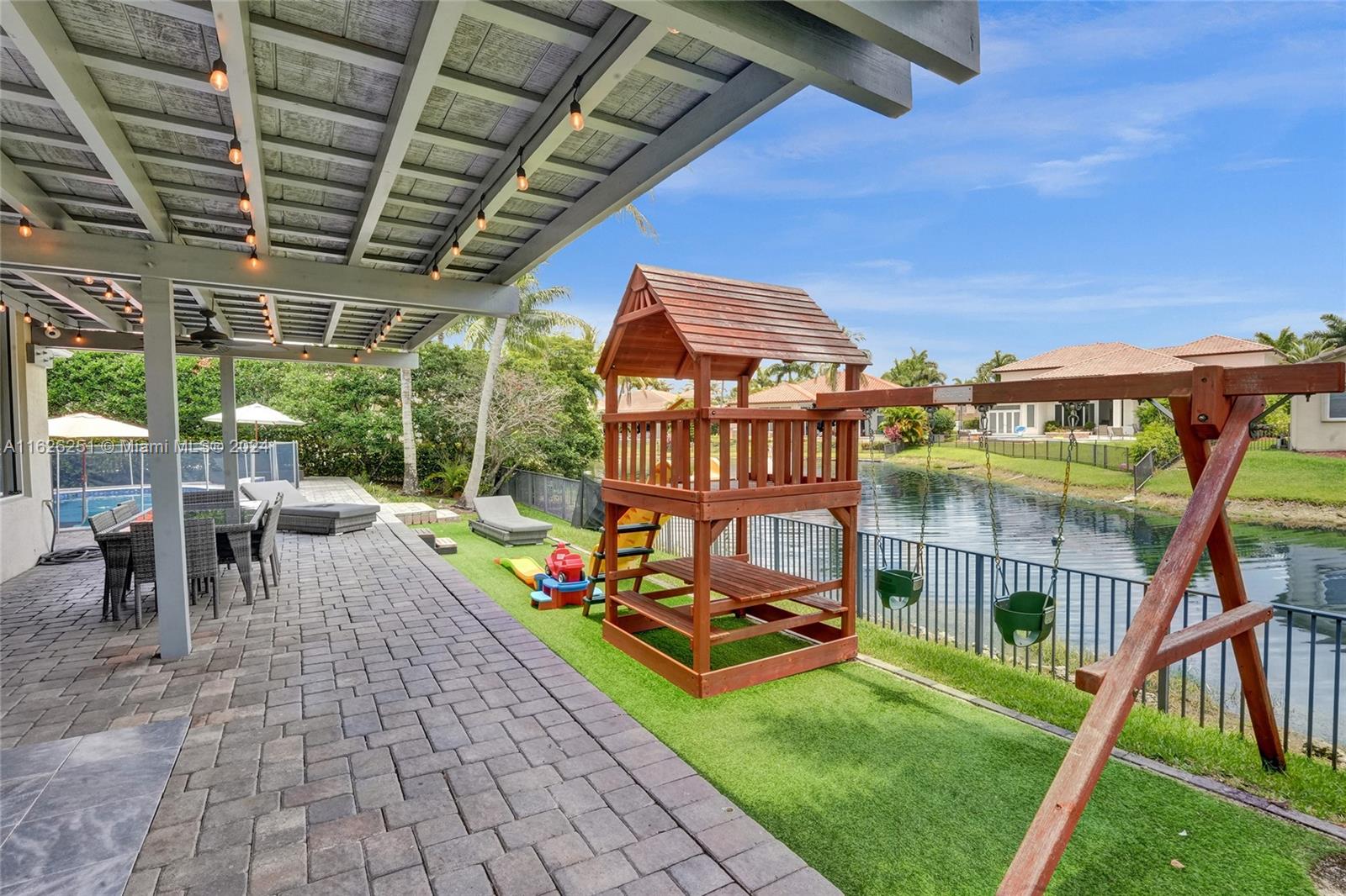 Country Club lifestyle in the guarded gated Hawks Landing community with state-of-the-art amenities including a full gym, tennis, pickle ball courts, and more. This home is a beautiful lake front property. It boasts a brand-new roof installed July 2024 w/ 4 bed & 3.5 bath, and an additional office/playroom, brand new outdoor kitchen, pergola and newly updated heated saltwater pool w/ sun-shelf. Inside the home you will find designer finishes throughout the kitchen, a large custom walk-in pantry, marble floors, master bedroom has an oversized tub w/ double vanities, his and her custom built in closets, 15kw home generator, full home water purification system, full home air conditioning purification system.