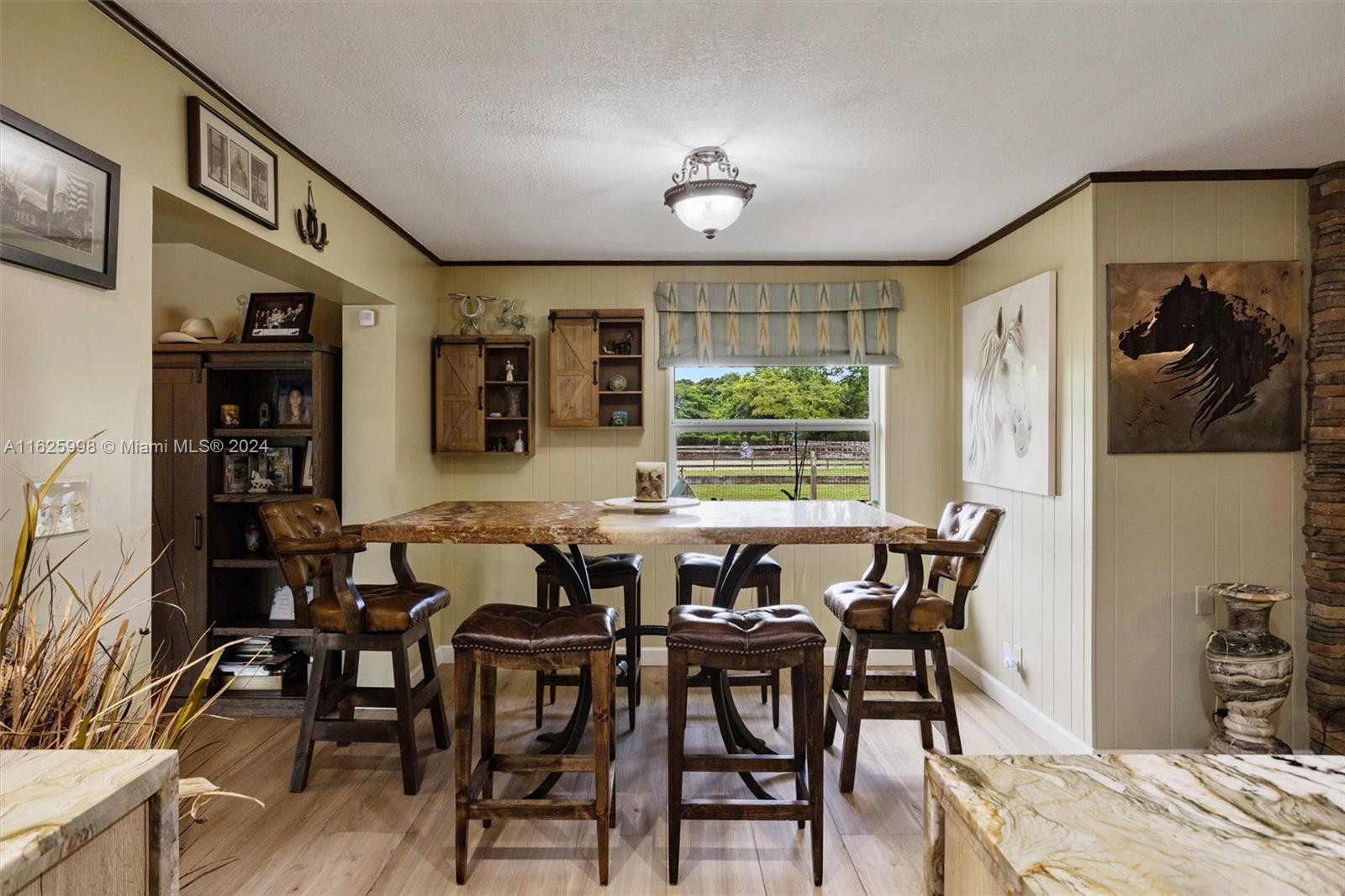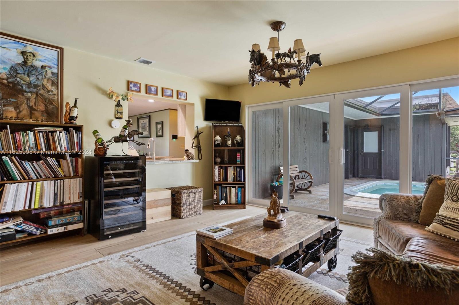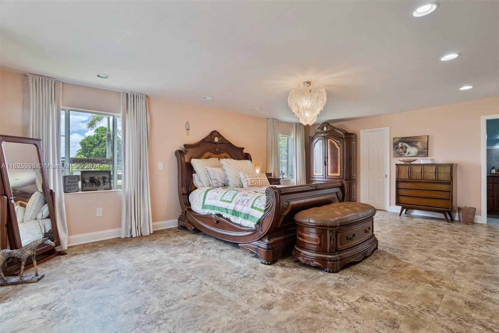 2.51 acre lot in desirable Southwest Ranches! This 3 bedroom 3 bath home boasts an newly updated island kitchen with ample storage & an office. Impact windows & accordion shutters throughout provide natural light & security. A stunning electric fireplace greets you in the living room. The primary bedroom is oversized & the French doors open to the pool. Secondary bedrooms are large with ample storage. Includes a 4 stall barn with a tack room, built to withstand up to a Cat 3 Hurricane. Also a 1 stall barn with a feed room & paddock. 3 more paddocks give you lots of room to ride & turn out your horses. This high & dry lot is located near "A" rated schools, shops & restaurants. Whole house generator and new roof in 2022. Wake up to your horse in your back yard! Paradise awaits!