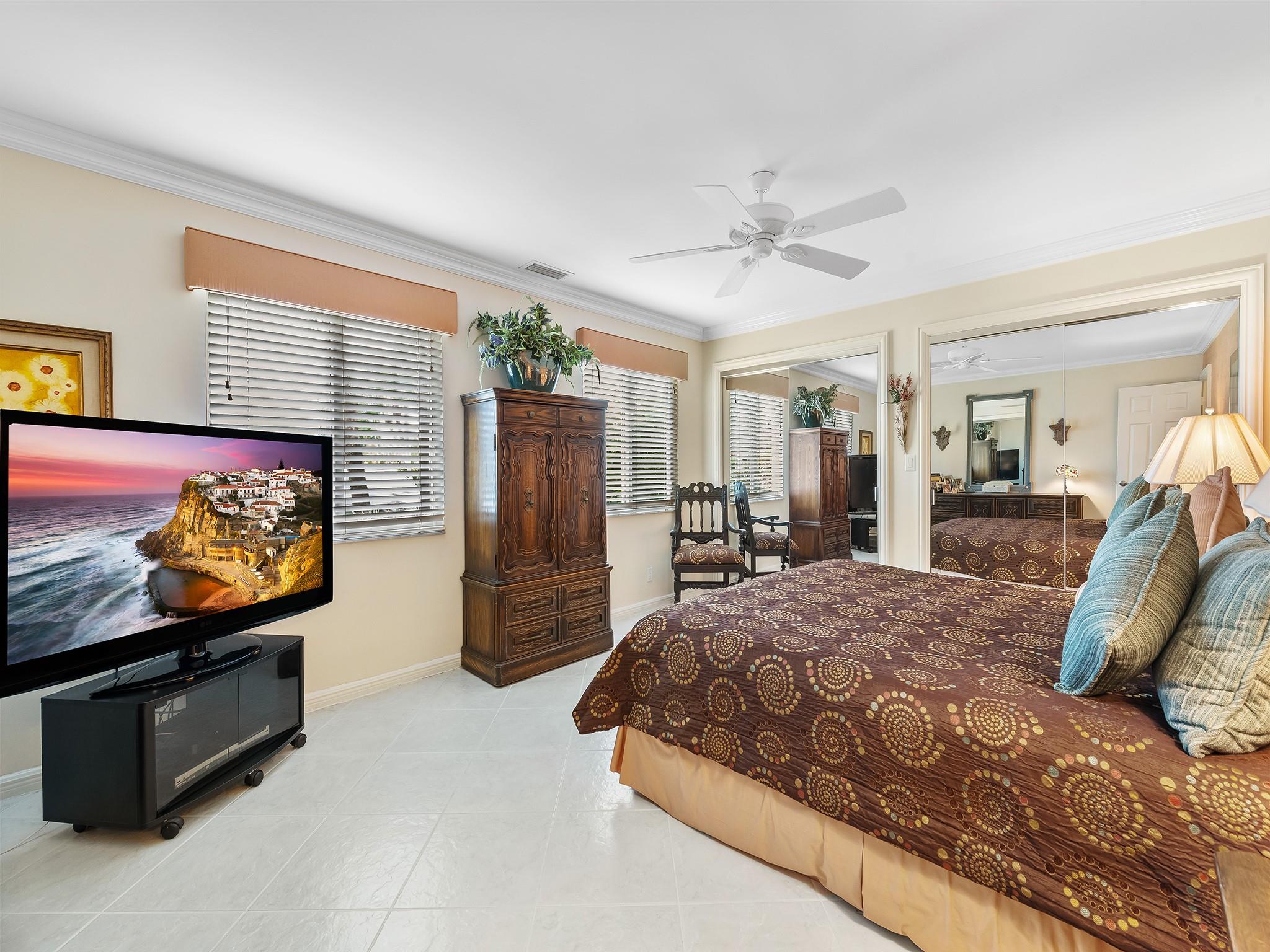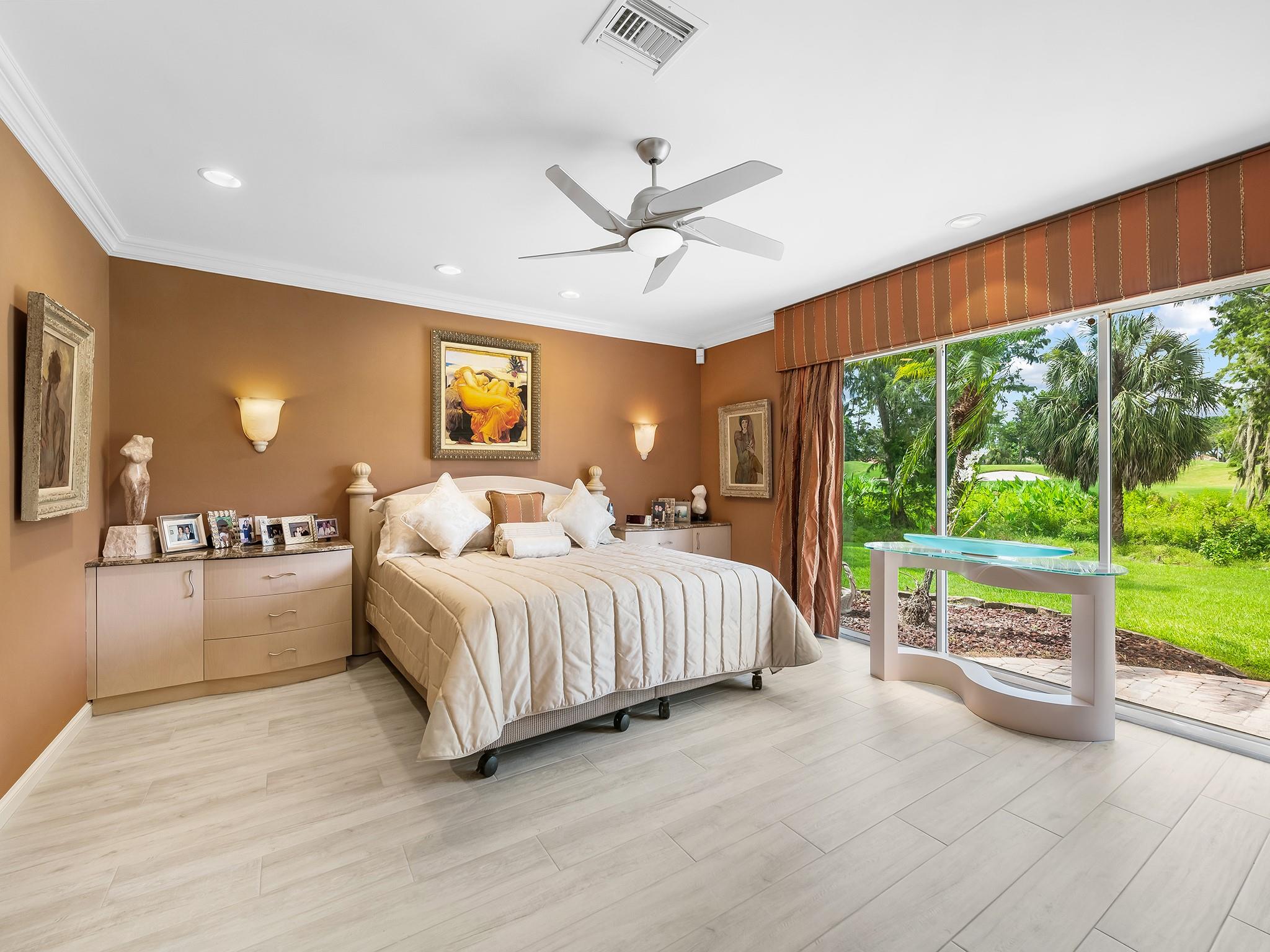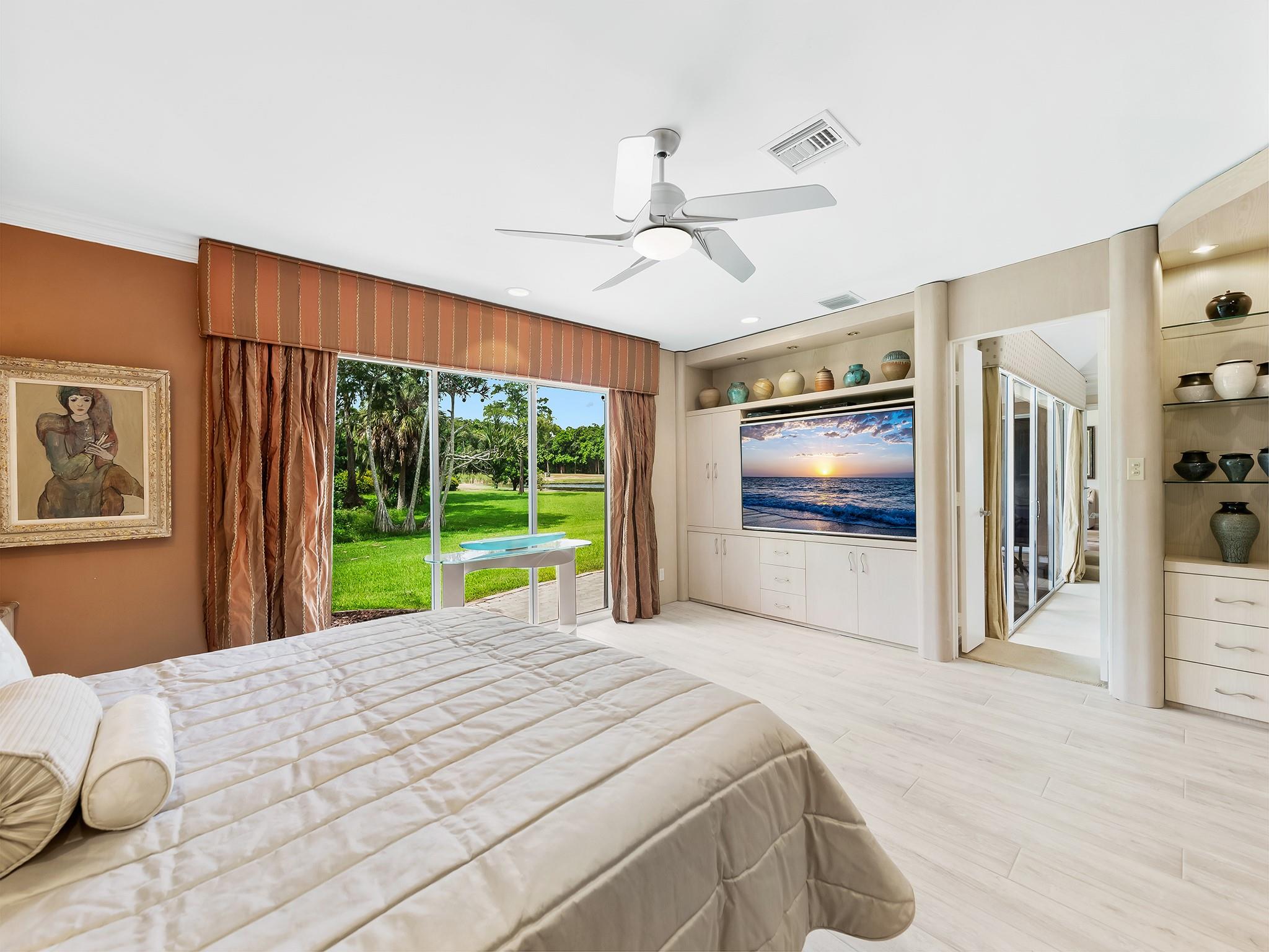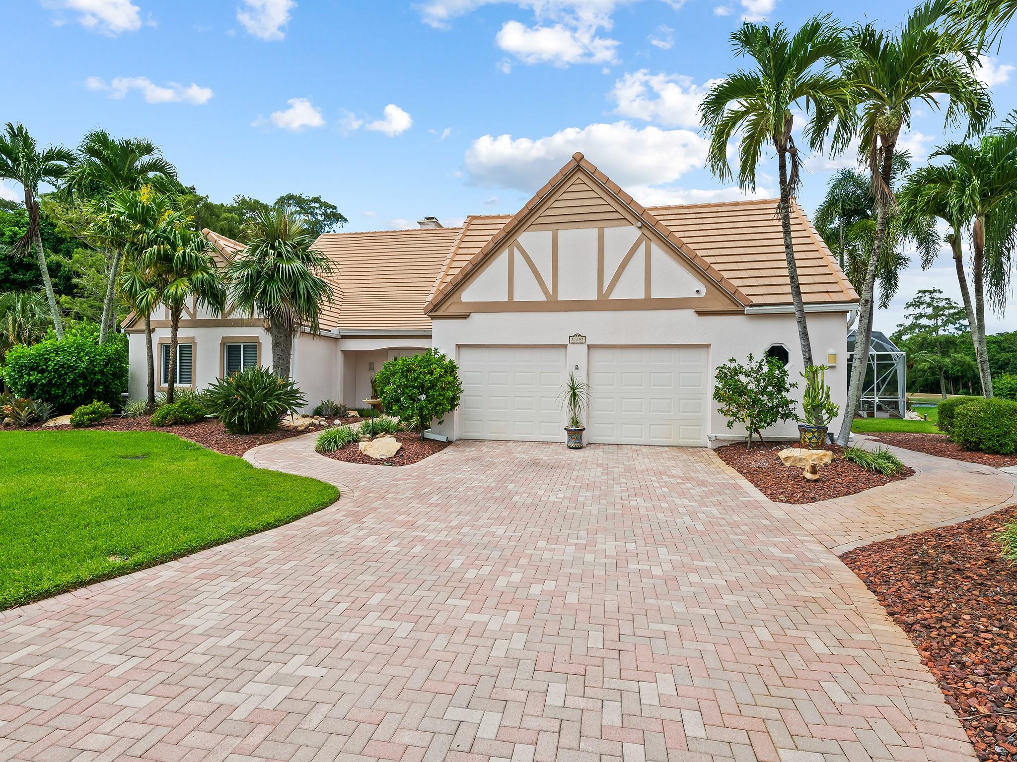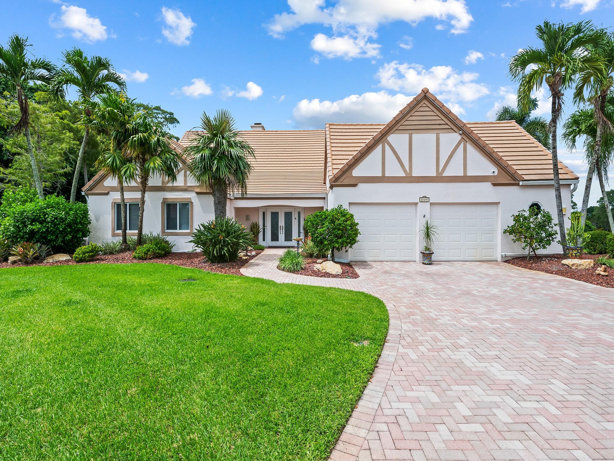 Located in prestigious Boca Woods CC on a prime cul de sac lot and location with panoramic views of the newly designed Rees Jones golf course. Exceptional home with 4 bedrooms, 3 1/2 baths, two car plus golf cart garage, eat-in kitchen w/counter seating, SS appliances, immense living & formal dining overlooking picturesque surroundings. Master suite offers two baths, two steam showers, dual sinks, jacuzzi tub, custom built-ins, hurricane impact windows, accordion shutters, Generac 20K generator. Enjoy an outdoor lifestyle this home offers with two patios & a screened in pool area overlooking breathtaking golf & water views. Club offers 2 golf courses, pickleball, tennis, fine & casual dining, fitness center, spa, game room & more. Mandatory membership $120,000. See fees & dues attached.