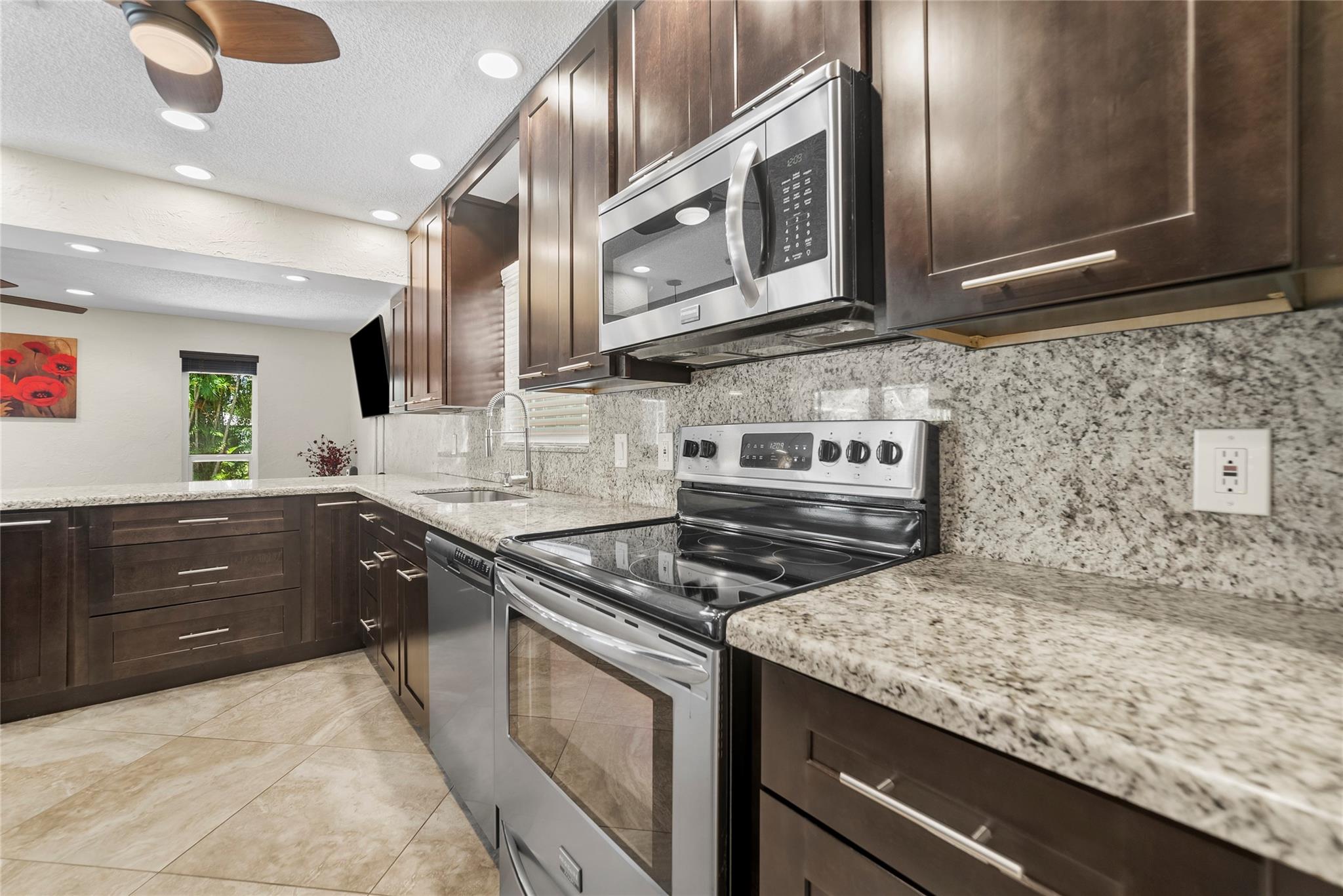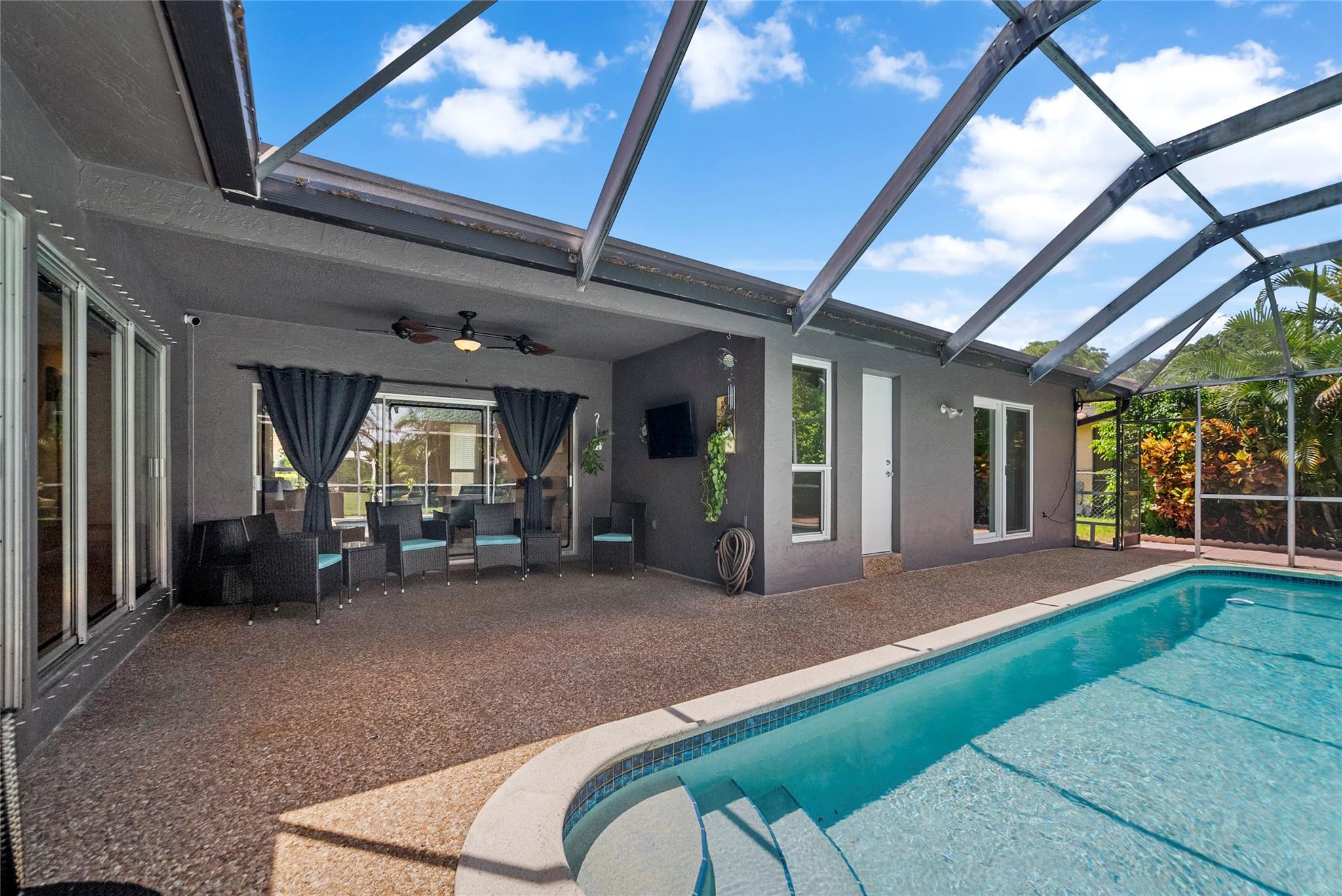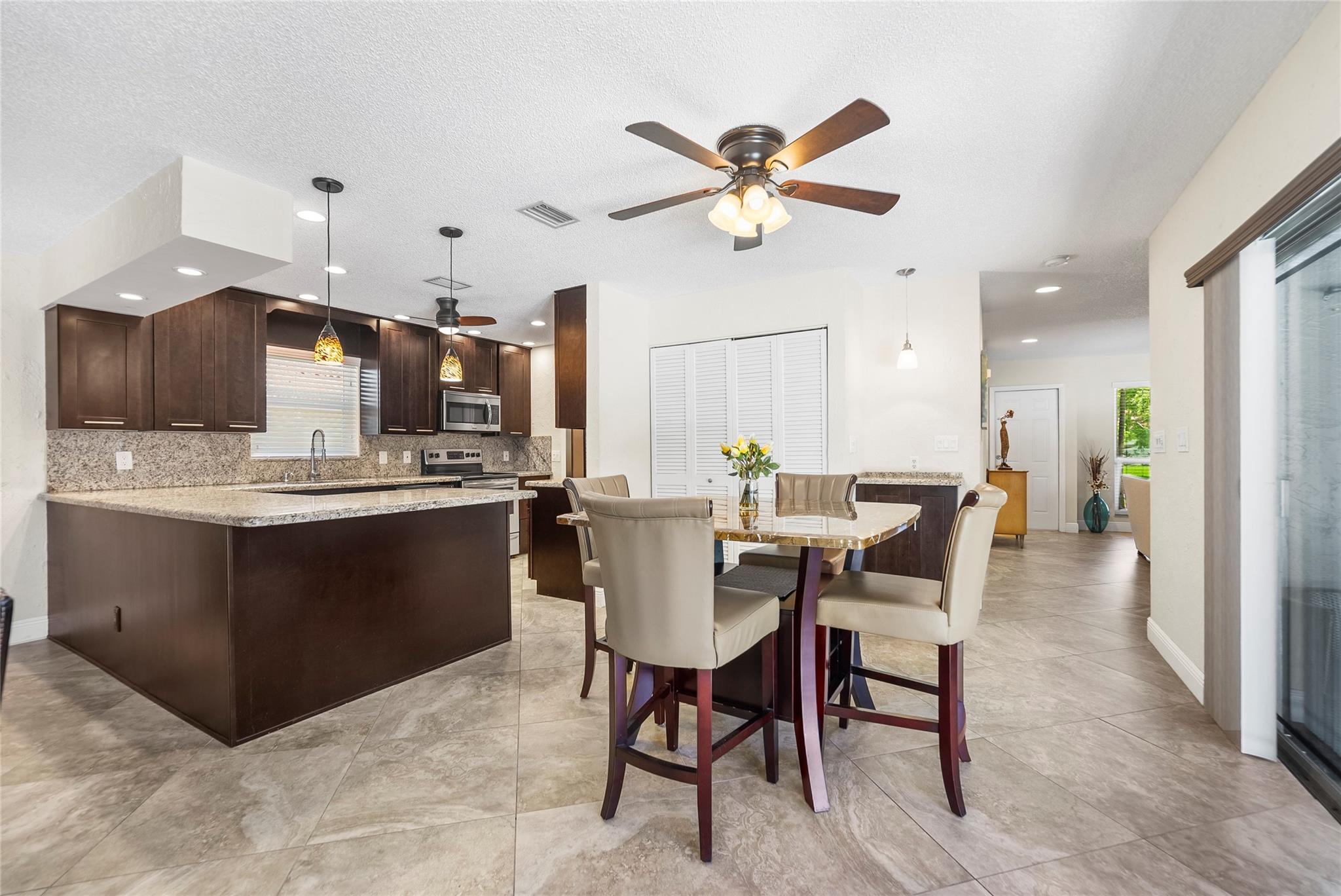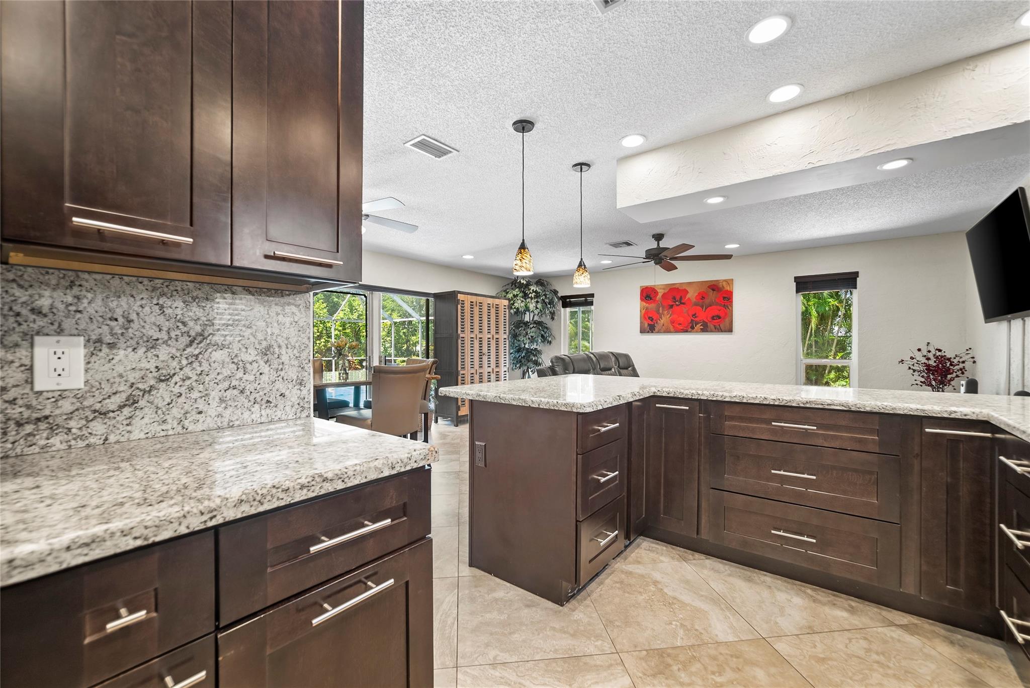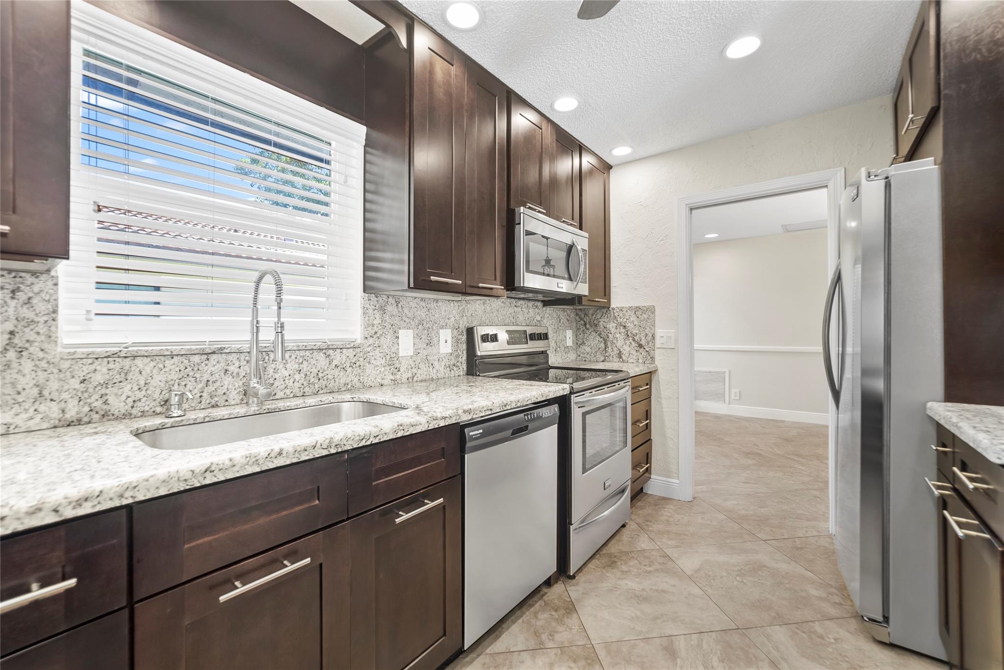 Welcome to your dream waterfront pool home. This immaculate single-family residence offers the perfect blend of sophistication and functionality, featuring an array of contemporary upgrades. Step inside to discover a beautifully updated chef's kitchen that is sure to impress, complete with sleek granite countertops, stainless steel appliances, and elegant costume cabinetry. Porcelain tiles adorn the floors on the diagonal, creating a sense of luxury and style throughout the home. This home has a wide open floor plan, formal dinning room with chair rails, upgraded bathrooms with granite countertops. Enjoy the peace of mind provided by impact windows, and hurricane shutters. Enjoy the dual new A/C units and dual water heaters. Enjoy this tropical waterfront paradise today.