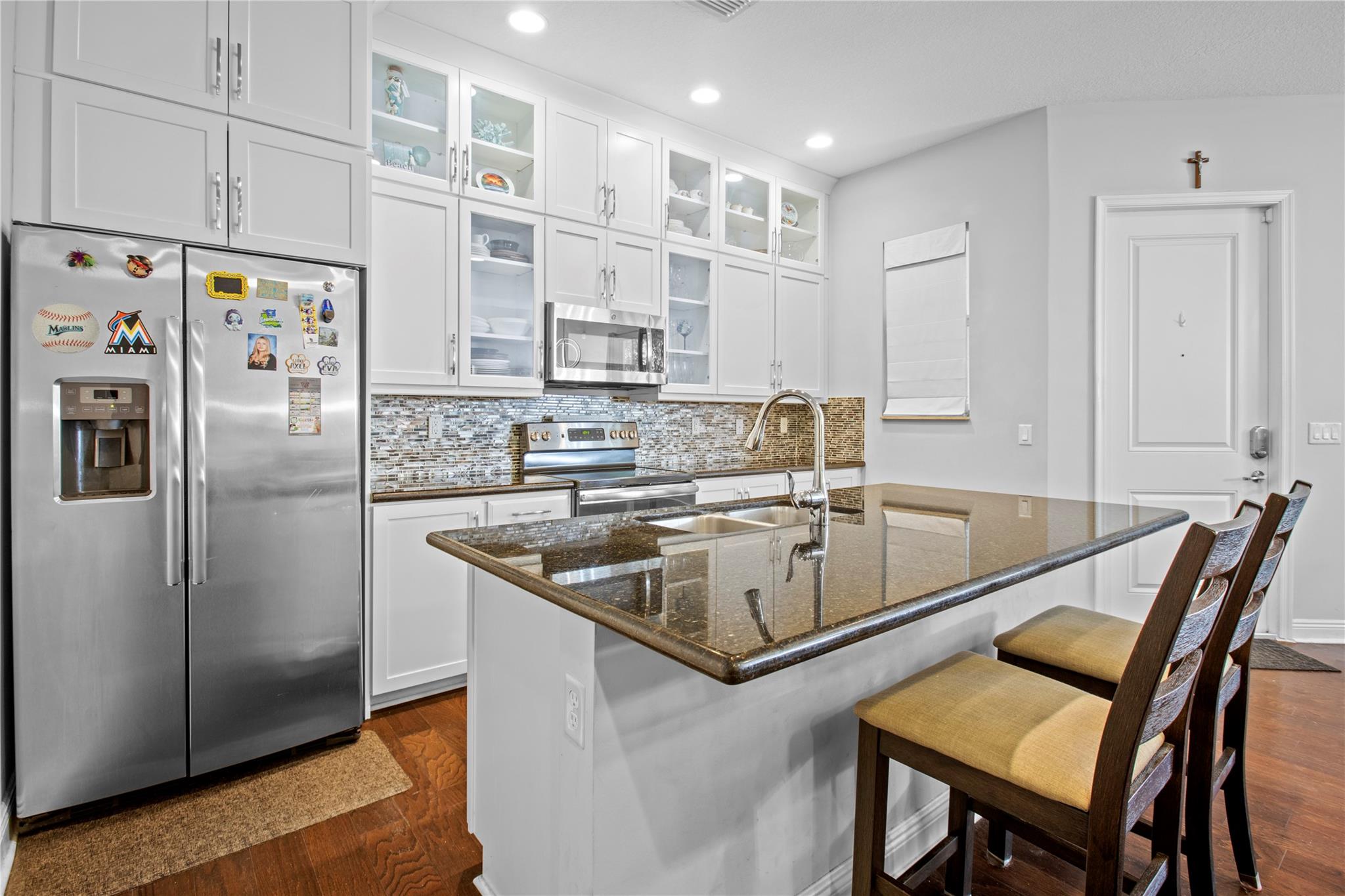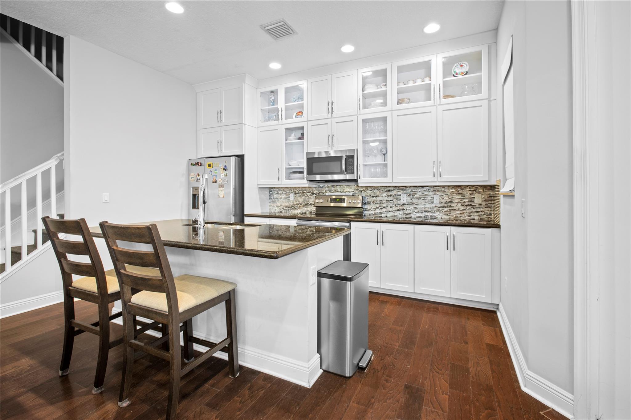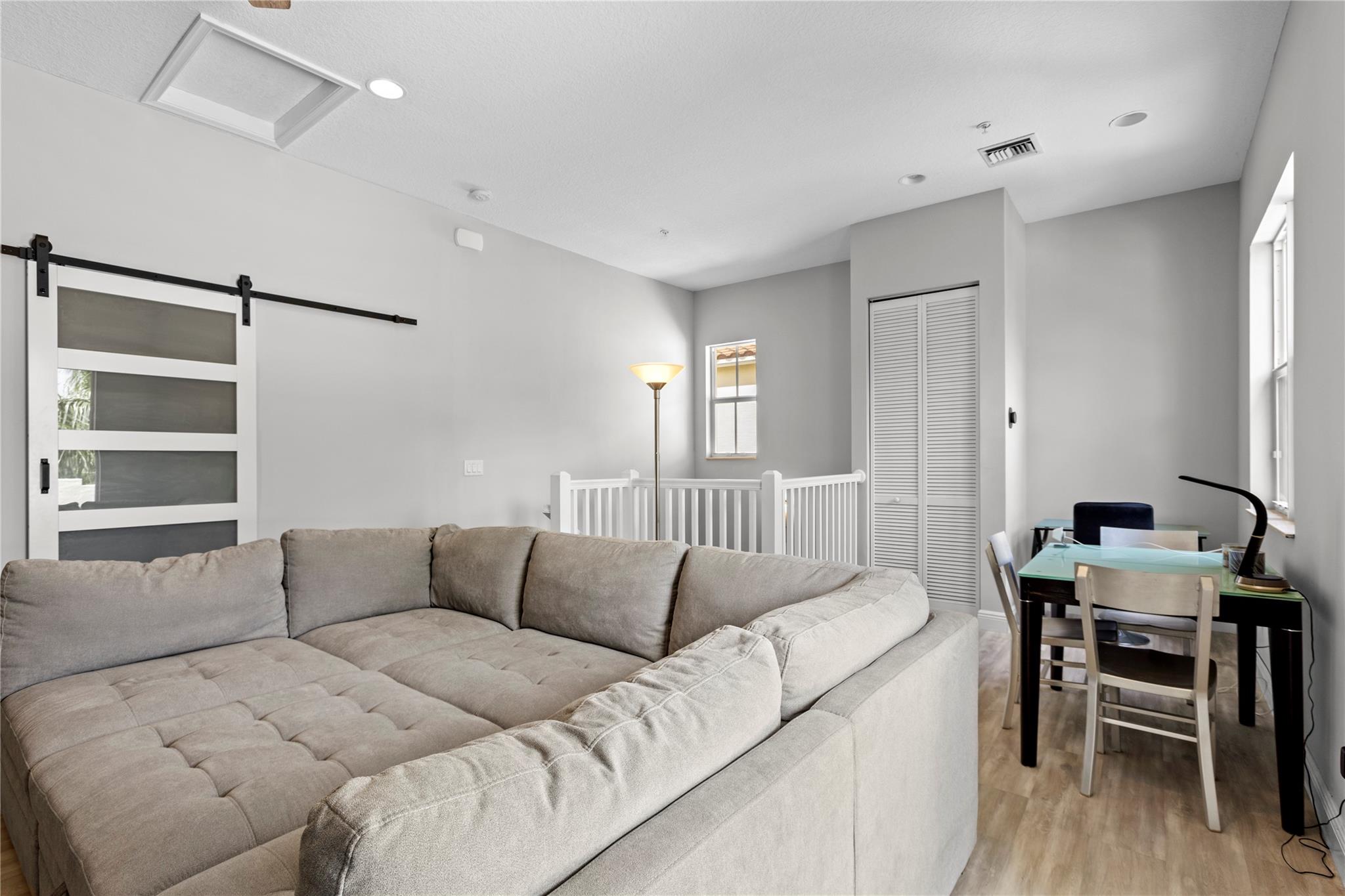 HUGE 3-STORY 4BR/3 1/2 Bath w/OVERSIZED 2 1/2 CAR GARAGE!! Over 2,300 Square Feet of Living Space on 3 Levels! Huge Open Style Floorplan on 1st Level w/Big Living & Dining Rooms, Guest Bath & Beautiful Modern Kitchen w/Full Ceiling Height Cabinets & Gorgeous Granite Counter Tops! 2nd Level Master BR w/En-Suite Bath, Dual Sinks, Big Glass Shower & Huge Walk-In Closet! Plus 2 Additional BR's, Bath, Laundry Room & Private Balcony off Master BR! 3rd Level Huge Loft Area w/Barn Door Enclosed Private 4th BR, Bath, Spacious Theater Area & Huge Open Terrace Over Looking Resort Style Pool Area! Laminate Floors All 3 Levels! HUGE 2 1/2 Car Garage + 2-Car Driveway & Guests Spaces Close By! All Located in a Charming Gated Enclave of Unique 2 & 3 Story Townhomes! AGENTS SEE BROKER REMARKS FOR GATE INFO
