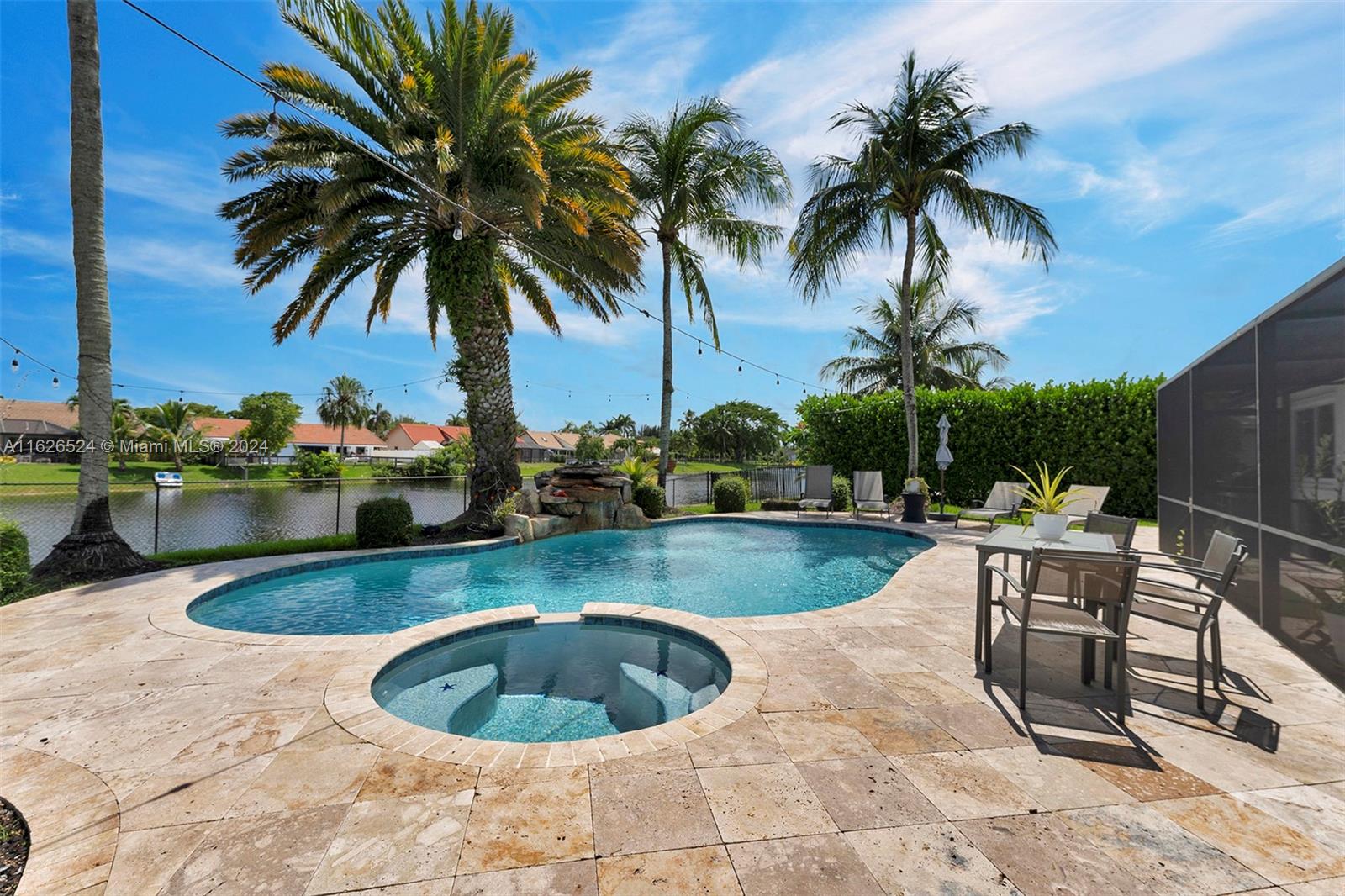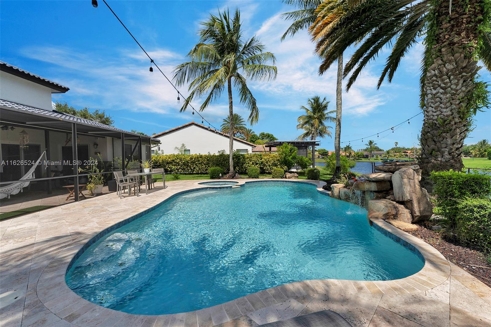 Amazing Two-story Single Family Home, situated in a cul-de-sac of desirable Hawkes Bluff of Ivanhoe. It offers a tropical oasis ambiance with serene lake views since a delicious heated saltwater pool with waterfall rocks and spa.Travertine patio, screened porch with outdoor speakers. Its spaces are wonderful, high ceilings, big impact windows with electric blinds. Large laundry room. Two car garage with space for 4 aditional parking outside. Bedrooms with custom built-in closets. High-end lighting fixtures. Updated kitchen with granite counters and island, double ovens, ample storage space and an incredible pool and lake view. This home is a fantastic opportunity for a family seeking the highest quality of life and long term investment potential.
