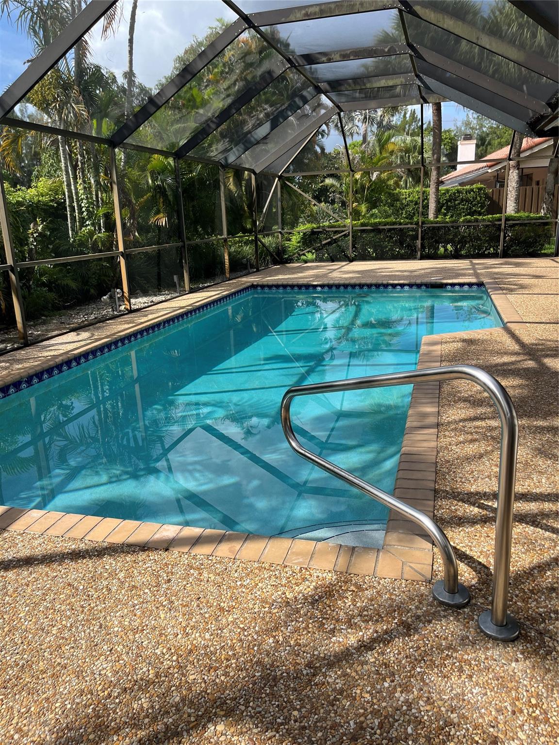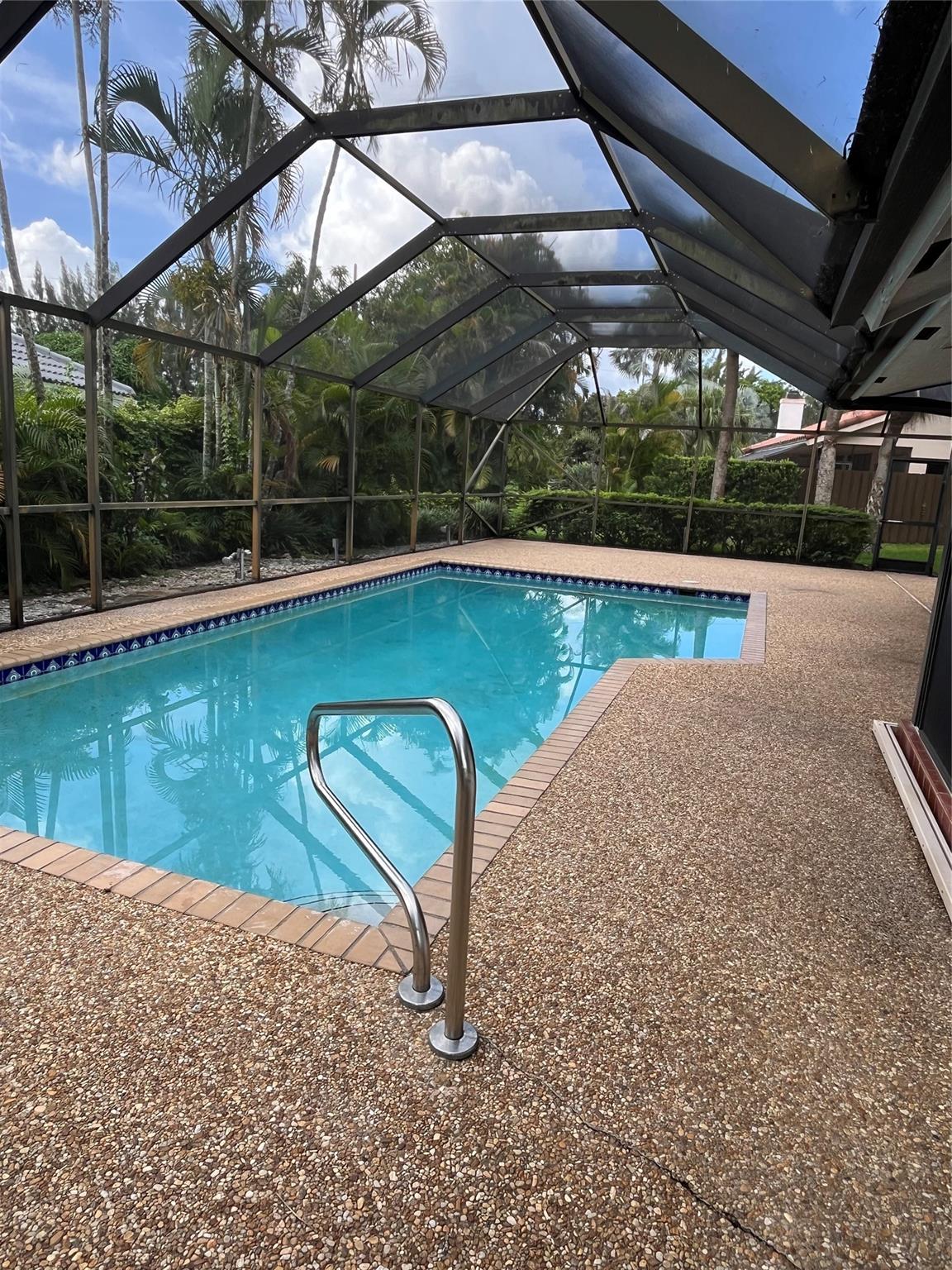 OPPORTUNITY to buy into a country club lifestyle with SPECIAL SOCIAL MEMBERSHIP @ $75K buy-in. With this home, No need to pay, if you don’t play…Equity fees are almost half the price of golf membership. Large pool & view of the 13th hole of the golf course & the water from the living room, kitchen & bedroom. Split, flexible & open floor plan with 3rd BR. Soaring ceilings. Awesome landscaping. A/C 2023, pool heater 2024, Collagen water purification. CURB APPEAL & a Floorplan that provides PRIVACY for all 3 bedrooms. A pristine garden walkway at the entrance. LARGE CORNER lot. BEAUTIFUL pool & huge screened in lanai. Private & quiet. Renovated clubhouse with 2 championship golf courses, & first class amenities. Convenient LOCATION near Palmetto entrance. Lot has Room store golf cart.