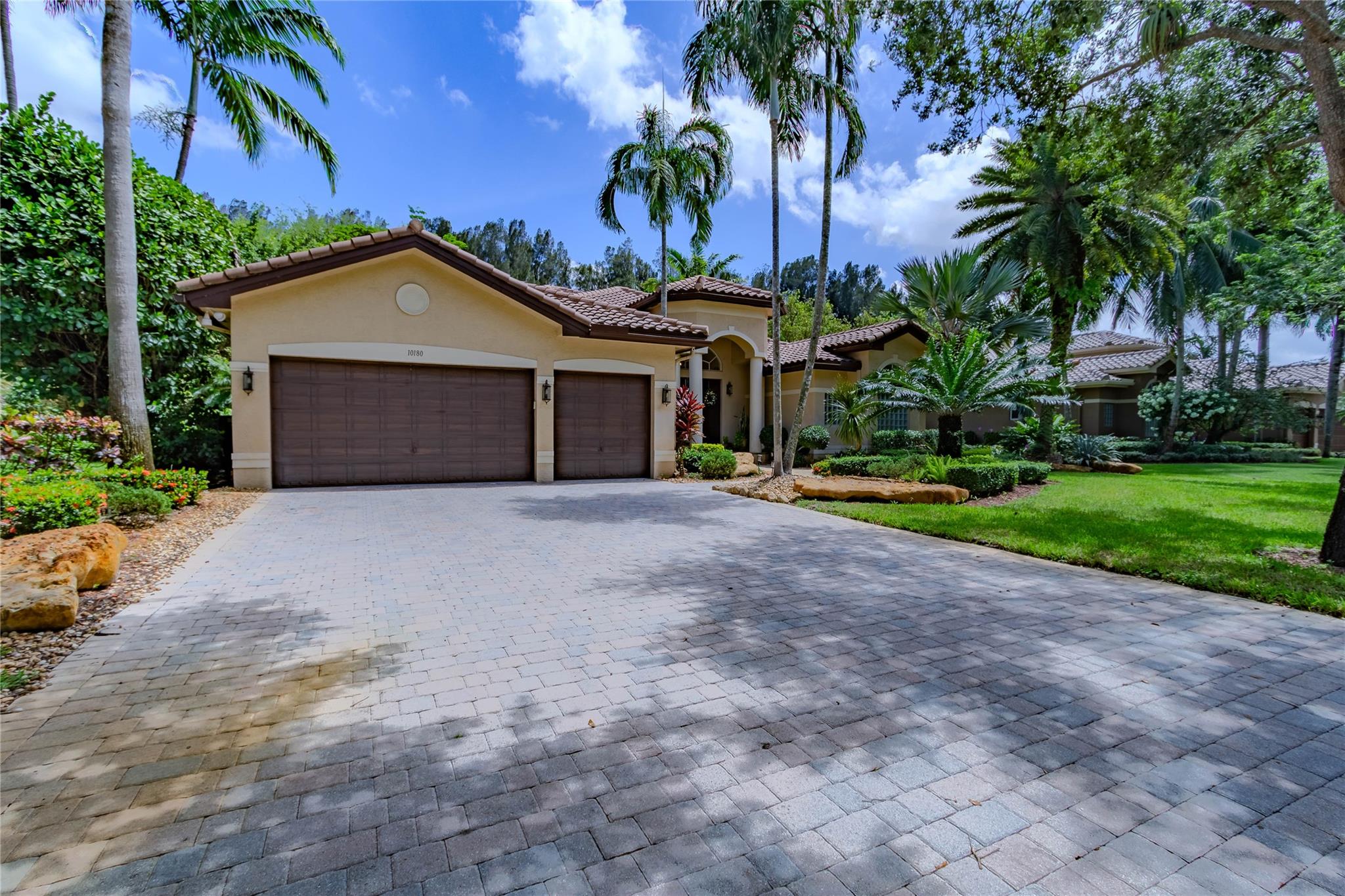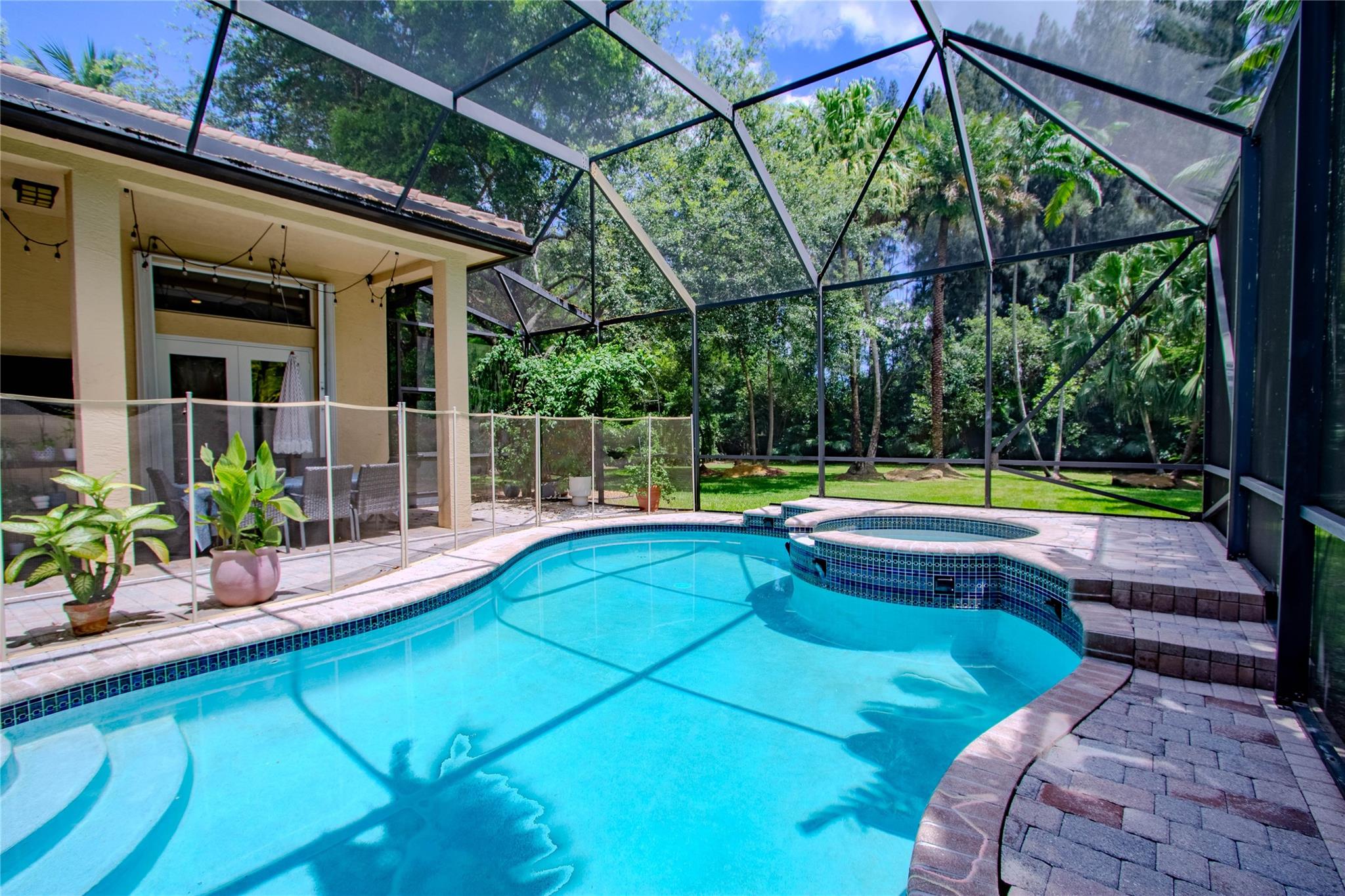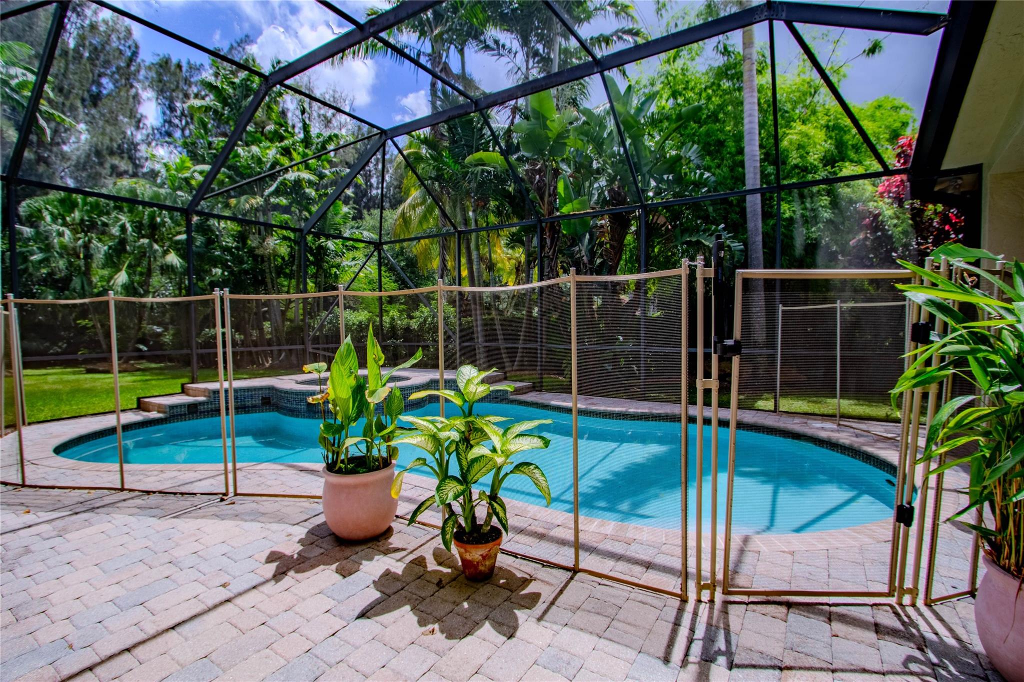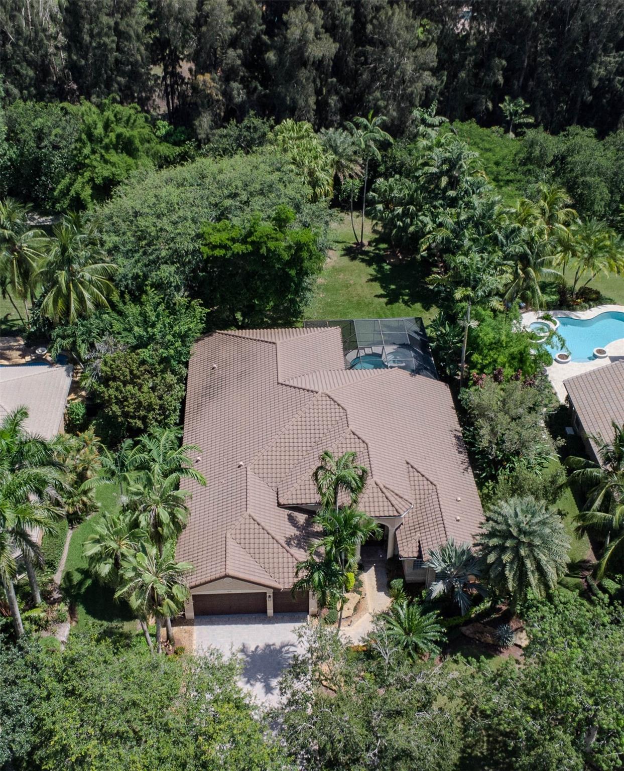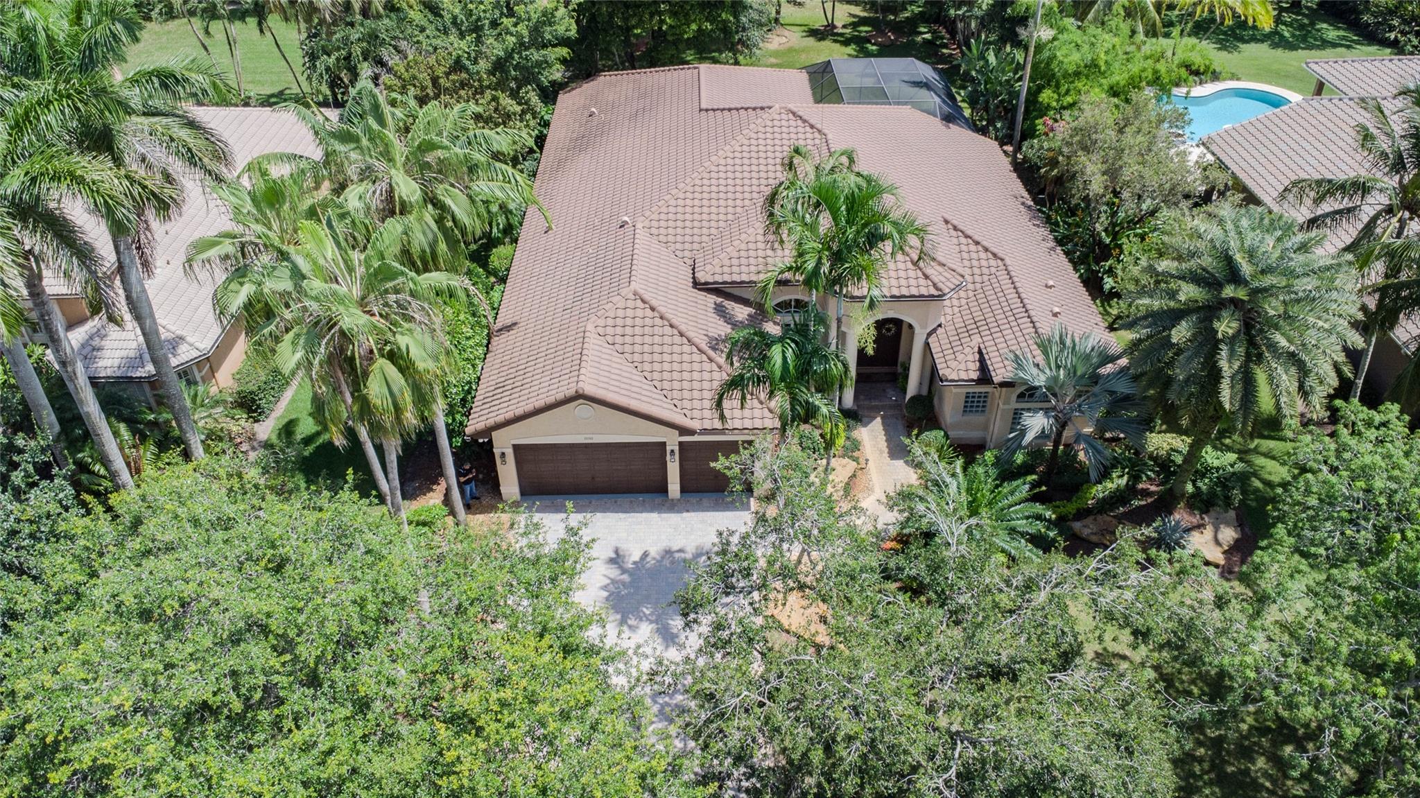 Your private backyard oasis, featuring a free-form screened pool with spa. The beautiful oversized paver patio. Enjoy peace of mind with a brand-new roof installed in 2019. Step inside to luxury with skim-coated walls and ceilings and stunning 48x48 porcelain tile throughout. Located in the prestigious gated community , this spacious home offers a triple split plan with five large bedrooms The recently renovated kitchen boasts all new white quartz countertops, stainless steel appliances, including a double oven, and a walk-in pantry. Neutral tones throughout wood floors in all bedrooms Tucked away on a scenic, tree-lined street, plus enjoy the convenience to the park and tennis courts. Minutes away from American Heritage, 595, airport and Ft Lauderdale. Garage ready for Tesla charging.