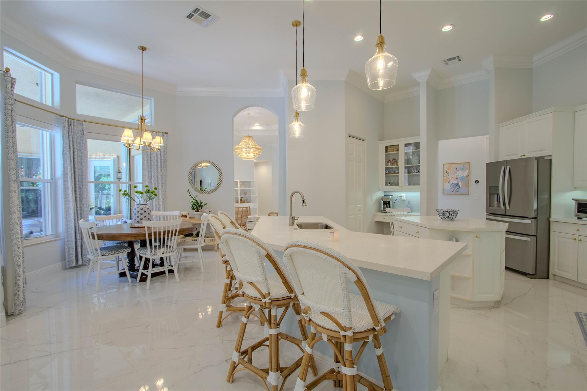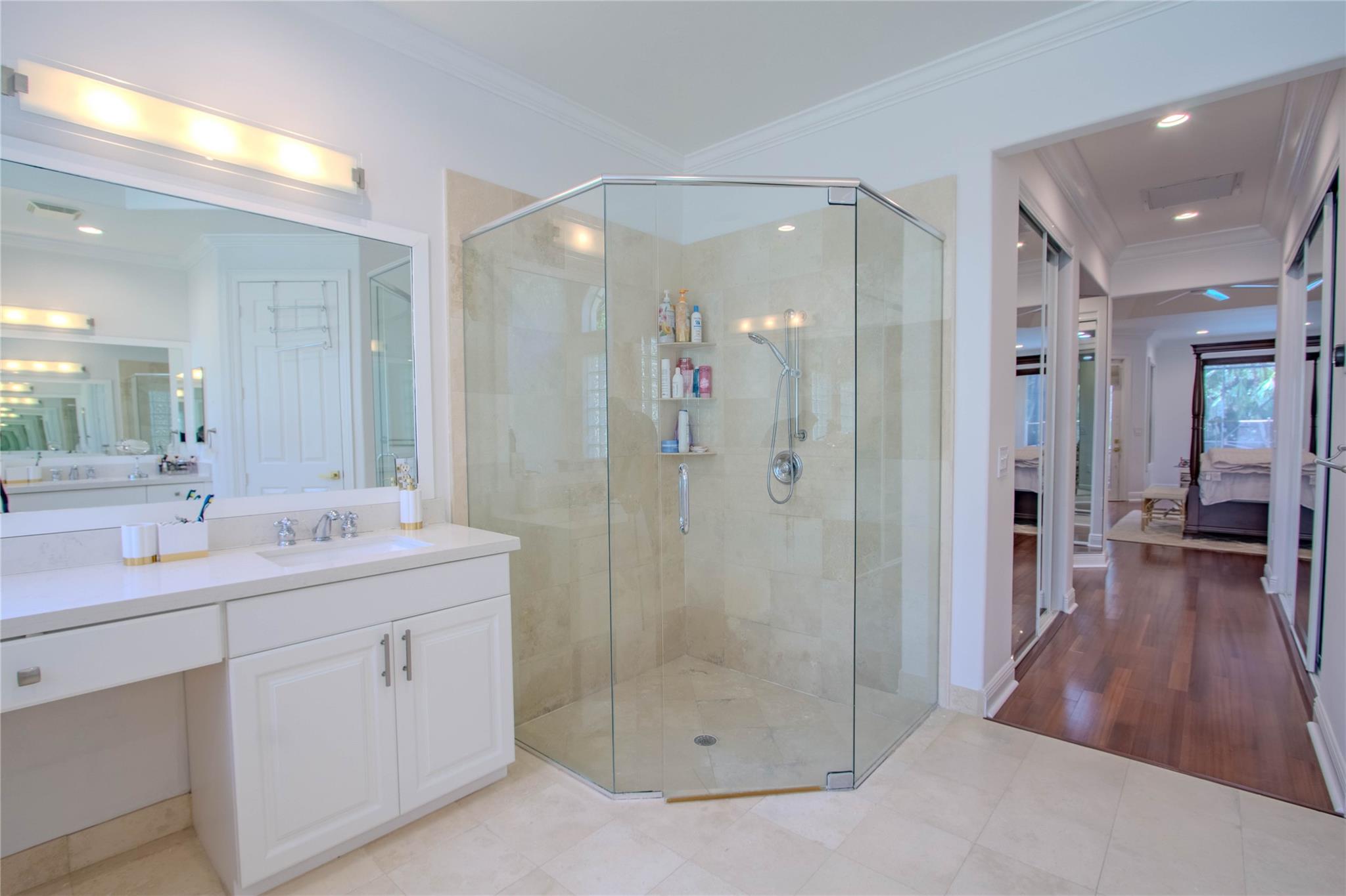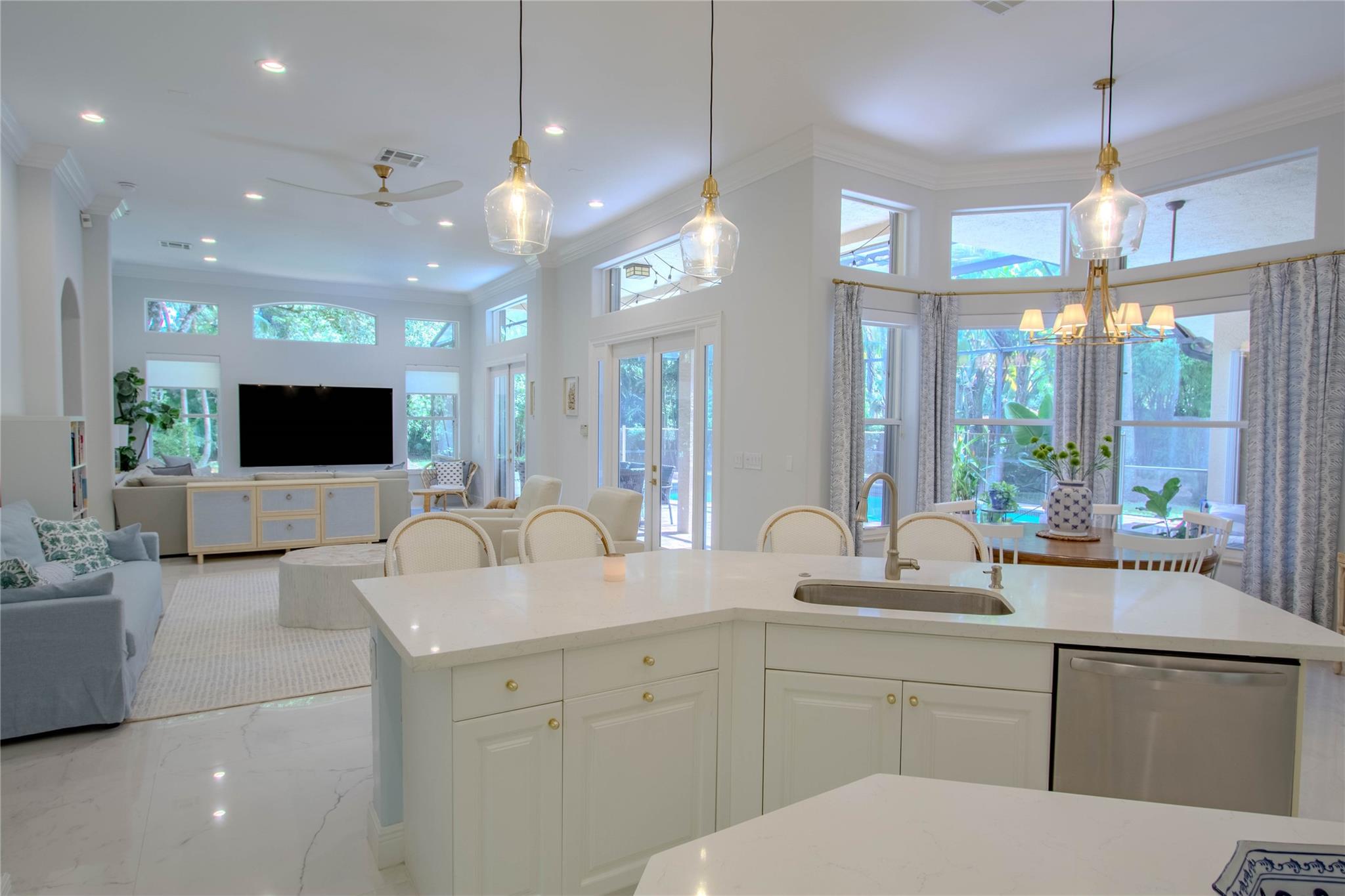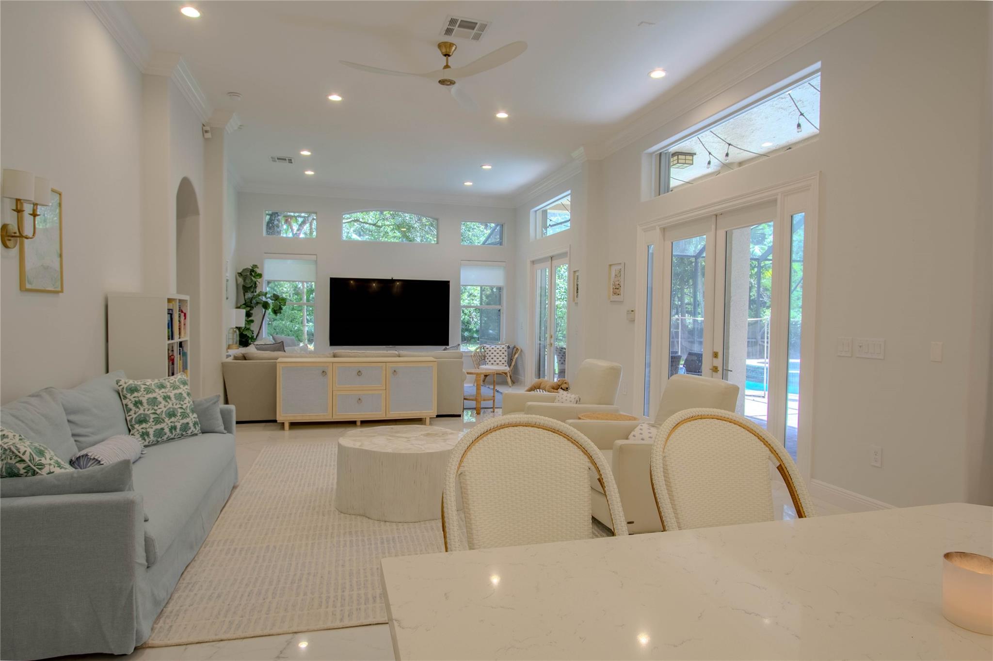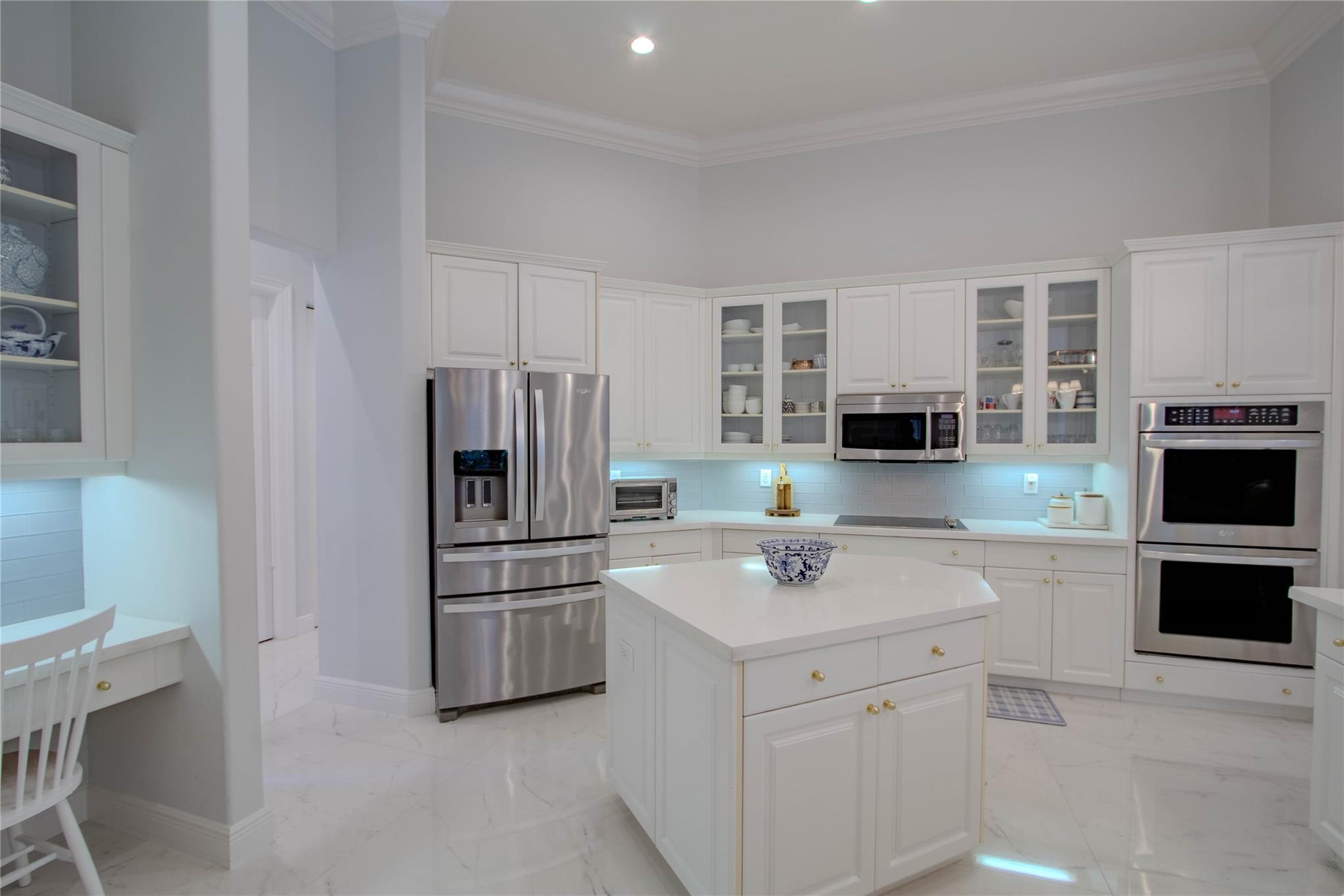 Your private backyard oasis, featuring a free-form screened pool with spa. The beautiful oversized paver patio. Enjoy peace of mind with a brand-new roof installed in 2019. Step inside to luxury with skim-coated walls and ceilings and stunning 48x48 porcelain tile throughout. Located in the prestigious gated community , this spacious home offers a triple split plan with five large bedrooms The recently renovated kitchen boasts all new white quartz countertops, stainless steel appliances, including a double oven, and a walk-in pantry. Neutral tones throughout wood floors in all bedrooms Tucked away on a scenic, tree-lined street, plus enjoy the convenience to the park and tennis courts. Minutes away from American Heritage, 595, airport and Ft Lauderdale. Garage ready for Tesla charging.
