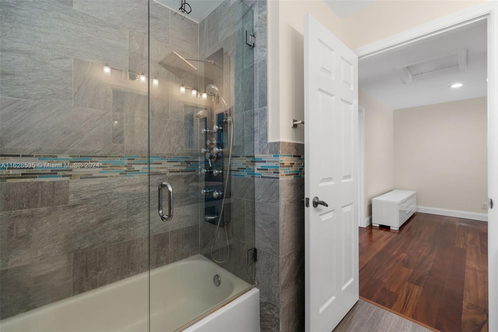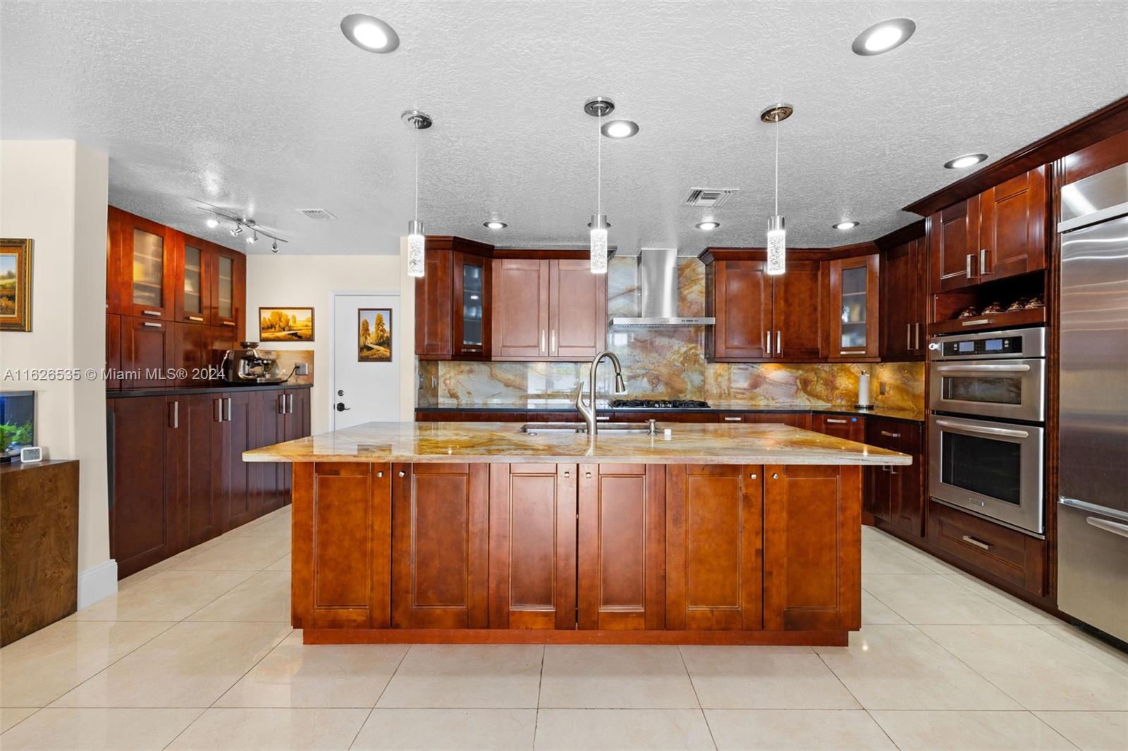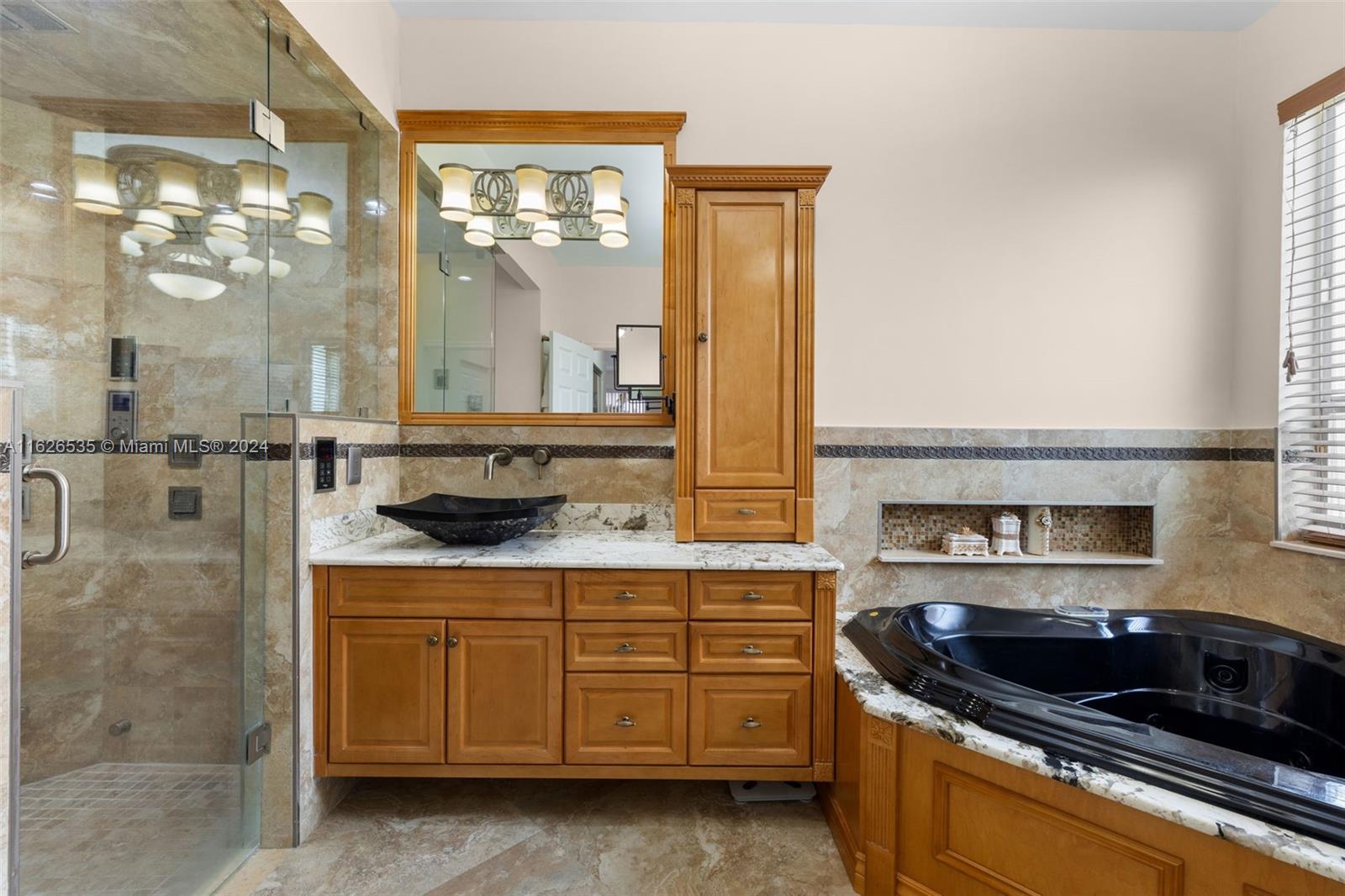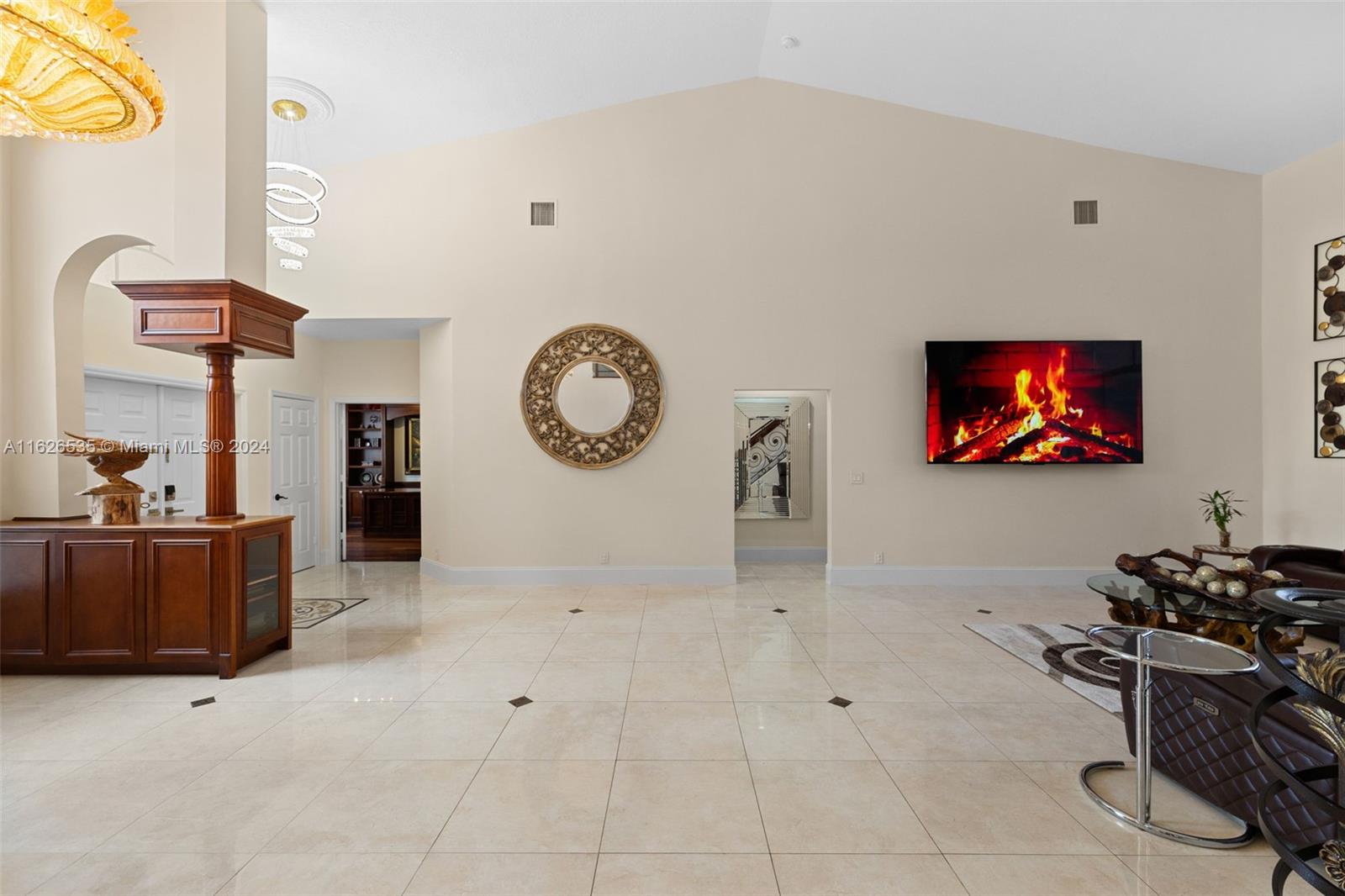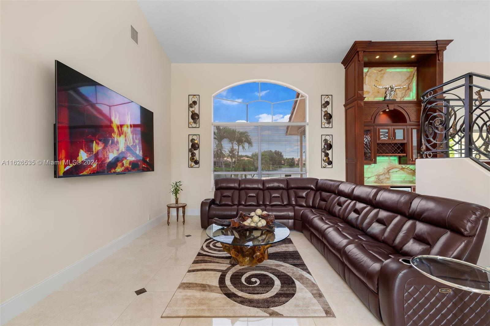 LAKEFRONT WIDE VIEWS WITH ENDLESS INFINITY EDGE SALT WATER HEATED POOL & SPA In Sought After PEMBROKE FALLS. Oversized Master bedroom on first floor, California Closets, Executive Office, Pantry, Jetted Jacuzzi, Massage Showerheads in every bathroom, Steam room w/mood lighting, Spacious Chef's Kitchen with Quartzite countertop, Cherry Cabinetry, Toto Washlet Toilet Systems, Rod Iron Banister, Built-in Bar with backlit Onyx, 7' Crystal Chandelier. New washer, dryer, dishwasher. ACs 2021/2010. Resort Style clubhouse and amenities: Olympic size pool, gym, tennis courts, club house and much more. HOA includes internet/cable, ADT security, amenities.
