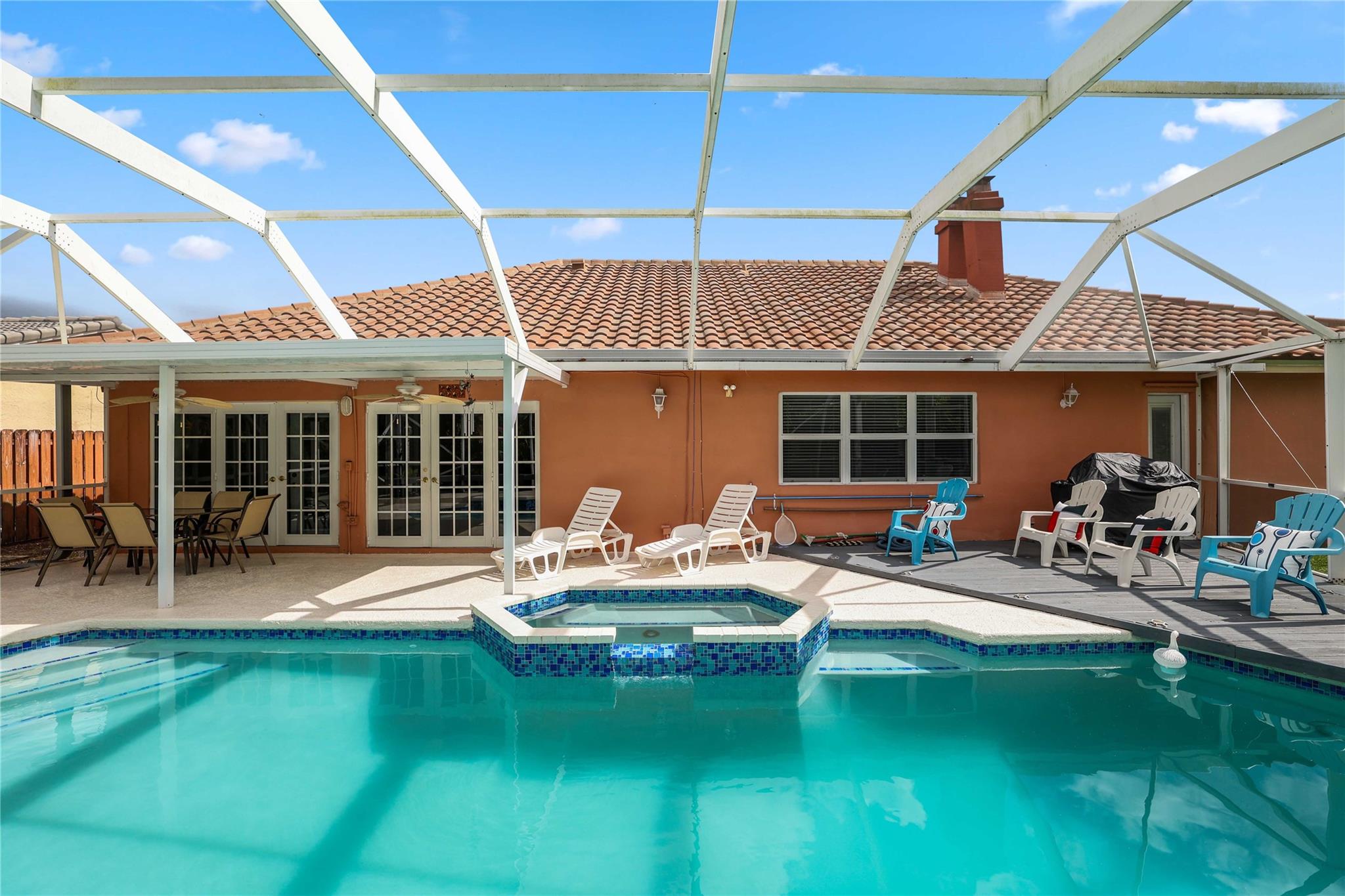 Updated home in red hot Ramblewood neighborhood - NO HOA! Featuring a newer roof (2019) and all IMPACT WINDOWS & DOORS. HUGE stamped concrete driveway has plenty of room for all your cars. Updated kitchen with high end stainless steel appliances & quartz countertops. Tile floors throughout the home. Both bathrooms remodeled. Master bedroom features walk-in closet w/ built ins & updated travertine bathroom. Screened in pool and patio were recently remodeled with new diamond brite and pool tiles. MASSIVE deep garage can easily park longer cars or trucks. Plenty of yard space for the kids or pets to play. One of the best priced homes in the neighborhood currently, you don't want to miss this one!