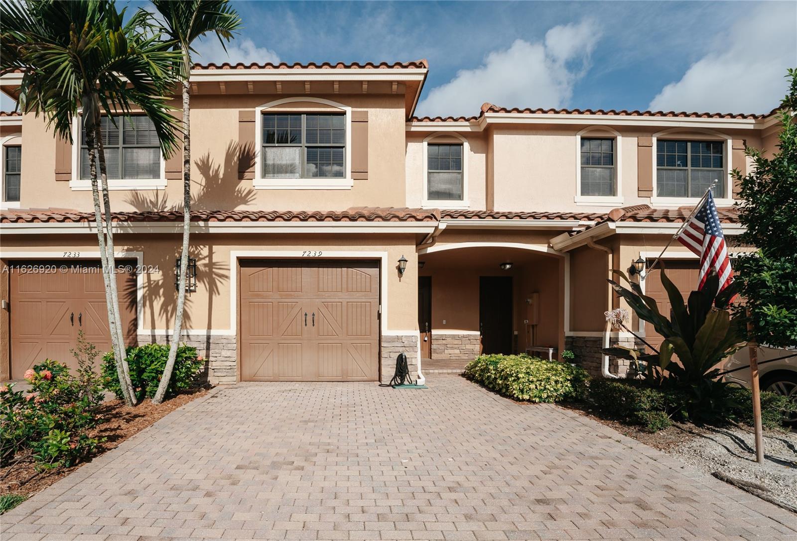 Ready to move in 3 Bedroom, 2.5 Bath Townhouse in Parkland Reserve. The kitchen comes with newer Stove, Microwave, and Dishwasher, granite counters, maple cabinets, and a large pantry. Tile flooring downstairs and tile that looks like wood on entire second floor, including all 3 bedrooms and stairs. The primary bath has double sinks and a separate shower and soaking tub. One car garage with driveway parking for 2 cars. Impact windows and doors for safety and lower insurance costs. Screened patio. Zoned for and walking distance to Park Trails and Heron Heights Elementary. Pine Trails Park with athletic fields, walking trails, and amphitheater next door. This may be the lowest cost HOA in Parkland and does a great job maintaining landscape and heated Community Pool.