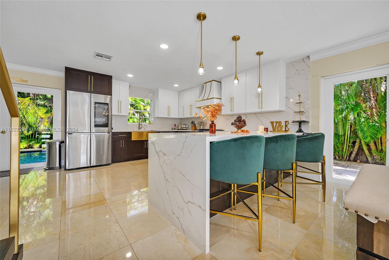 Beautiful corner home! This 5 bedroom 3 bath property has all the upgrades desired in an oasis. Centrally located in the Miami Lakes area and convenient to major highways. The property has a large pool with spa and plenty of outdoor space to host all of your events. Designer kitchen boasts quartz counter tops and commercial grade appliances. Call to schedule showing.