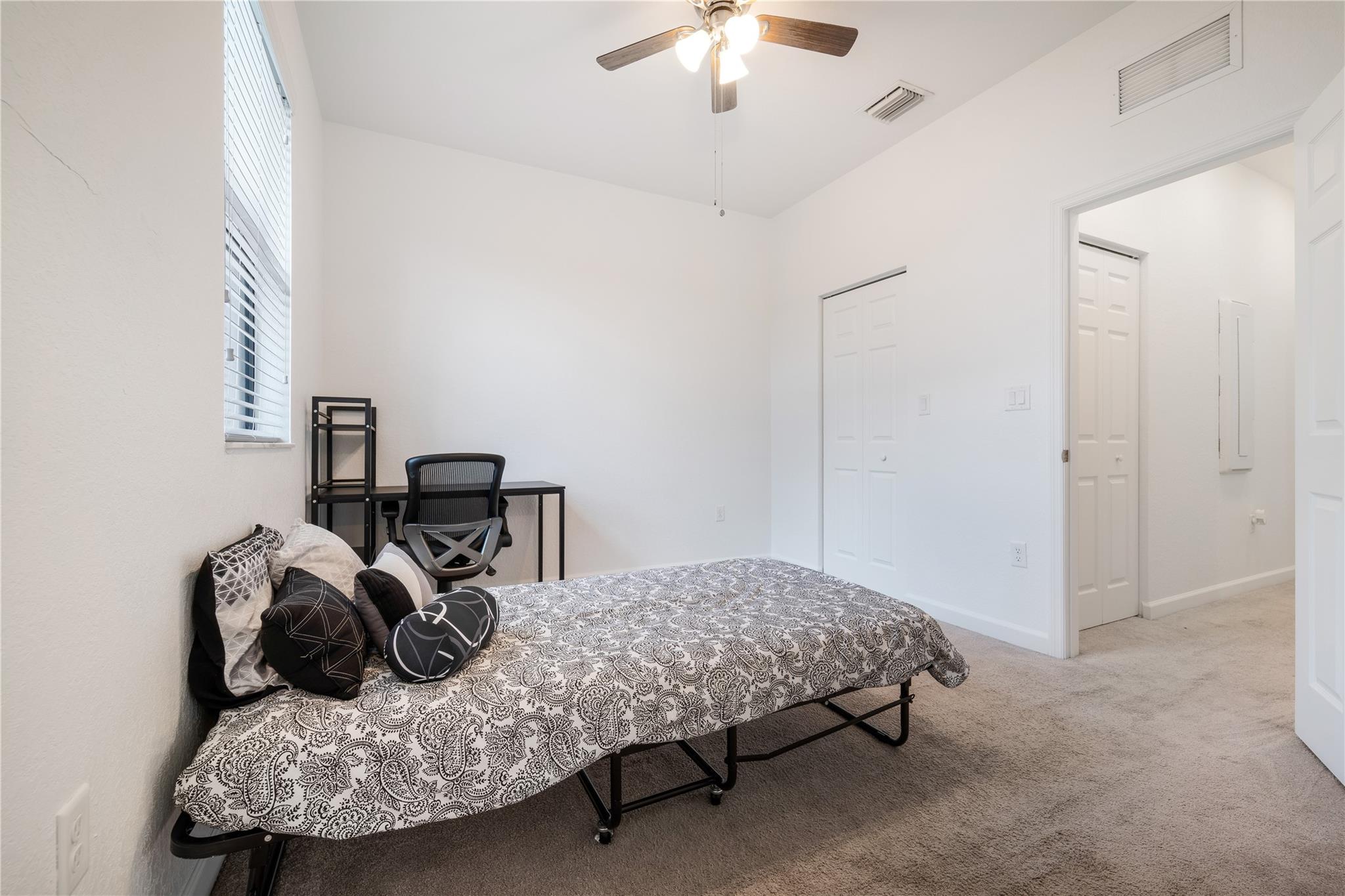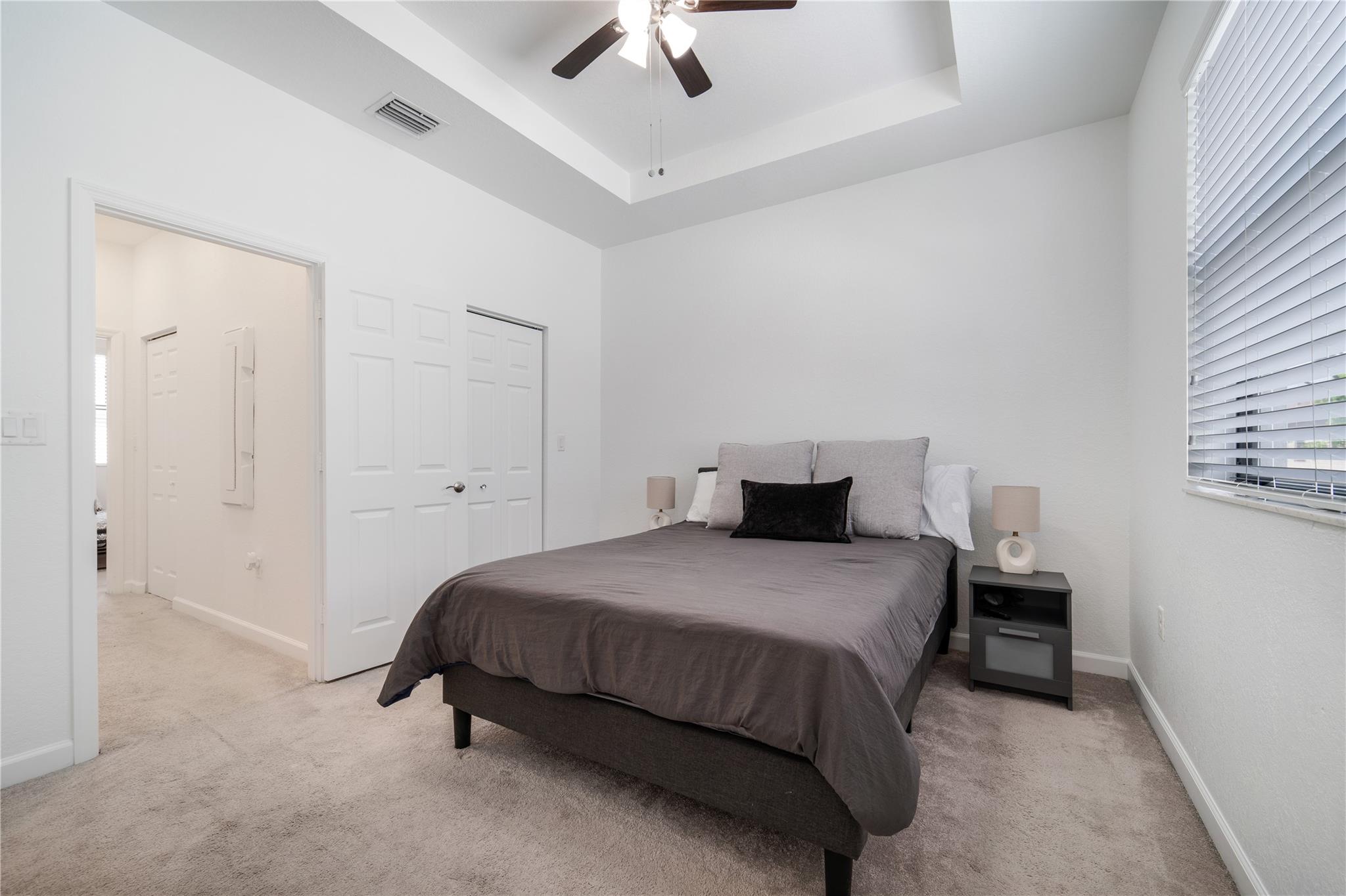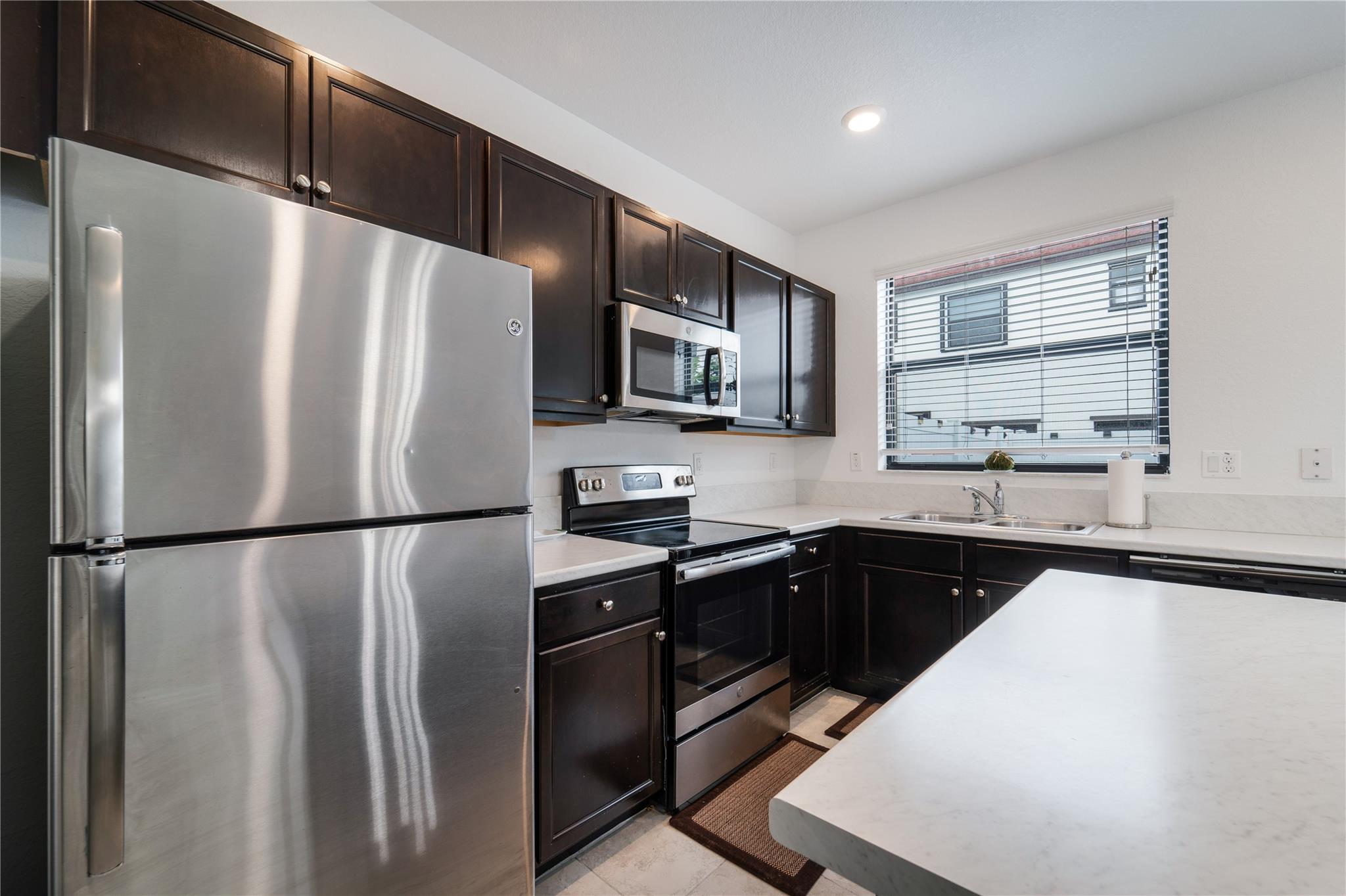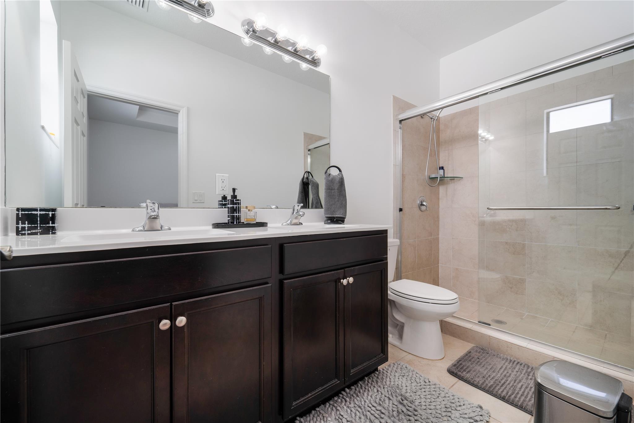 Resort style living in a private gated community Aquabella. Spacious three bedroom and three full bathrooms. This townhouse featuring a convenient downstairs bedroom with one bathroom. Enjoy the spacious fenced backyard patio. Open-concept kitchen configured with stainless steel appliances. In the second floor are two bedrooms with their bathrooms in-suite and the principal bedroom with walk-in closet. It has two assigned parking spaces in front and plenty of guest parking for visitors. The community has two large clubhouses, pools, fitness centers, and water park for the kids. Close to major highways Turnpike, I-75, Palmetto; near shopping and restaurants.