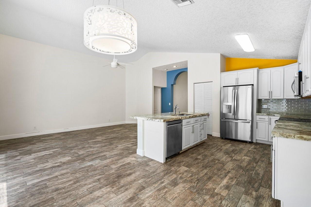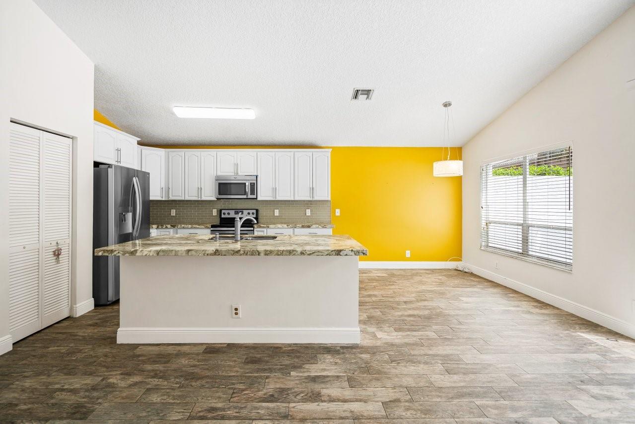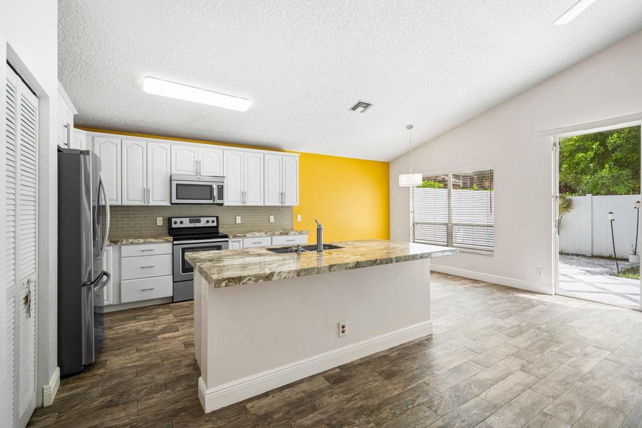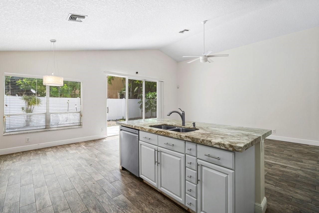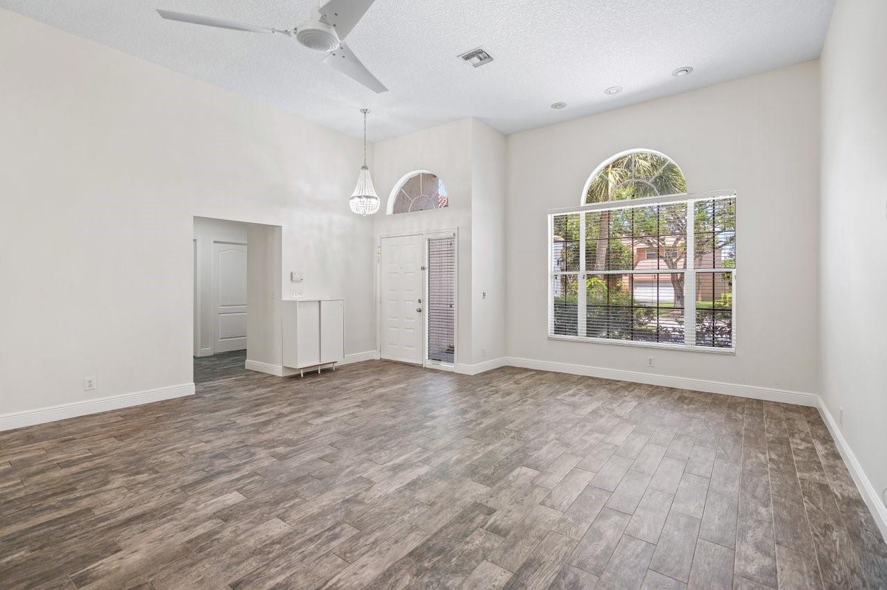 Great opportunity to purchase an updated & move in ready single family home in Parkland. You will love the pretty curb appeal. The interior features vaulted high ceilings, wood like tile floors throughout, a formal living room/dining room area & an open family room/kitchen area. The light & airy white kitchen features a large island with thick quartz counters and wood cabinetry. The primary bedroom has an updated spa bathroom offering separate shower & tub & a his/her vanity. Glass doors lead to a large marble patio and there is plenty of room for a pool. Mill Run has a great location and LOW HOA fees. Walk to parks, shopping & dining. The beach is only 7 miles down the road. HOA provides lawn maintenance. A rated schools.
