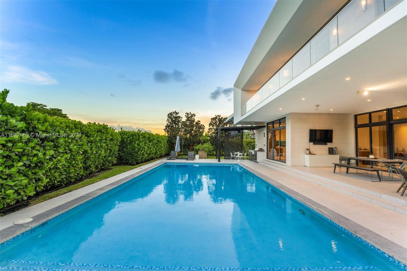 Welcome to the epitome of modern elegance at the prestigious gated community Botaniko.This stunning residence offers a perfect blend of luxury and comfort, boasting 5 bedrooms, 6.5 bathrooms plus a service room providing space for comfortable living and entertaining. customized kitchen countertops, formal dining room provides an ideal setting for hosting. One room downstairs offers versatile use as an office, media room or guest suite. luxurious primary suite, complete with a spa like bathroom and spacious walk-in closets. private backyard featuring swimming pool, new landscaping and covered patio. This home features Brazilian cherry wood flooring backyard pergola, gas generator and electric charger. Located near top rated schools. Easy to show.
