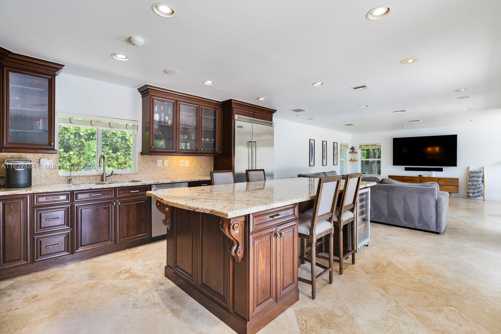 Discover your dream home on a peaceful tree-lined street in Miami’s coveted Continental Park neighborhood. This immaculate 3-bedroom, 3-bathroom residence offers 2,341 sq. ft. of luxurious living space on a sprawling manicured lot. The sophisticated split floor plan ensures privacy and comfort. The gourmet kitchen features custom cabinetry, granite countertops, a spacious center island, and high-end appliances. Adjacent to the kitchen is a cozy family room and formal dining area, perfect for gatherings. French doors open to a private backyard oasis with a sparkling pool, travertine-finished deck, and lush landscaping, ideal for relaxation and entertainment. Enjoy suburban tranquility while being minutes from top-rated schools, parks, and Miami’s premier dining and shopping destinations.