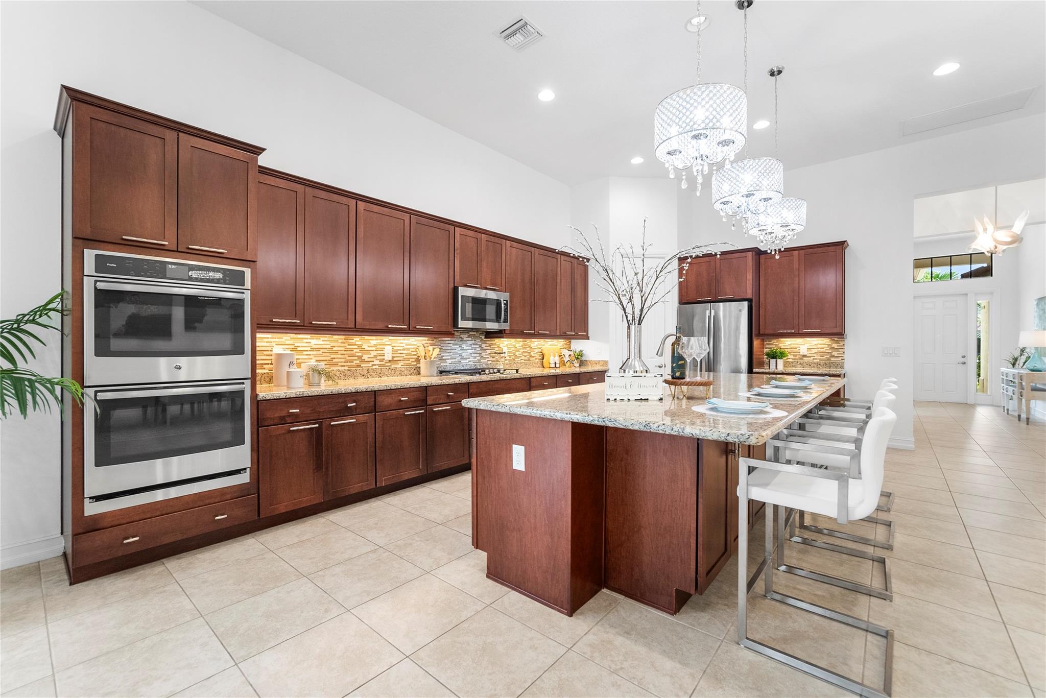 Best Priced Home In All Of Four Seasons Community! Turnkey 3 Beds (3rd Bed Being Presented As Office), 2 Baths Home On Oversized Corner Lot w/2-Car Garage, Impact Windows & Doors, On Gas, Spacious & Bright & Open Floor Plan, Screened-In Patio, High Ceilings, Chef's Kitchen w/Granite Counters & Island, Gas Stove, Spacious Primary Suite w/Sitting Area, 2-Walk-In Closets, Spa-Like Primary Bath Large Standing Dual Headed and Rainfall Shower, Dual Sinks, Popular Opal Floor Plan Ideal For Entertaining Guests, 2nd Bedroom Ideal For Guests, Resort-Style Amenities Including Heated Pool, Spa, Fitness Center, Pickleball & Tennis Courts, Huge Family Room Overlooks Patio, Formal Dining Area, 24-Hour Guard Gated Community, Close To Parks & Recreation.