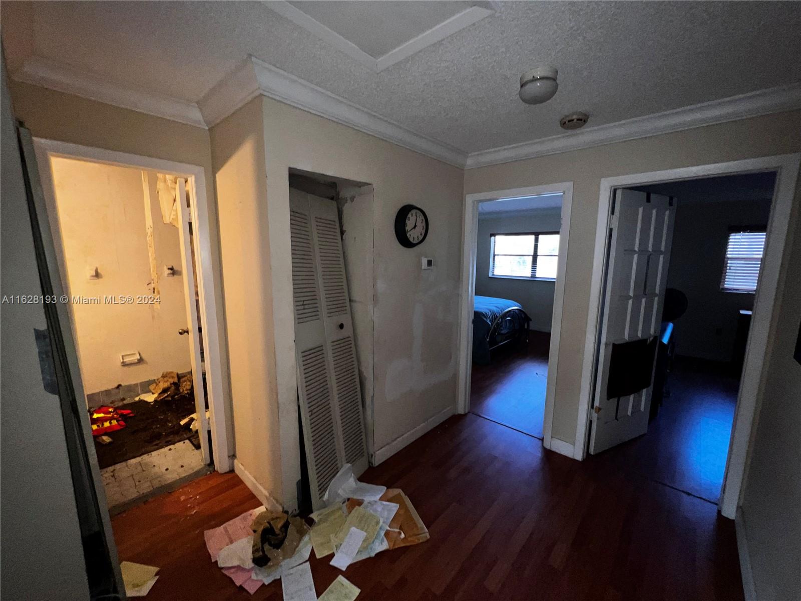 Gated community with an HOA, this property offers three bedrooms and two bathrooms. The AC is non-functional, the roof has multiple leaks and significant damage, and inside, there are visible signs of water damage and a malfunctioning electrical panel. Sold "as is," this home requires repairs and renovations. Cash Only