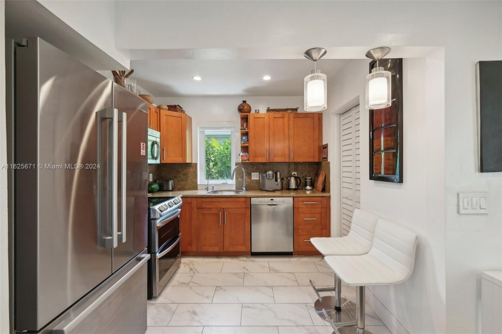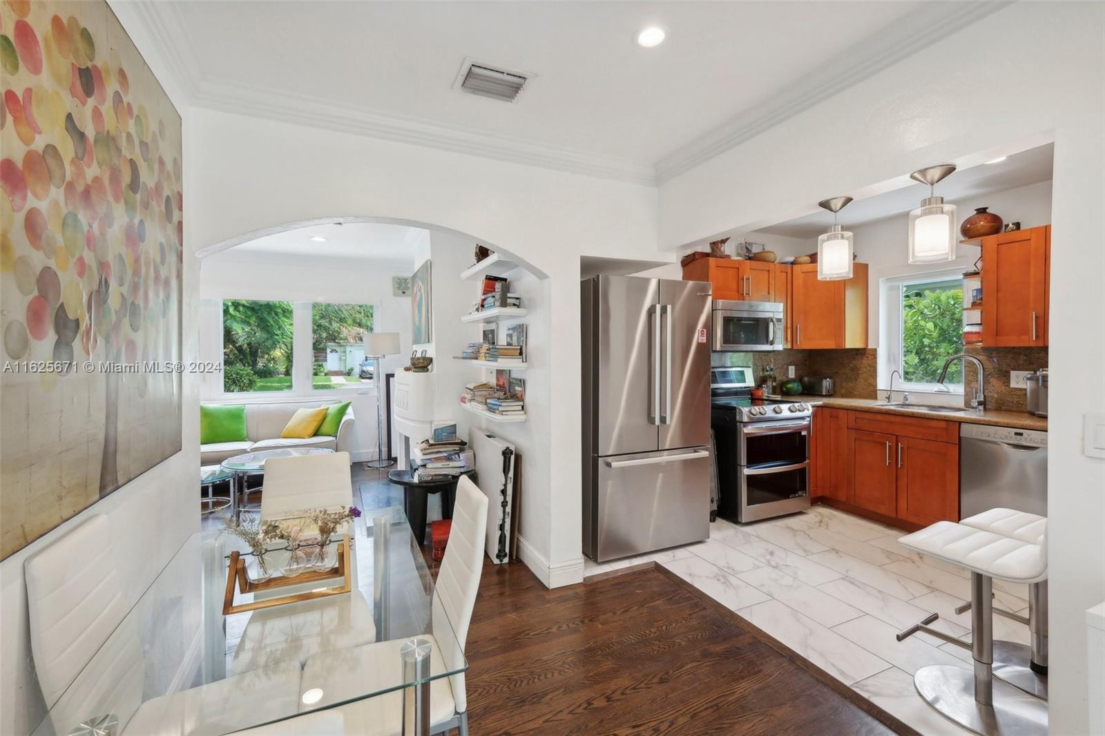 Discover the elegance of this mid-century style single-family home in Coral Gables. This beautifully maintained residence features updated appliances, a brand-new bathroom, new impact windows throughout, and over 1,300 square feet of space thoughtfully designed for both comfort and style. The original fireplace and hardwood floors provide a cozy, homey feel. The large Florida room, with numerous windows, offers abundant natural light and motorized rolling shades. Enjoy the sunrise from the east and the sunset in the afternoon. Nestled in one of Coral Gables' most desirable neighborhoods, this home offers both luxury and privacy. Don’t miss your chance to own this gem—schedule a showing today and step into the lifestyle you've always dreamed of!