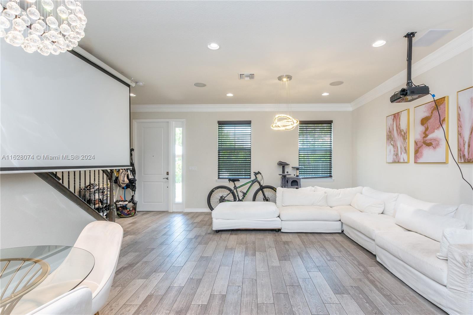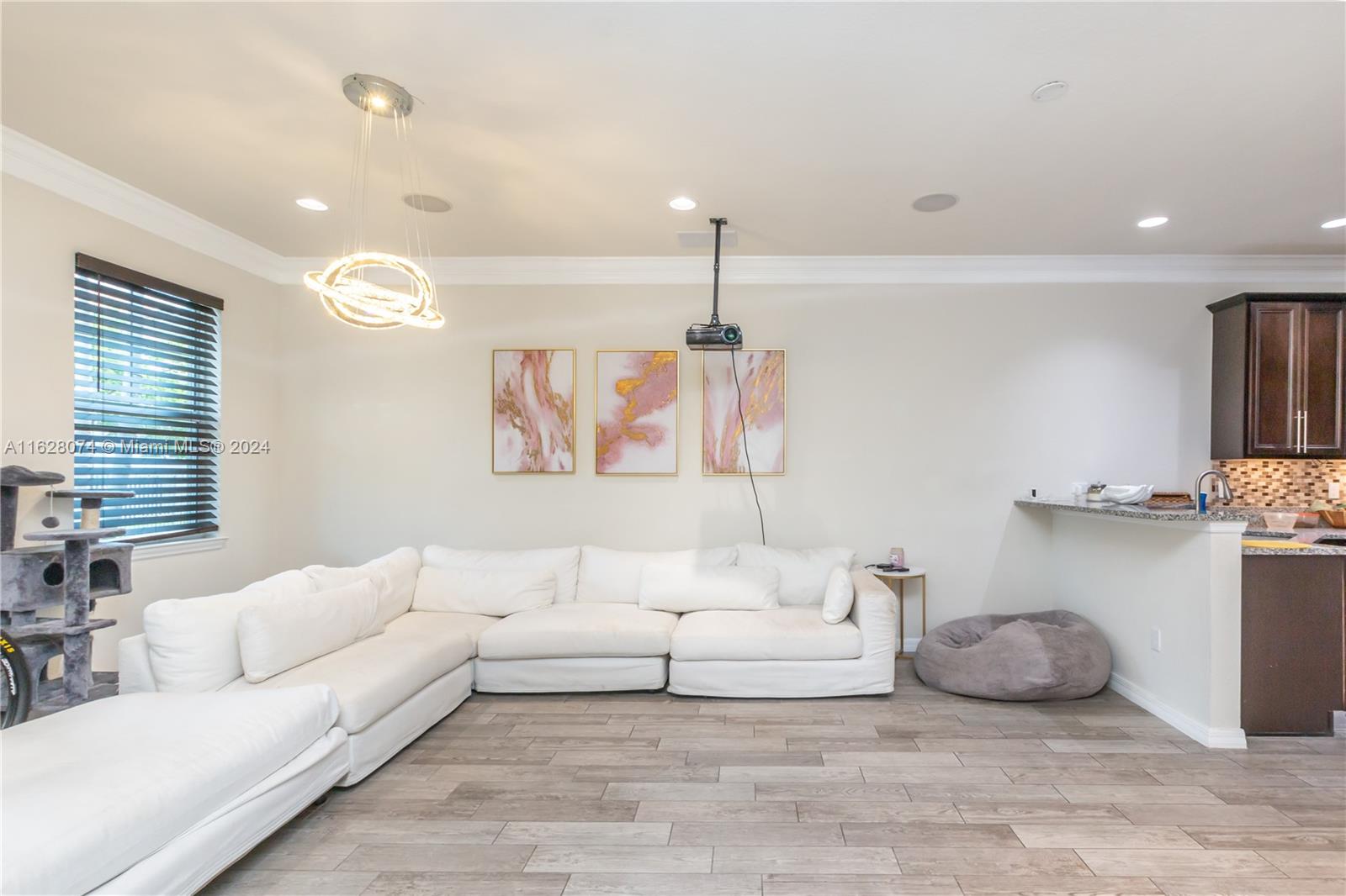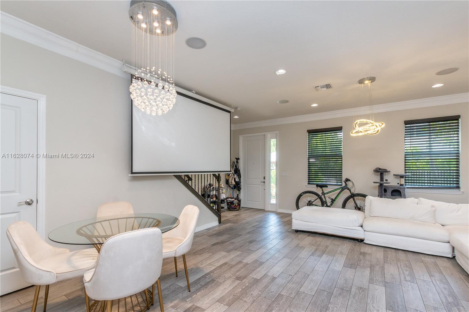 Beautifully updated townhome. Located in the perfect spot in Hollywood. Super safe, brand new gated community. This large unit comes completely updated in every room and boasts 12' high ceilings. In wall speakers and a roll down projector make the perfect movie or get together night. Beautiful chandeliers and lighting fixtures throughout. New appliances and modern kitchen with backsplash. Oversized rooms, especially the primary suite and bathroom. Impact windows and metal roof this house is built to last. 1 car garage and parking spaces behind. Very low HOA with great amenities.