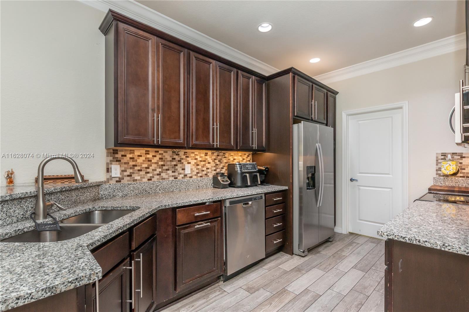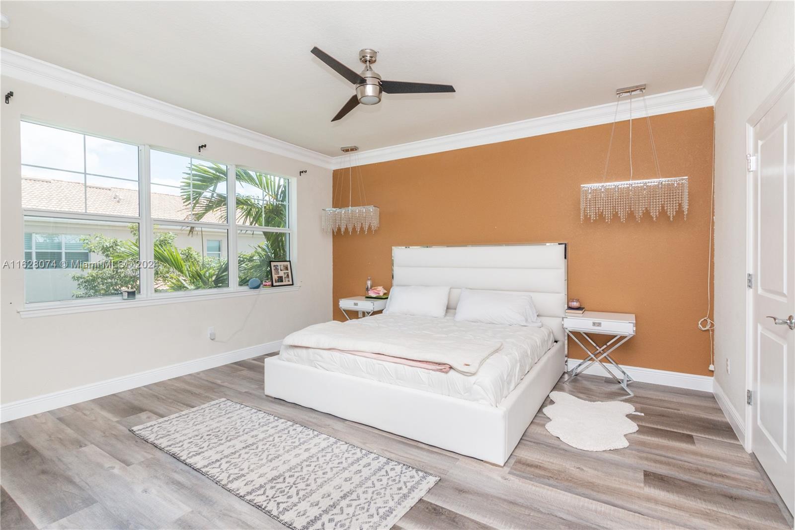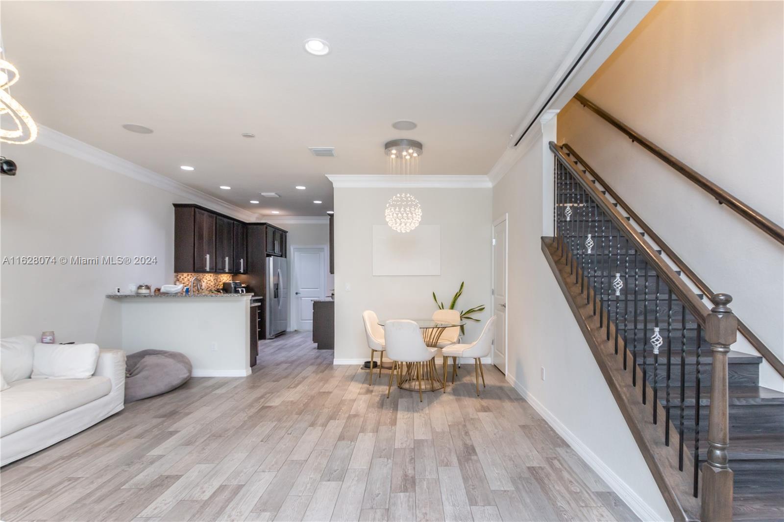 Beautifully updated townhome. Located in the perfect spot in Hollywood. Super safe, brand new gated community. This large unit comes completely updated in every room and boasts 12' high ceilings. In wall speakers and a roll down projector make the perfect movie or get together night. Beautiful chandeliers and lighting fixtures throughout. New appliances and modern kitchen with backsplash. Oversized rooms, especially the primary suite and bathroom. Impact windows and metal roof this house is built to last. 1 car garage and parking spaces behind. Very low HOA with great amenities.