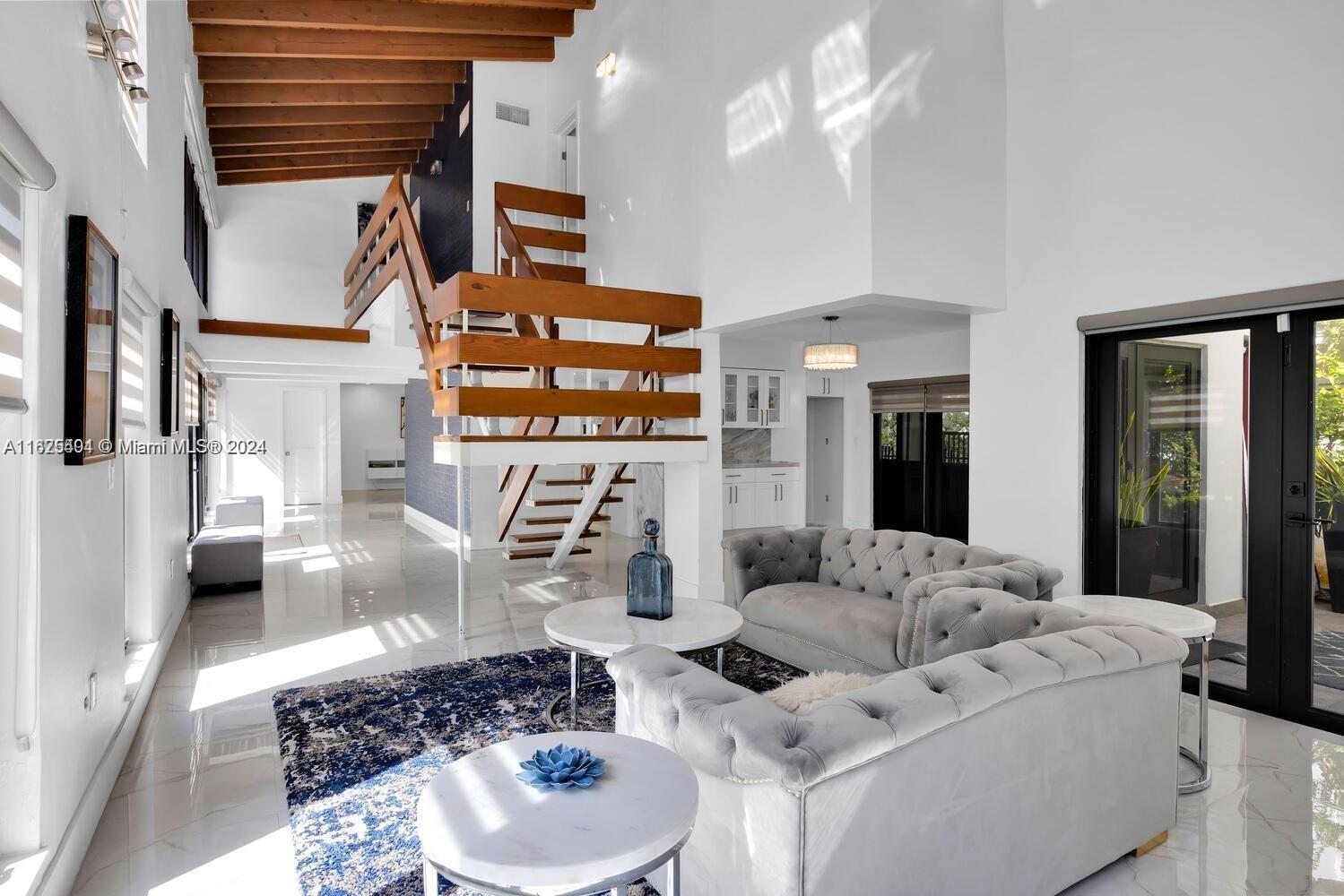 BEST DEAL in Coral Gables! Recently appraised at $2,081,000!! INSTANT EQUITY! Renovated 2-story home in the heart of Coral Gables Country Club / Biltmore area. 4 Beds 3 Baths, over 3,000 sqft on a privately fenced double wide corner lot. The interior boasts 18' vaulted ceilings with exposed wooden beams, updated baths with marble/porcelain finishes. Gourmet Italian kitchen features Bosch appliances, Toscana Carrara quartz countertops with waterfall design. Premium 32 by 32 Toscana Carrara porcelain flooring throughout. Bar area with blue marble countertop is perfect for entertaining! Impact windows & doors. Turfed backyard! Large circle driveway allows for plenty of parking. 1 car garage used as 4th Bedroom. Tenant till Feb 15th. Call listing agent for the most accurate information!