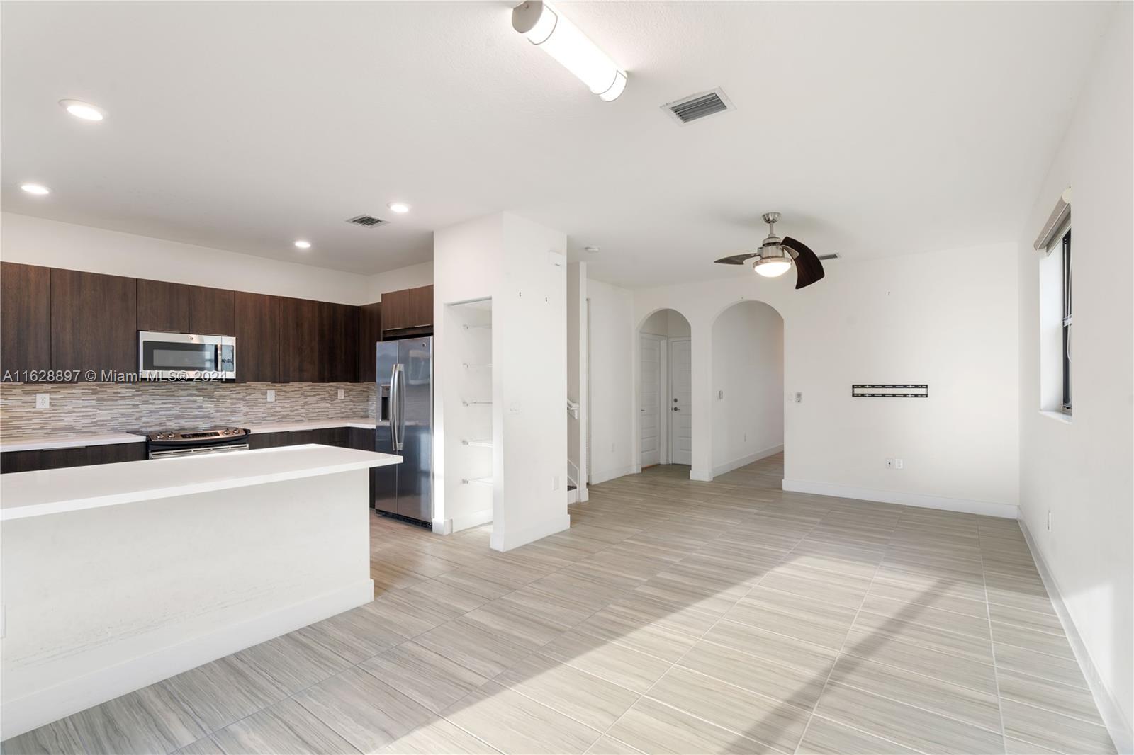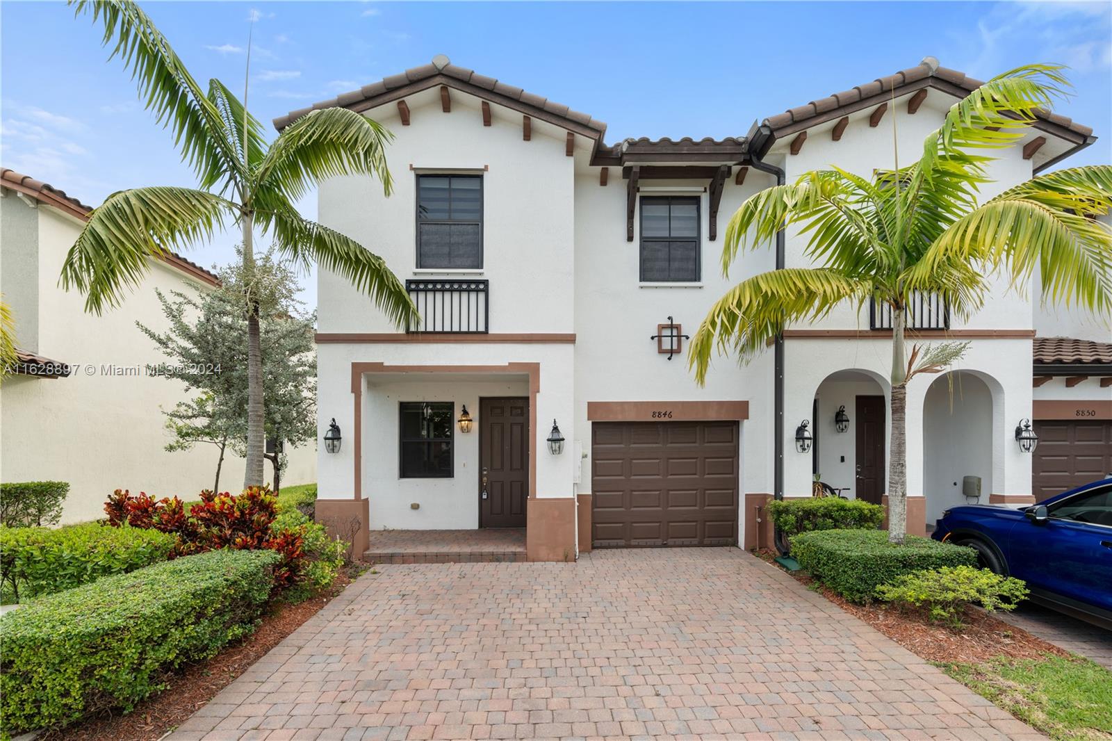 Price to sell! One of the biggest 4 beds townhouses in a quiet gated community. This corner home features 4 beds, 2.5 baths with a modern and spacious kitchen, stainless steel appliances, quartz Countertop in a eat-in kitchen ideal to share With Family/Friends. Tile floor downstairs and laminate on main areas of the second floor. Full size Washer & Dryer. One car garage and parking for up to 3 more cars on the driveway. Nice paved patio for outdoor entertainment. No back neighbors. The residents will have access to one of the Largest Club Houses in Doral with Resort-style Pool, Fitness Center, Playground and Splash Park, Tennis Court, Basketball Course, Business Center, Jacuzzi and soon a Soccer Field as per developer plans.