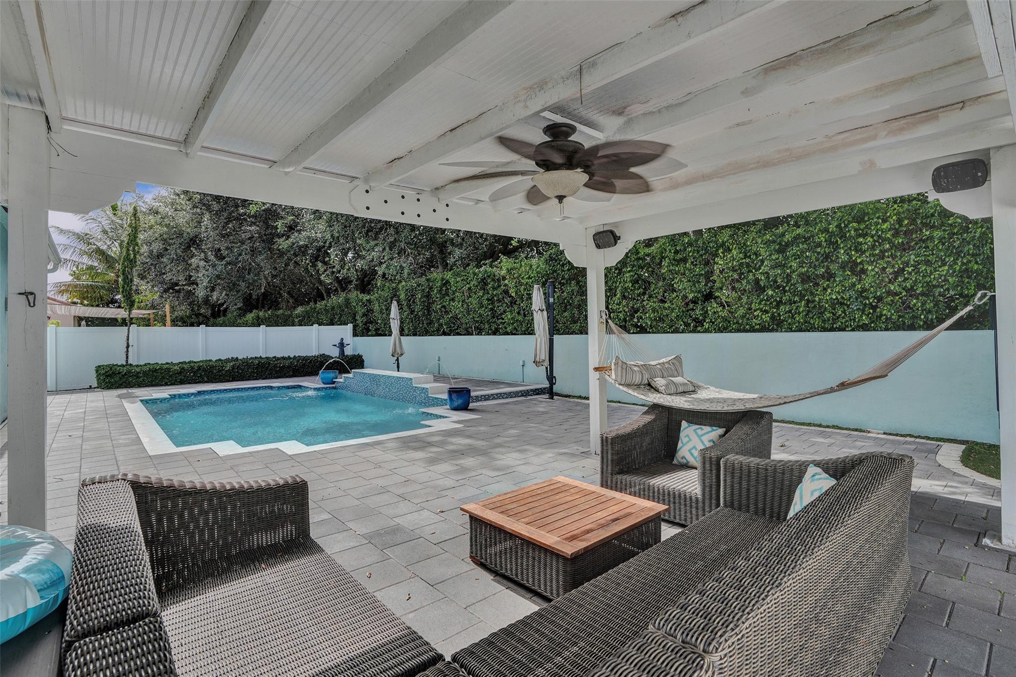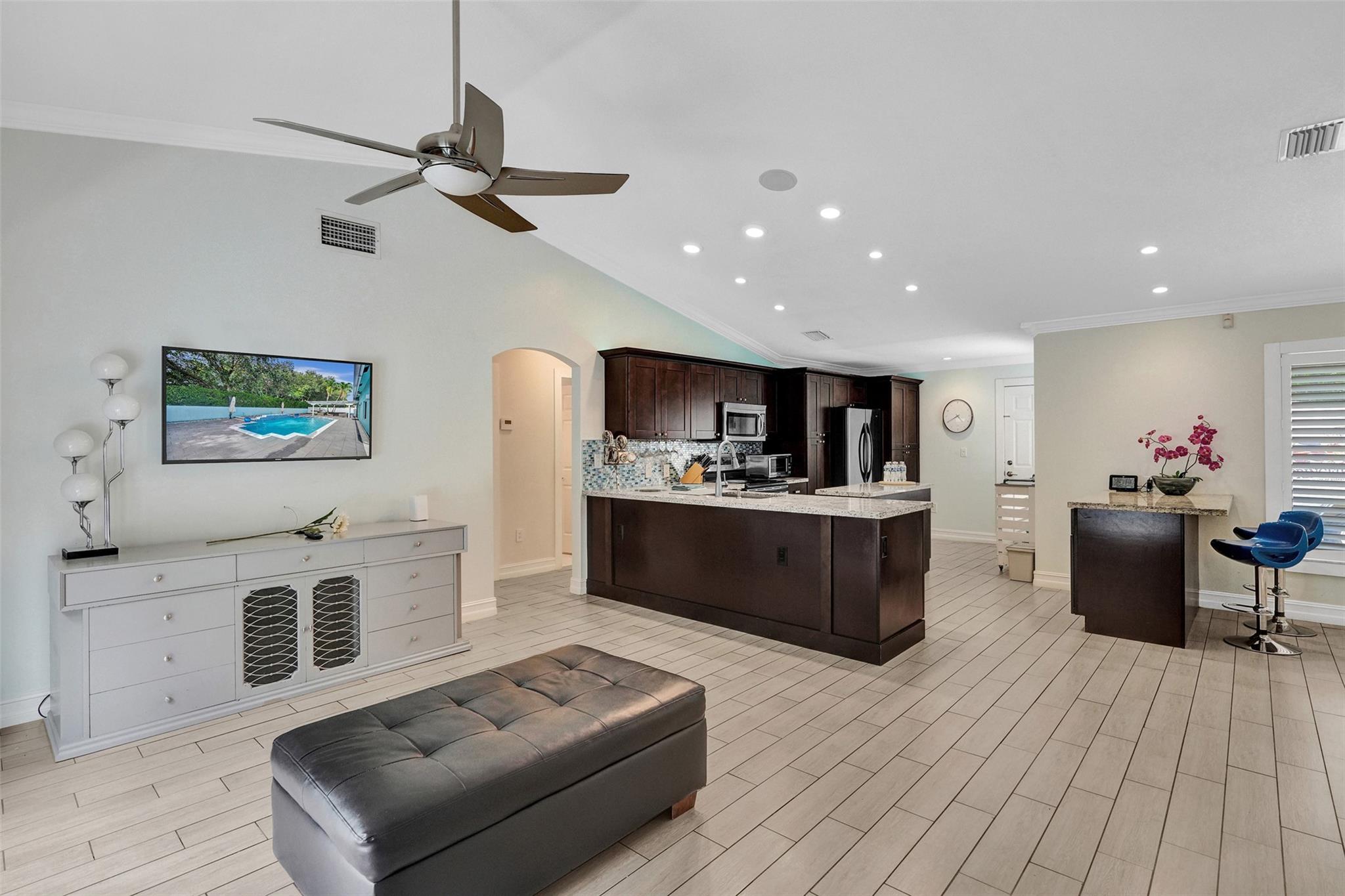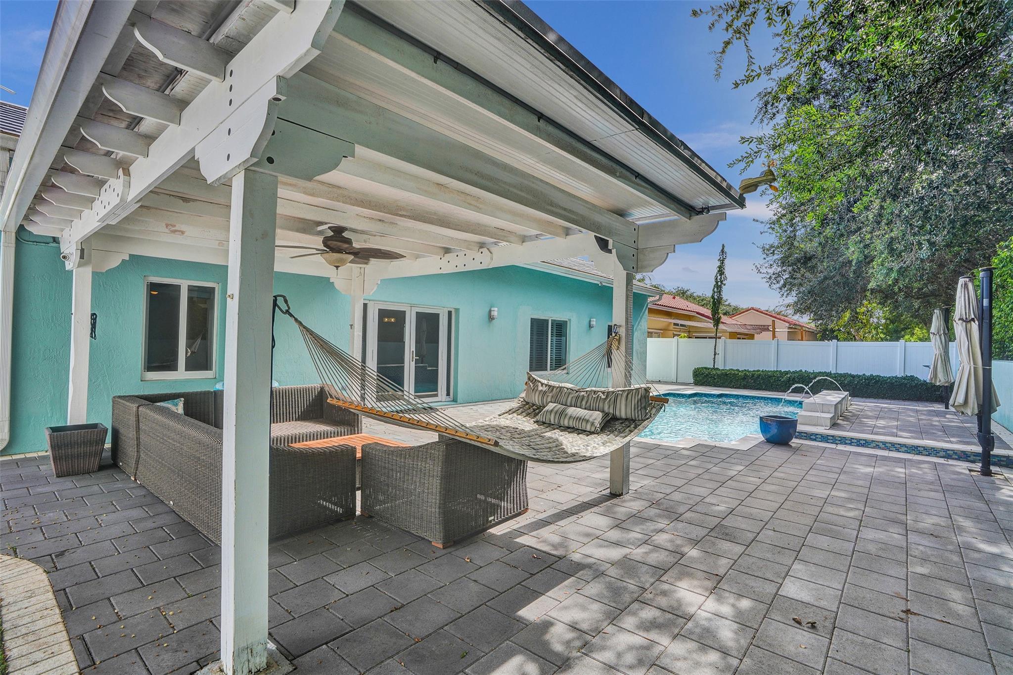 This stunning 3-bedroom home + Den includes a fully enclosed den/office with built-in cabinetry offering flexibility for work or additional living space. Resort-like backyard, complete with a heated, saltwater pool and a covered pergola offers indoor/outdoor living. The home boasts a modern kitchen with granite countertops and a rolling center island. The climate-controlled 2-car garage, equipped with an AC mini-split system, provides comfortable storage and workspace year-round. A new roof installed in 2018 features double hurricane straps along with Complete hurricane impact protection for windows/doors/garage to ensure peace of mind and insurance discounts. New AC condenser keeps the home cool and comfortable. Conveniently located near I-75, malls, hospitals, and parks.