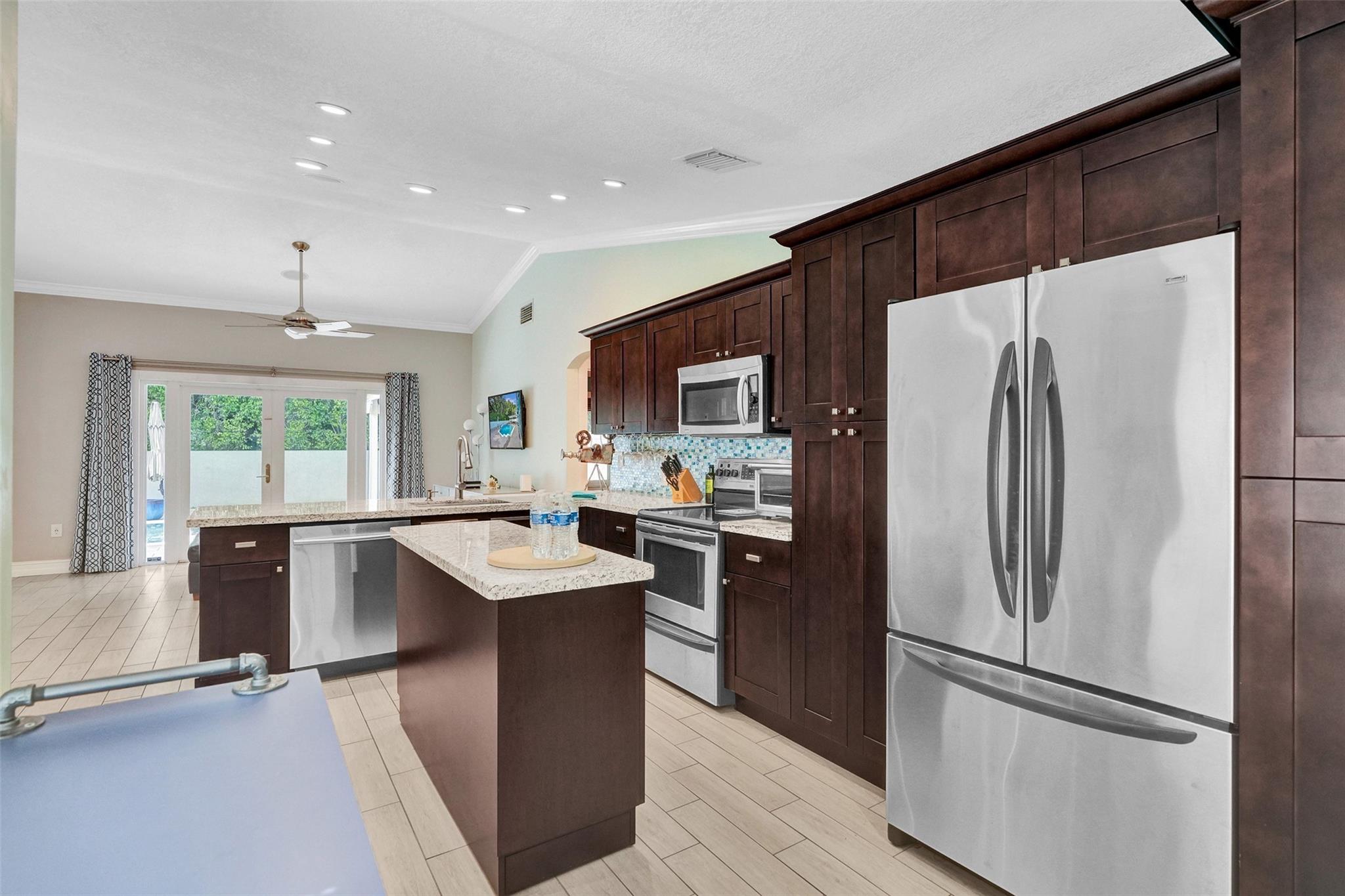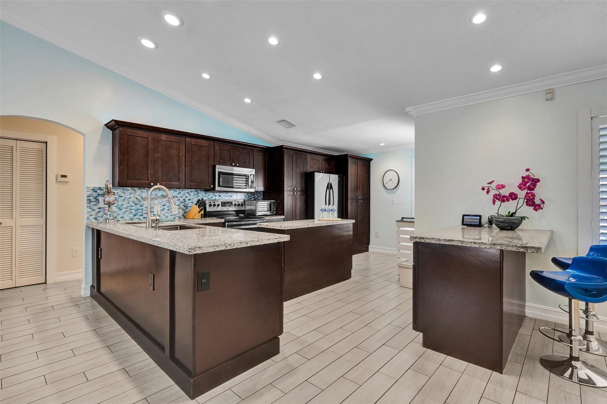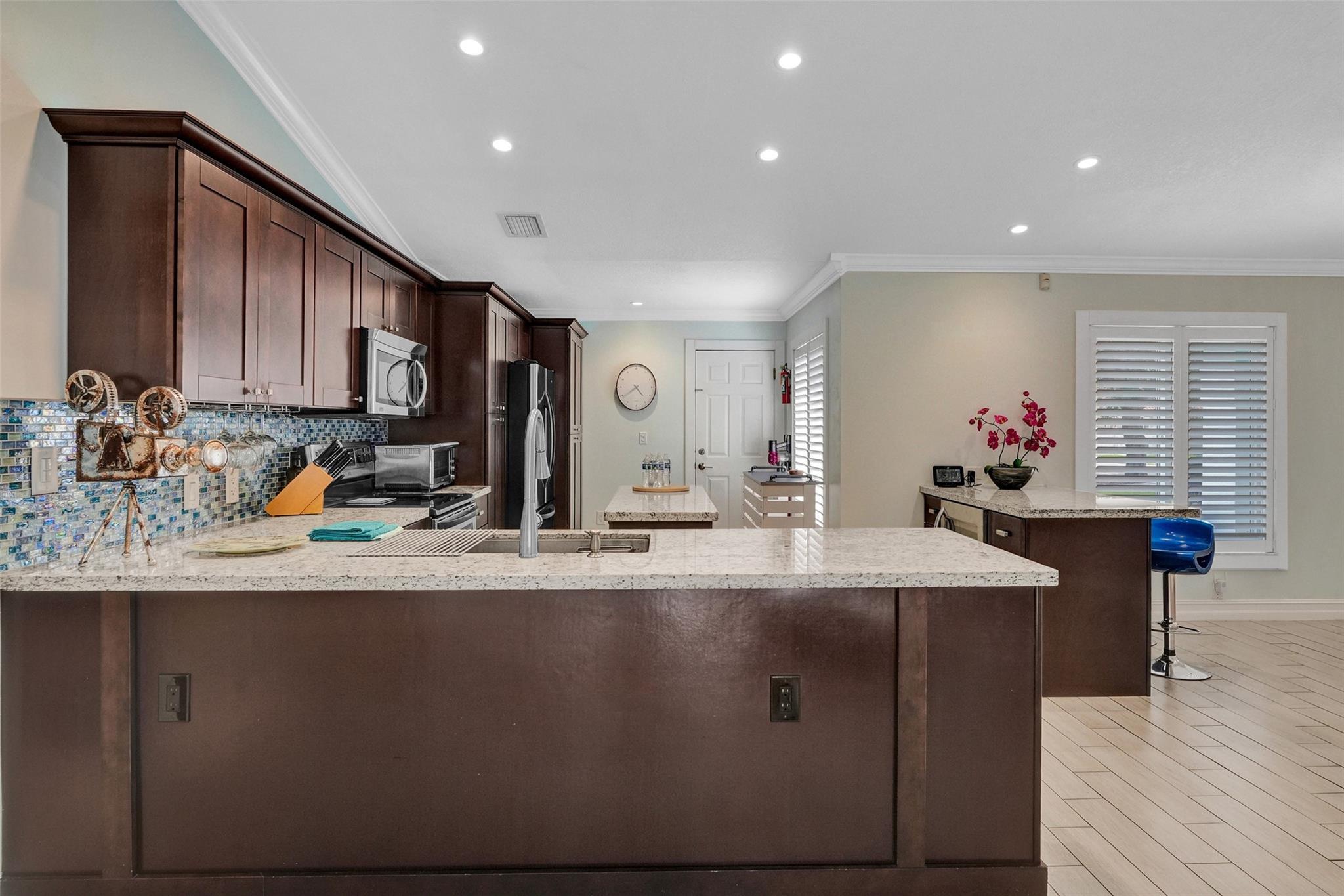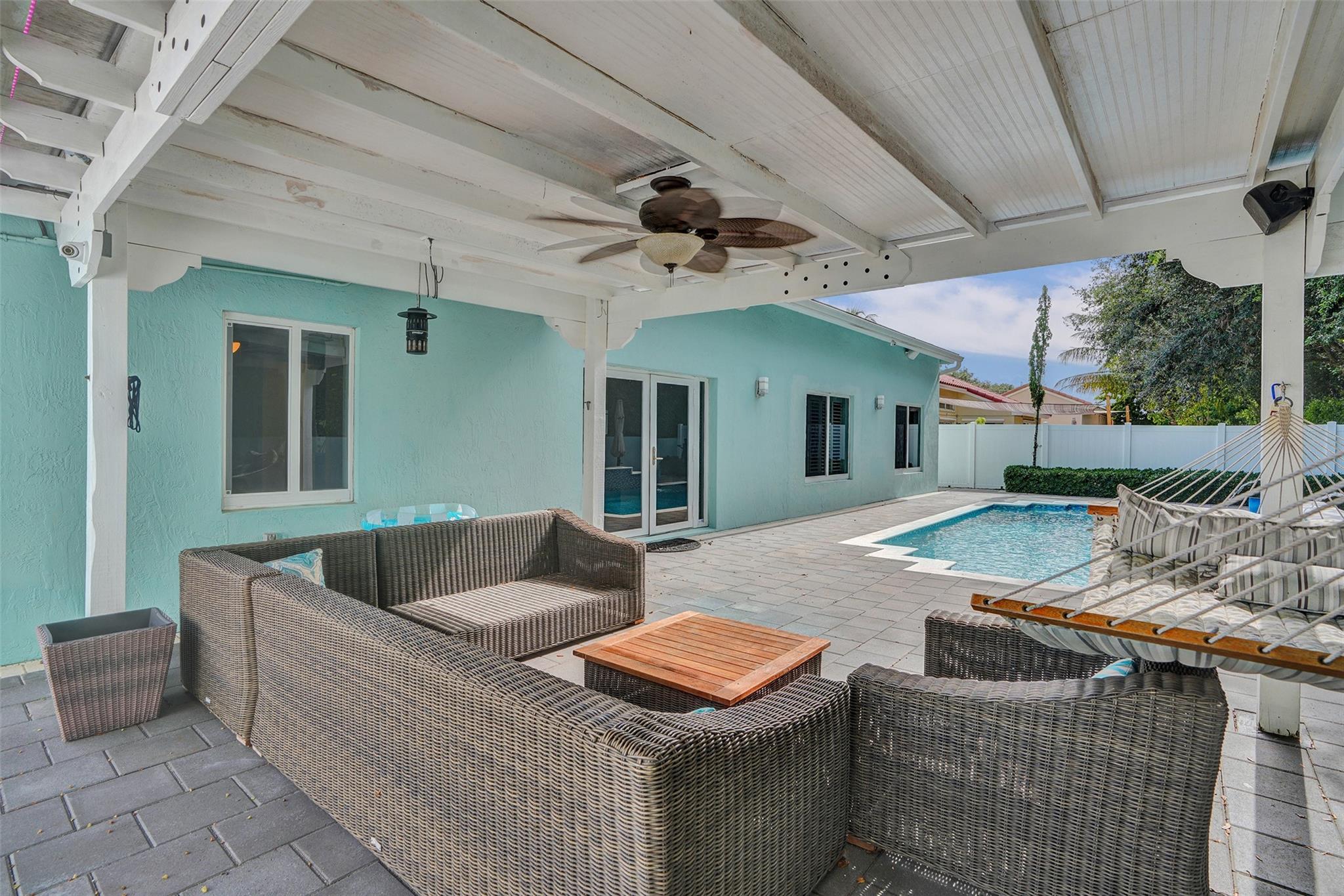 This stunning 3-bedroom home + Den includes a fully enclosed den/office with built-in cabinetry offering flexibility for work or additional living space. Resort-like backyard, complete with a heated, saltwater pool and a covered pergola offers indoor/outdoor living. The home boasts a modern kitchen with granite countertops and a rolling center island. The climate-controlled 2-car garage, equipped with an AC mini-split system, provides comfortable storage and workspace year-round. A new roof installed in 2018 features double hurricane straps along with Complete hurricane impact protection for windows/doors/garage to ensure peace of mind and insurance discounts. New AC condenser keeps the home cool and comfortable. Conveniently located near I-75, malls, hospitals, and parks.