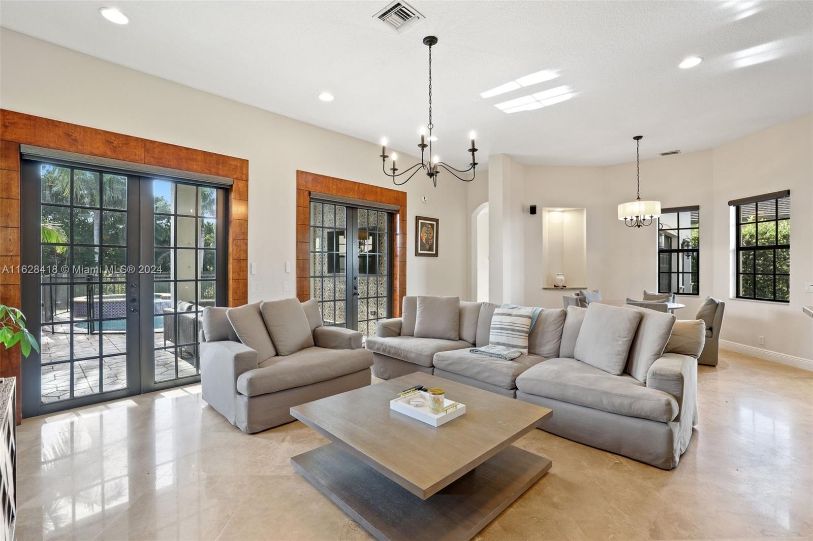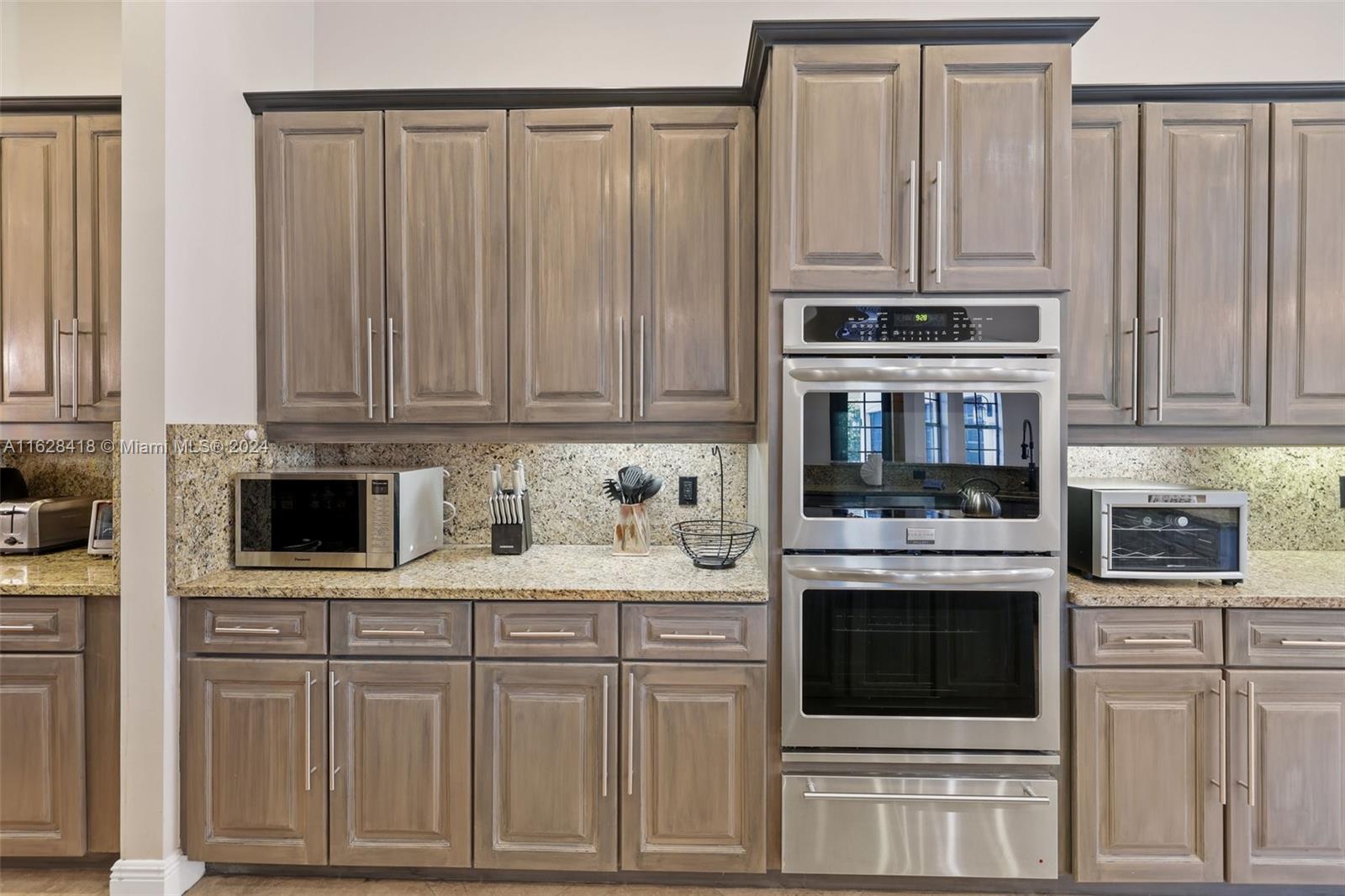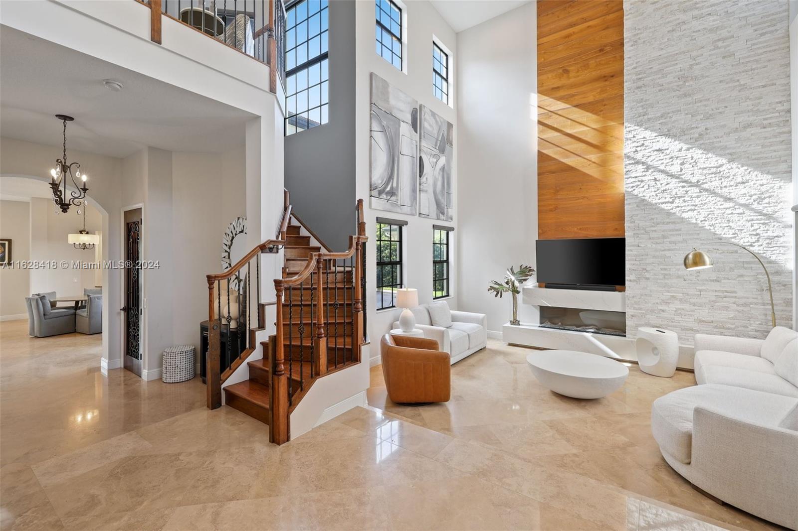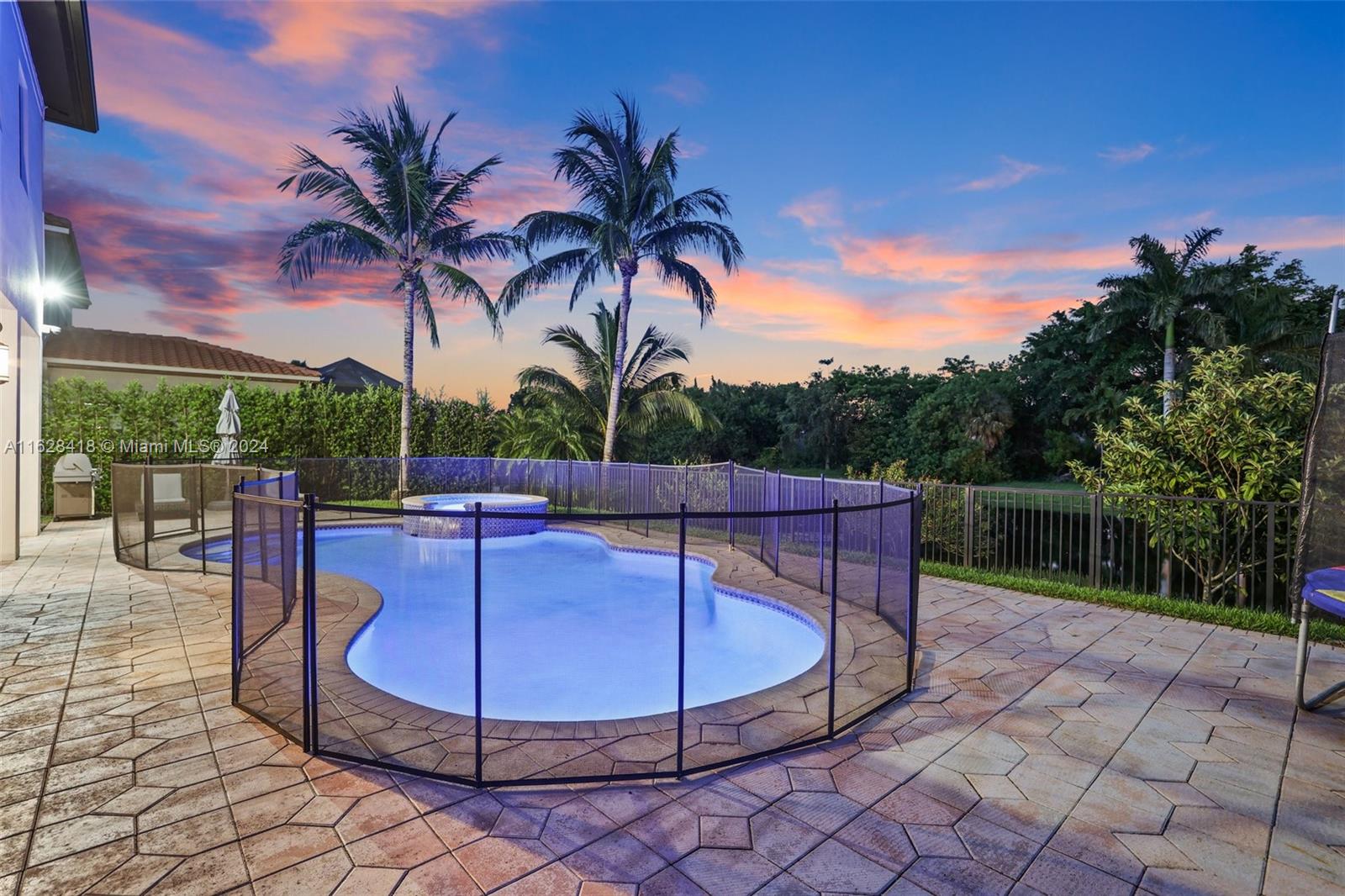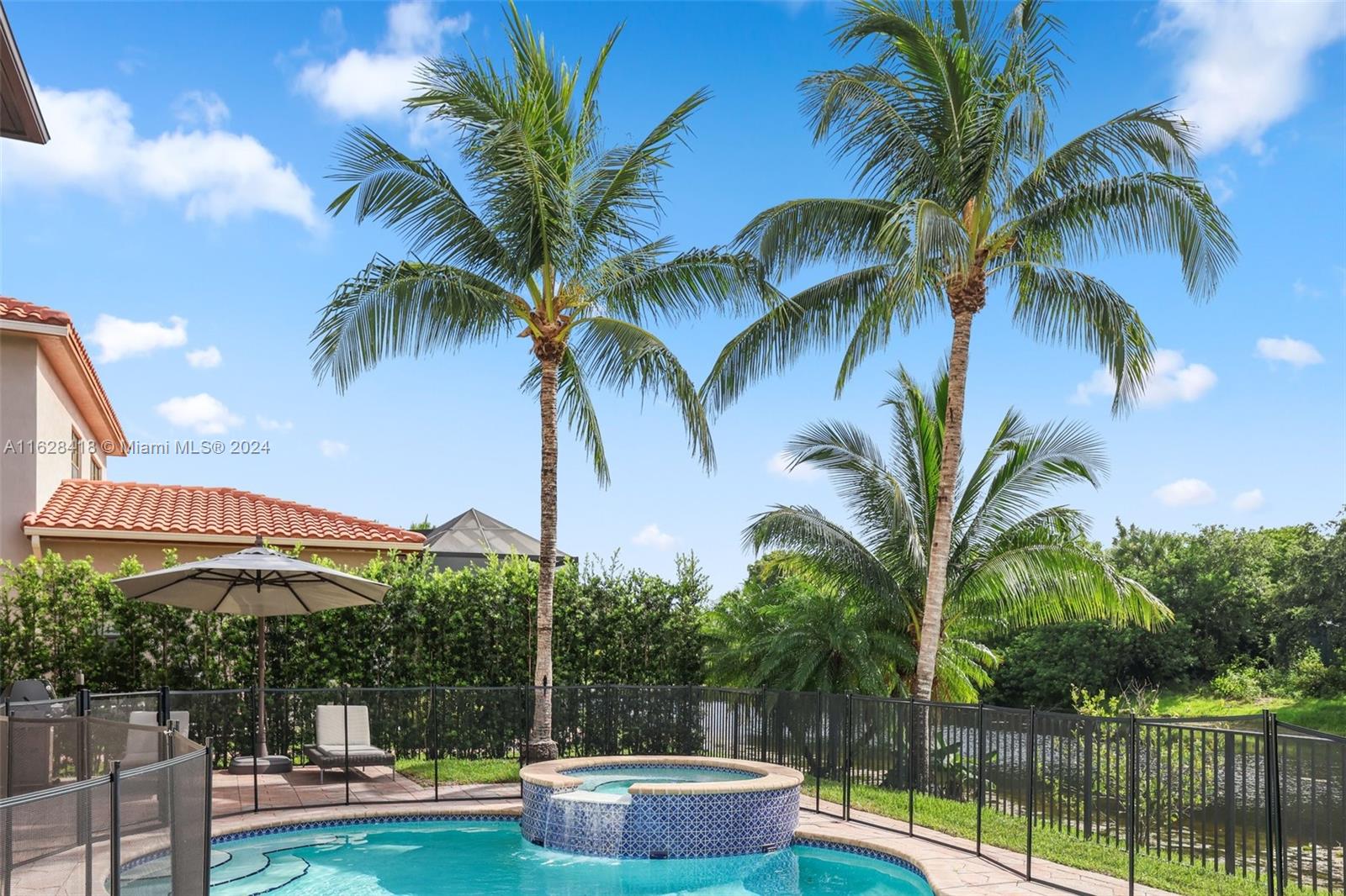 Gorgeous curb appeal at the front, not a single neighbor to the back, and completely turnkey! Welcome to your new home in the intimate enclave of Parkland Estates. Featuring 5 Bedrooms, 4.5 Bathrooms, over 4,200 sq ft of living space, this property is truly a head-turner. Meticulous landscaping with a modern marble driveway are punctuated by well-placed accent lighting and a custom gate into the courtyard. From the front door, you are struck with double height ceilings, a soaring fireplace, and countless impact windows that offer safety while bringing in tons of natural light, that can be easily dimmed at your convenience with remote blinds. The open kitchen and living space looks out onto the sunny backyard and pool/spa. Walk or bike to Parkland's A-Rated schools and best parks.