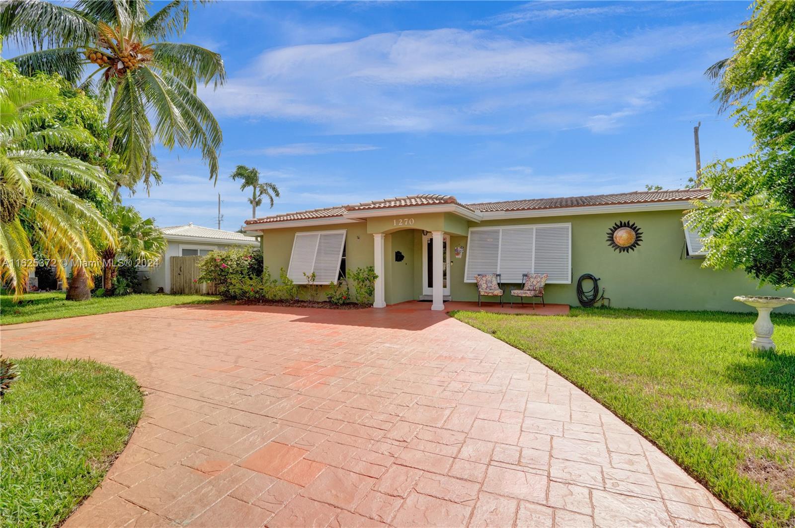 WELL PRICED 3/2 POOL HOME IN POMPANO with room to grow! Discover your oasis in the heart of Pompano Beach! This home has 3 beds, 2.5 baths with a formal dining room, & bonus Family room. Beautiful stamped concrete circle driveway & nicely landscaped yard w/ added curb appeal. The fenced side & backyard are paved w/ a free form heated (solar panel) pool and a Gazebo—ideal for outdoor entertaining or enjoying sunny days. Primary wing is a permitted enclosure with 2 spacious closets, dual sinks, and a separate A/C for added comfort. The laundry room & powder room both updated. Addtl features: Split Floorplan, Rain Gutters, exterior cameras, Crown molding, Knock down textured walls, Electrical updated, tankless w/h, ext painted 2023, New A/C's 2023, New Fridge 2024 & more. Some staged pics.