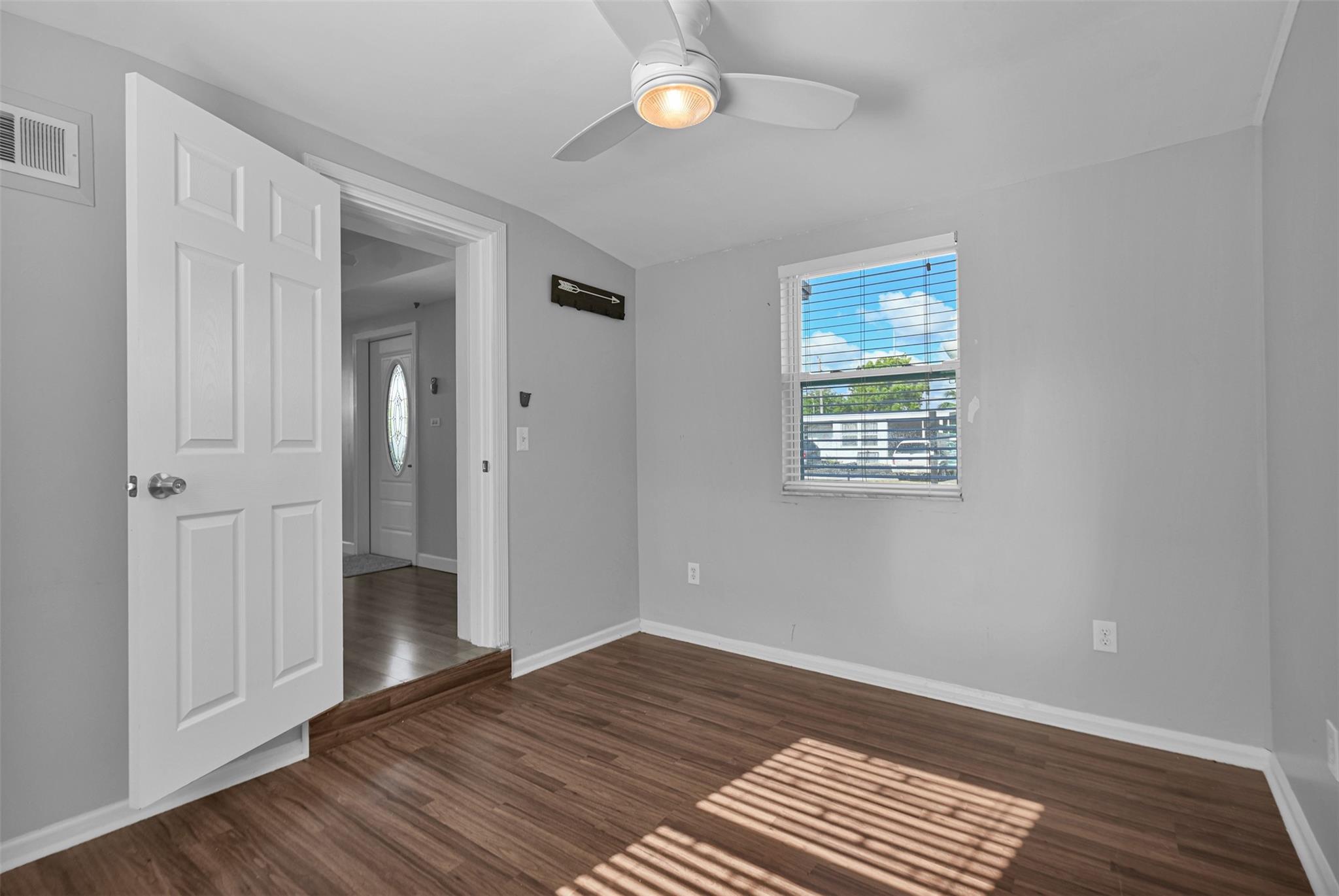 Great Investment Opportunity or Ideal Starter Home! This beautifully remodeled home boasts a fresh interior with new flooring throughout. The modern kitchen is equipped with stainless steel appliances. The expansive backyard, measuring 10,286 square feet, offers endless potential for a pool or future expansion. There's ample space to add a bedroom and bathroom. Additional features include accordion shutters, a one-car garage, central A/C, and no HOA fees. Plus, enjoy peace of mind with a brand new roof installed in 2024, with a warranty.