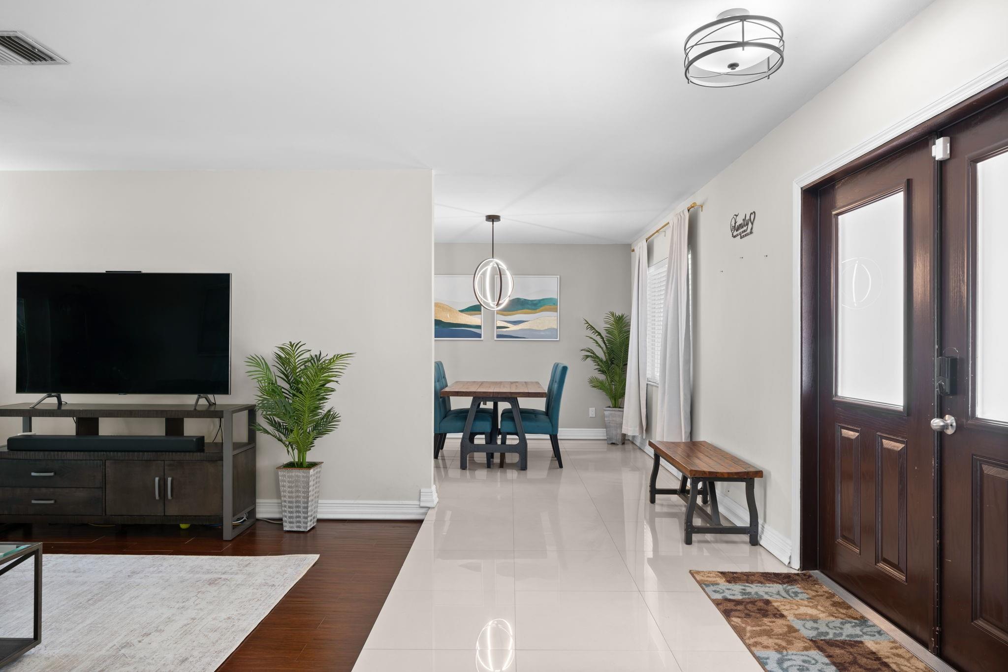 Come tour this beautifully remodeled 3 bedroom, 2 bathroom pool home in sought-after Pembroke Lakes! Features include a 2-car garage & porcelain tile throughout, an outstanding kitchen w/ light granite countertops, wood cabinets, & a large island. The ensuite primary bedroom boasts a walk-in closet & a luxurious bath with a modern, glass-enclosed shower, dual vanities, & elegant tile work. Spacious bedrooms & a 2nd family room overlooking the pool, providing a relaxing space w/ a beautiful view. The outdoor area is a true highlight w/ a large covered patio ideal for dining & lounging. The private, lush backyard is perfect for gatherings & relaxation, & boasts a sparkling pool surrounded by travertine tile seamlessly flowing from the patio. High-grade impact windows & doors, plus a new roof
