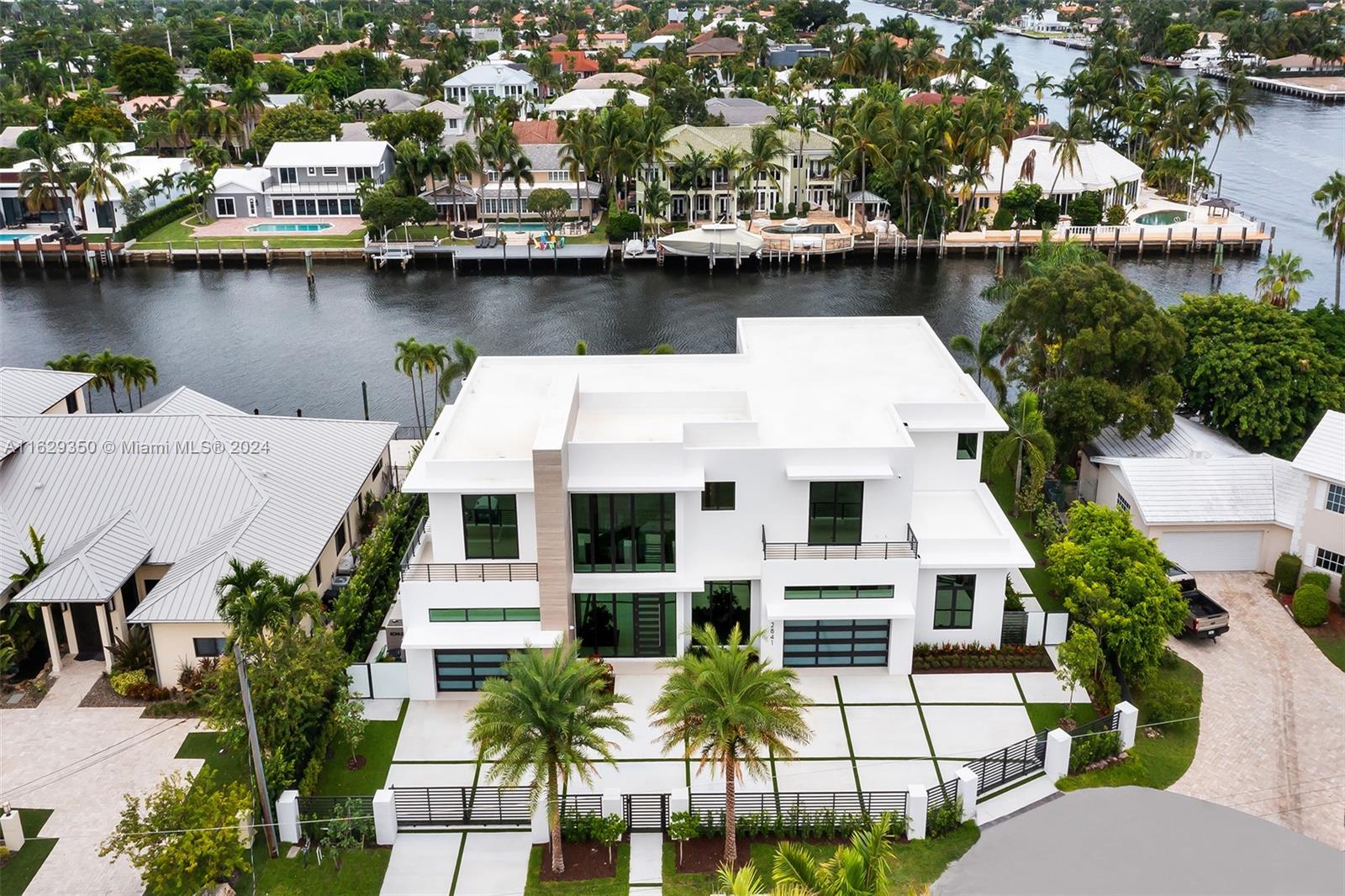 An exquisite home on Coral Ridge Estates' widest canal with 125 feet of prime waterfront, one lot from the Intracoastal waterway. This architectural marvel boasts spectacular views of the canal and Intracoastal, soaring ceilings, two primary suites, an elevator, dual 2-car garages, an open, seamlessly flowing floor plan. Impeccably designed, the luminous interior with custom touches includes a majestic great room with a bar, a gourmet chef's kitchen with a glass-enclosed wine cellar, double-sided fireplace, and outside, the allure continues with expansive covered areas, pool and hot tub, deluxe summer kitchen, and a private concrete dock with new seawall. This waterfront estate, located across from the prestigious Coral Ridge Country Club, is an unparalleled testament to luxury living.