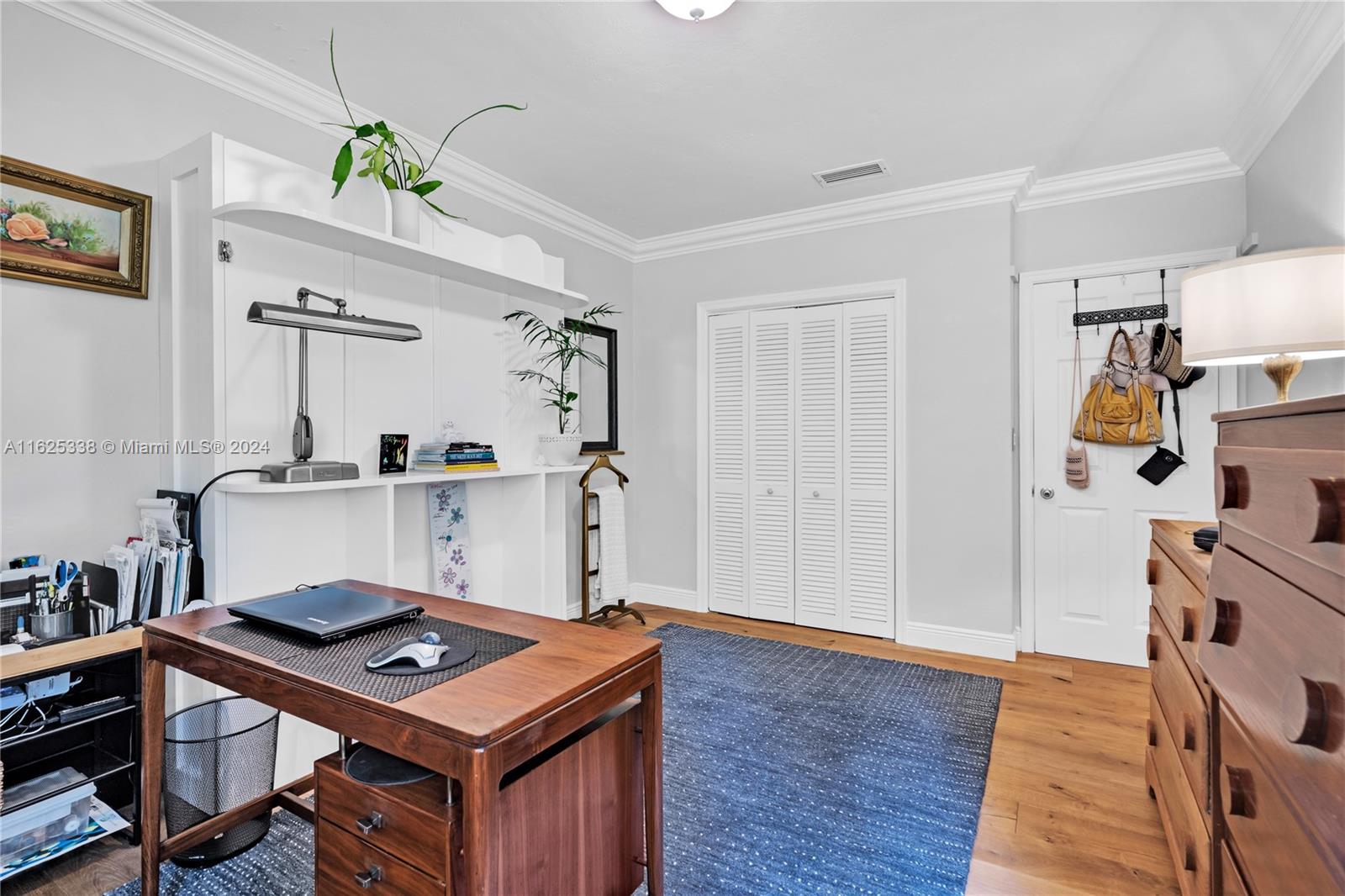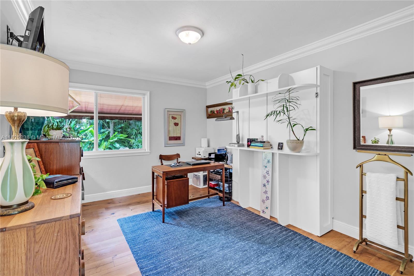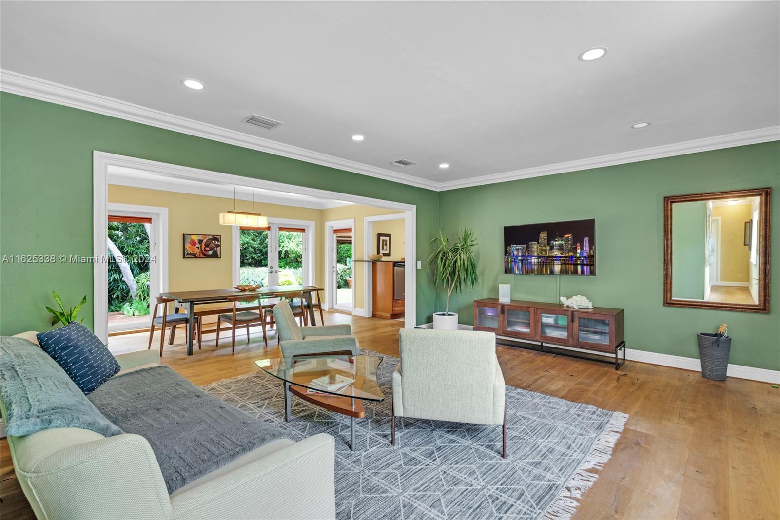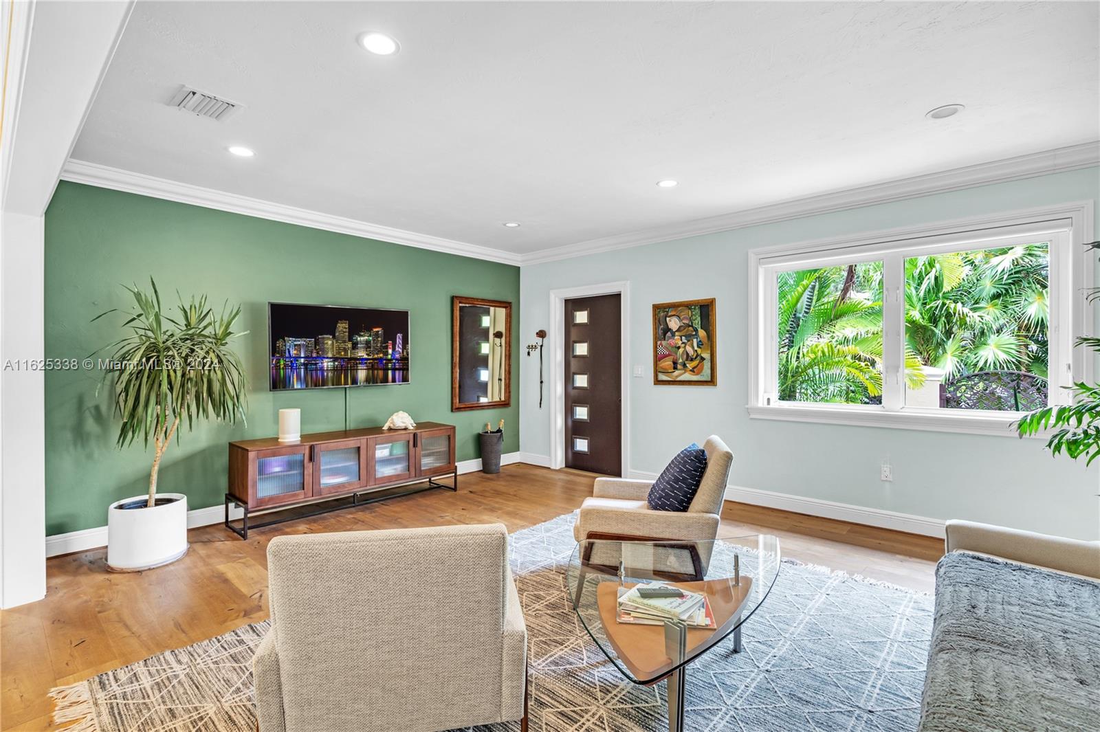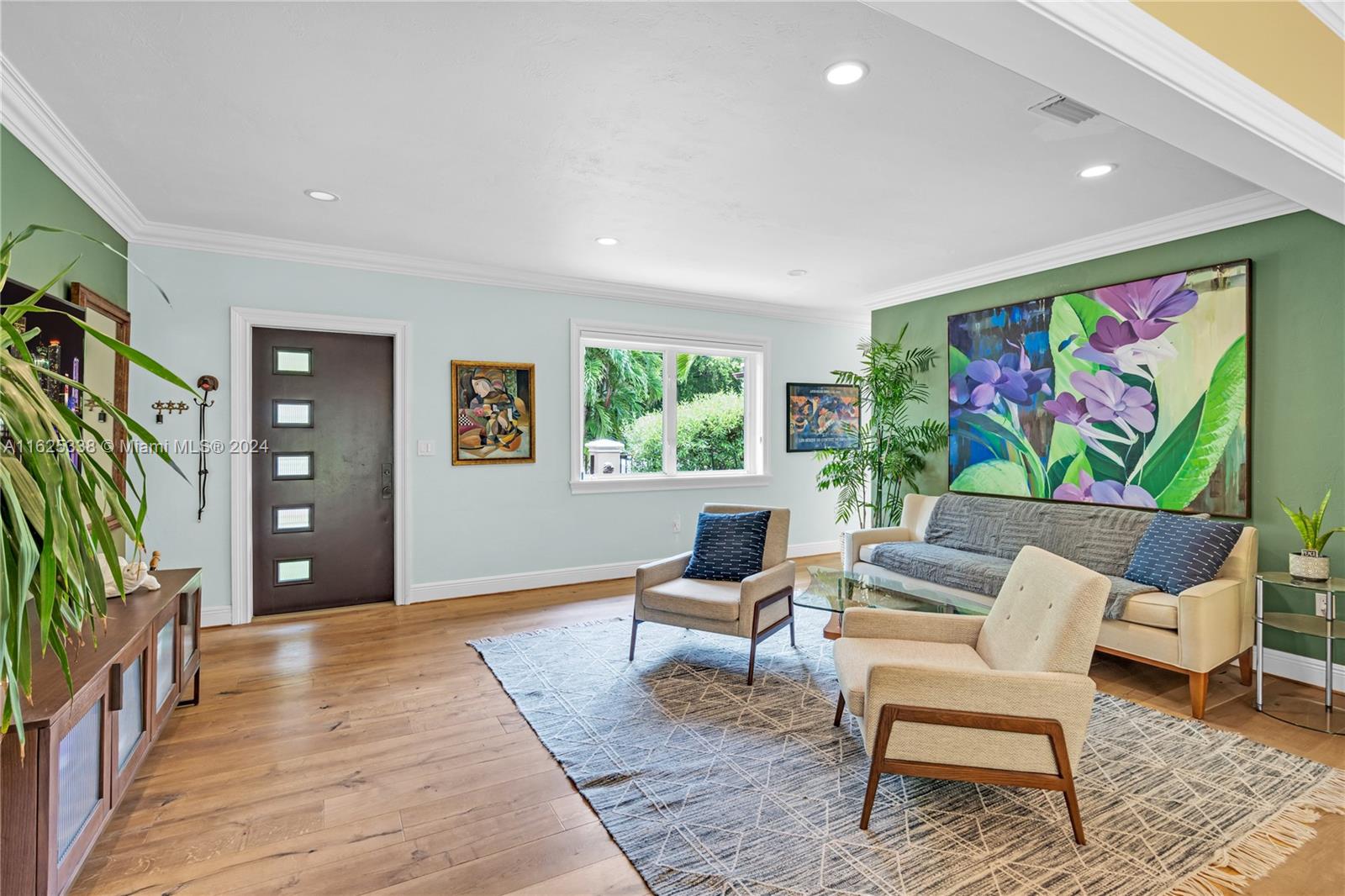 Welcome “Palm Zen Manor” - An updated & sleek single-family on a double lot in prime south Gables location. This residence boasts 1,661 sq ft with an open concept design & tons of natural light opening to relaxing garden views throughout. The moment you walk up you are greeted by a koi pond & fountain. When you step inside the home is decked w/ beautiful Oak Wood Floors, a new AC unit, updated plumbing, impact windows & doors, newer kitchen w/ S/S appliances. Spacious bedrooms & primary suite. The meticulously landscaped yard is a serene escape, ideal for relaxing or hosting gatherings & is the ultimate private escape. The home has an expansive deck ready for a possible addition. Covered lenai with sunsetter awning. Room for pool. Minutes from South Miami & Downtown Coral Gables.