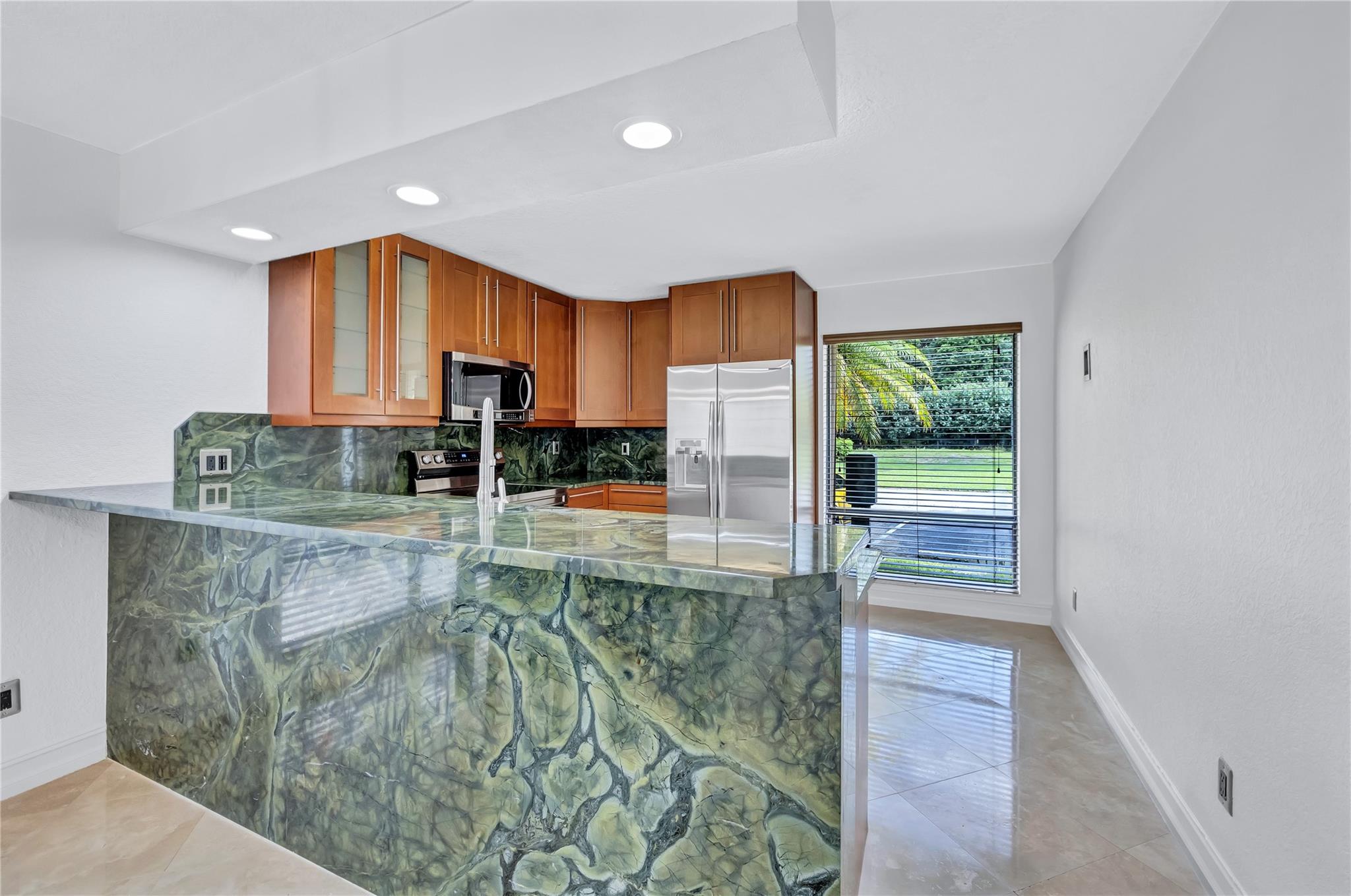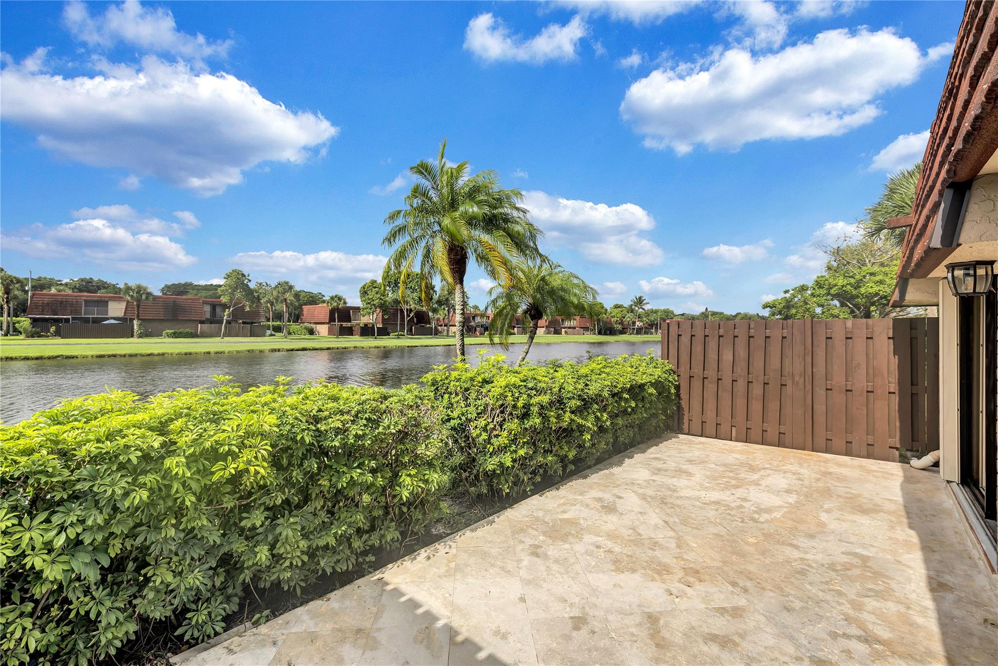 This RARE beautiful lakefront villa in "The Lakes of Boca Rio" offers low HOA fees & corner unit privacy w/stunning lake views & sunsets. Enjoy open, airy spaces w/lush landscaping & 2 patios! Convenience galore w/2 assigned parking spots directly in front of your villa w/an EV charger & the mailbox steps away. A scenic walking/biking path leads to remodeled amenities: pool, patio, clubhouse, tennis courts, & a tot-lot. This move-in-ready home features concrete poured walls, polished travertine flooring, high-end appliances, quartzite counters, updated kitchen & baths. Accordion shutters, real wood blinds, & an luxurious primary suite w/a Jacuzzi & his/hers closets complete this exquisite property. Large windows & glass sliders offer beautiful lake views and natural light. Stay friendly!