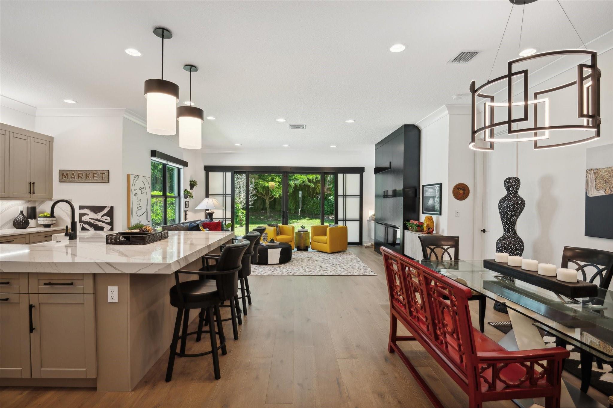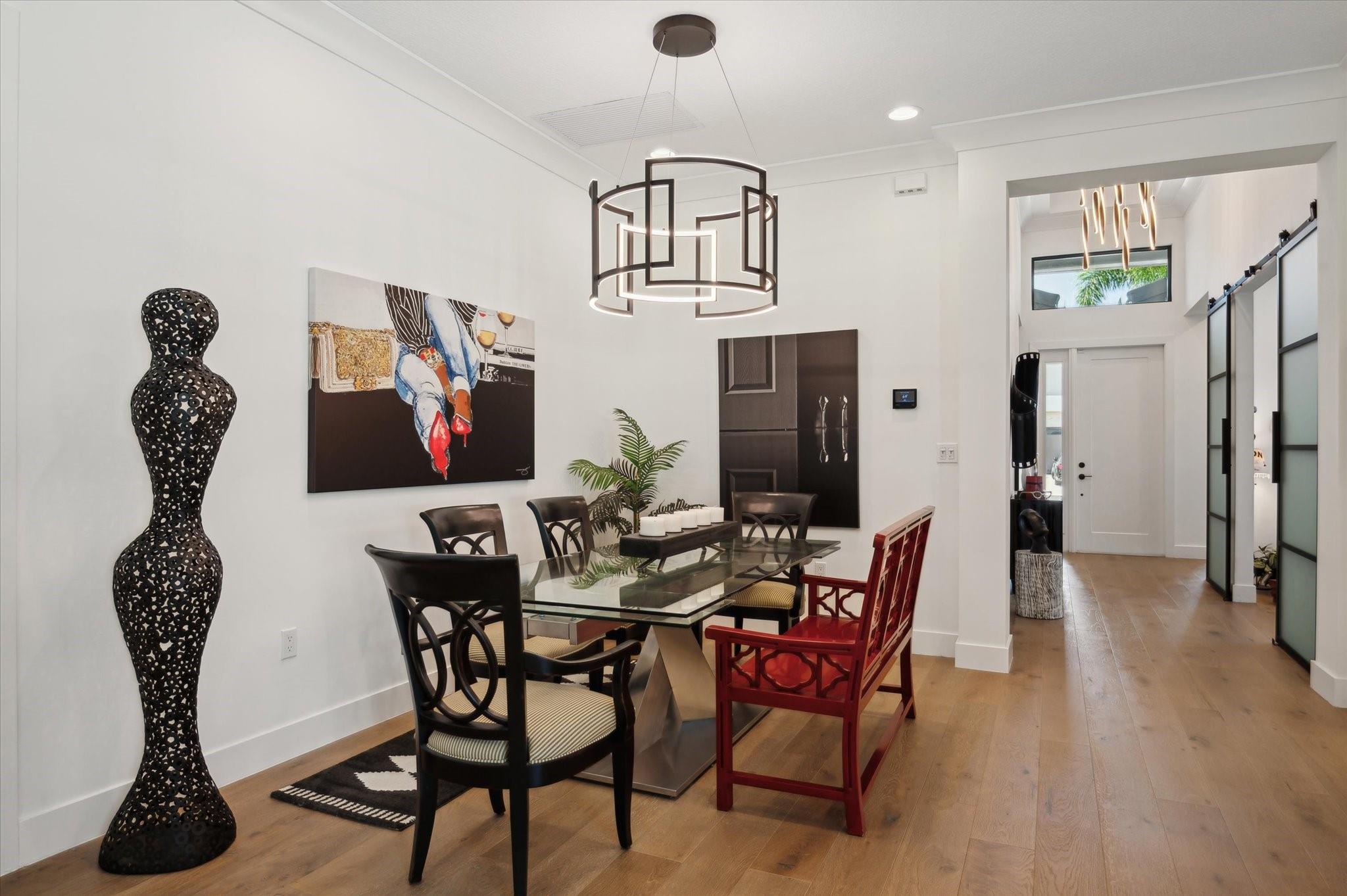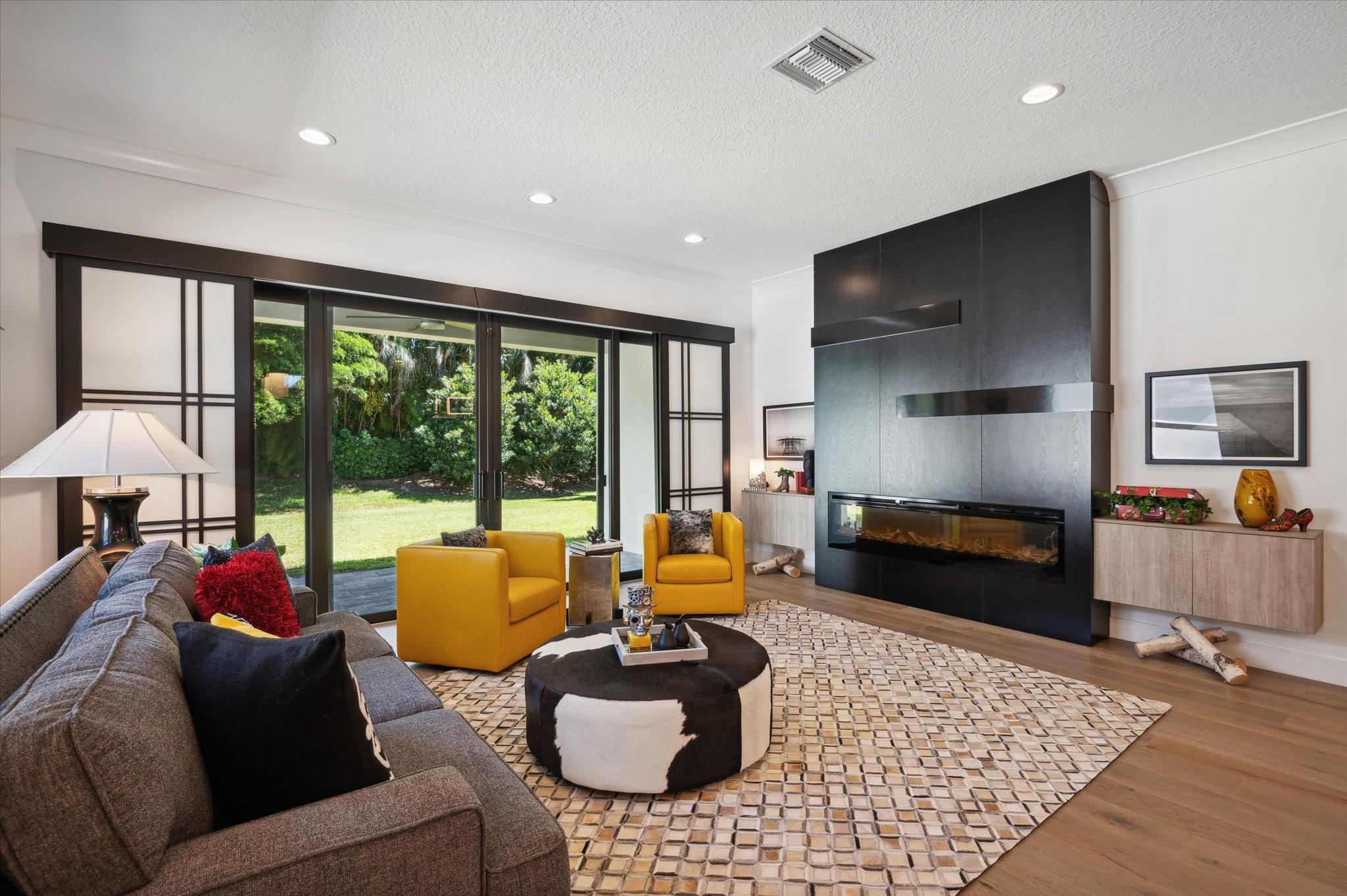 Step into luxury with this meticulously customized Maui model home, featuring three bedrooms, three bathrooms, and large enclosed den with custom sliding doors. This barely lived in home features high-end finishes such as wood floors, designer lighting, custom window treatments, Impact glass and an impressive custom electric fireplace. The gourmet open kitchen boasts barely used top-of-the-line appliances, extra thick Quartz countertops, oversized island with quartz waterfall edge & farmhouse sink. The private and spacious primary suite offers an incredible master bathroom with a seamless glass-enclosed shower, floor-to-ceiling porcelain tile, oversized vanity, and striking designer ceiling panels. Beautifully landscaped lot with private backyard, covered patio, and room for a pool.