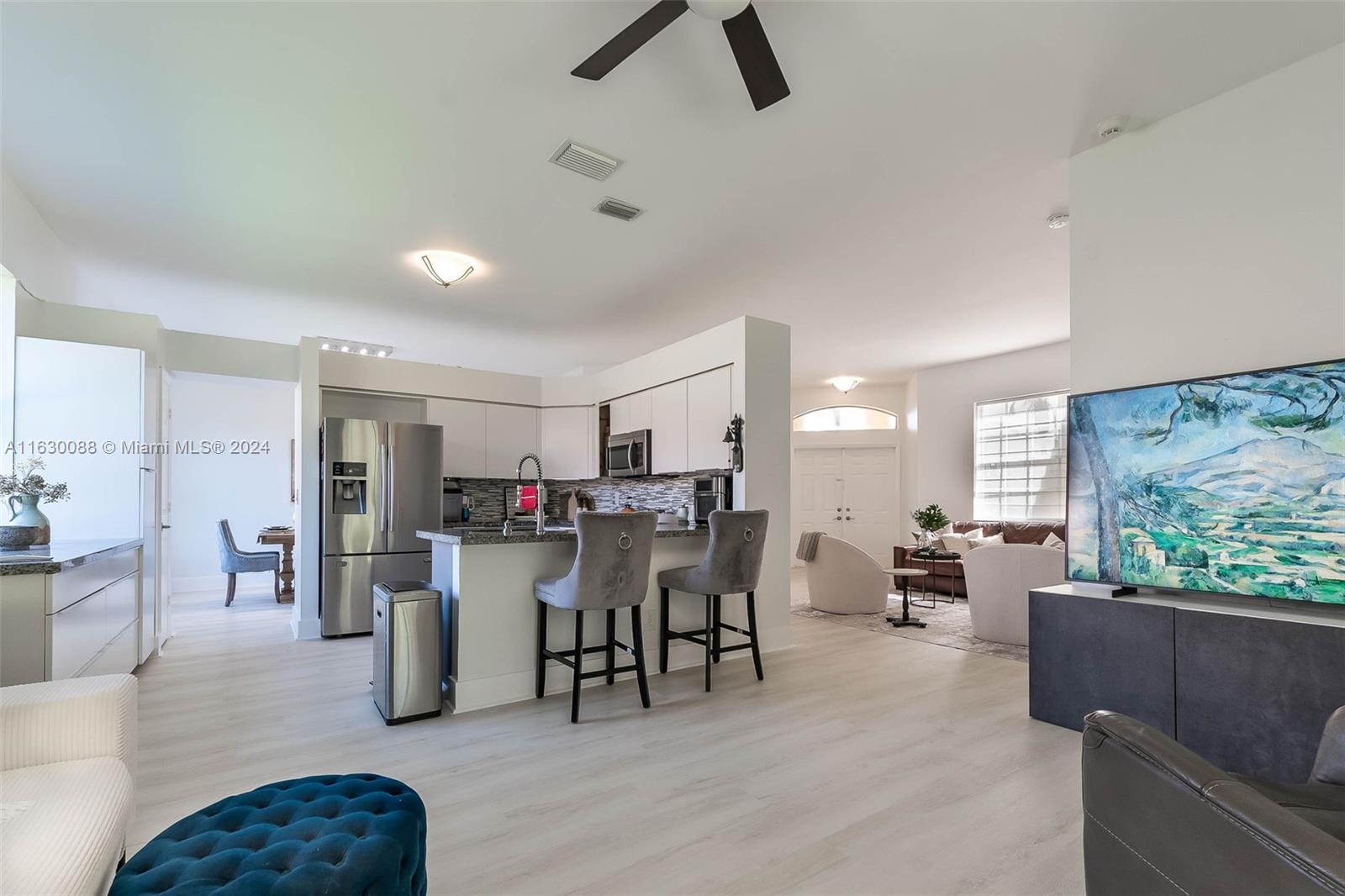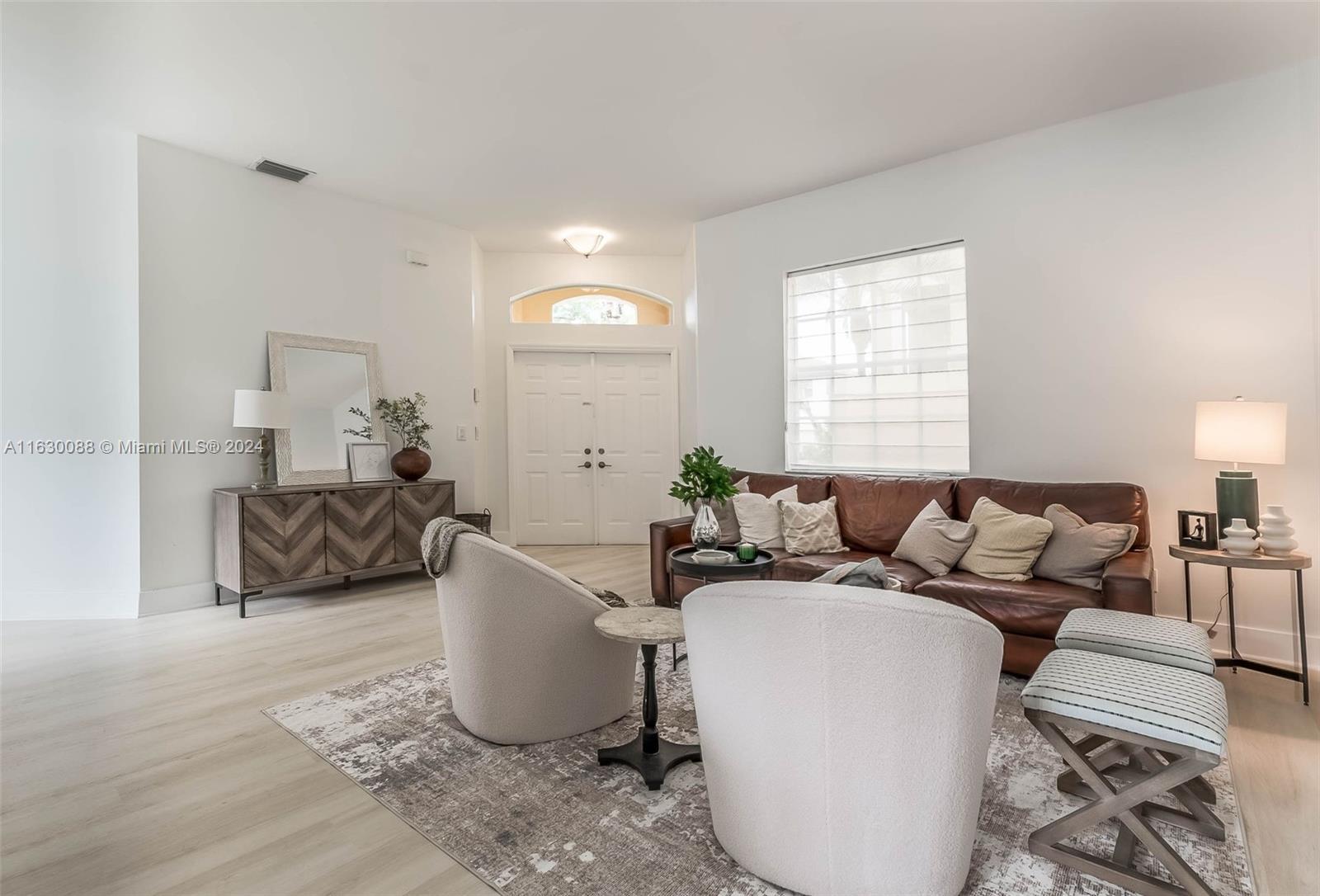 Beautiful one-story home sitting on a private, cul-de-sac street. ROOF 2024 to be completed prior to closing. Open floor plan offers family and formal living area, open to the kitchen. Modern and updated Granite & Stainless-Steel kitchen w/extra counter & pantry space. Bathrooms recently remodeled. New floors throughout, freshly painted, accordion shutters. Oversized lot fully fenced w/large patio. HOA dues include lawn maintenance, security guard and community pool and clubhouse. Price to sell!