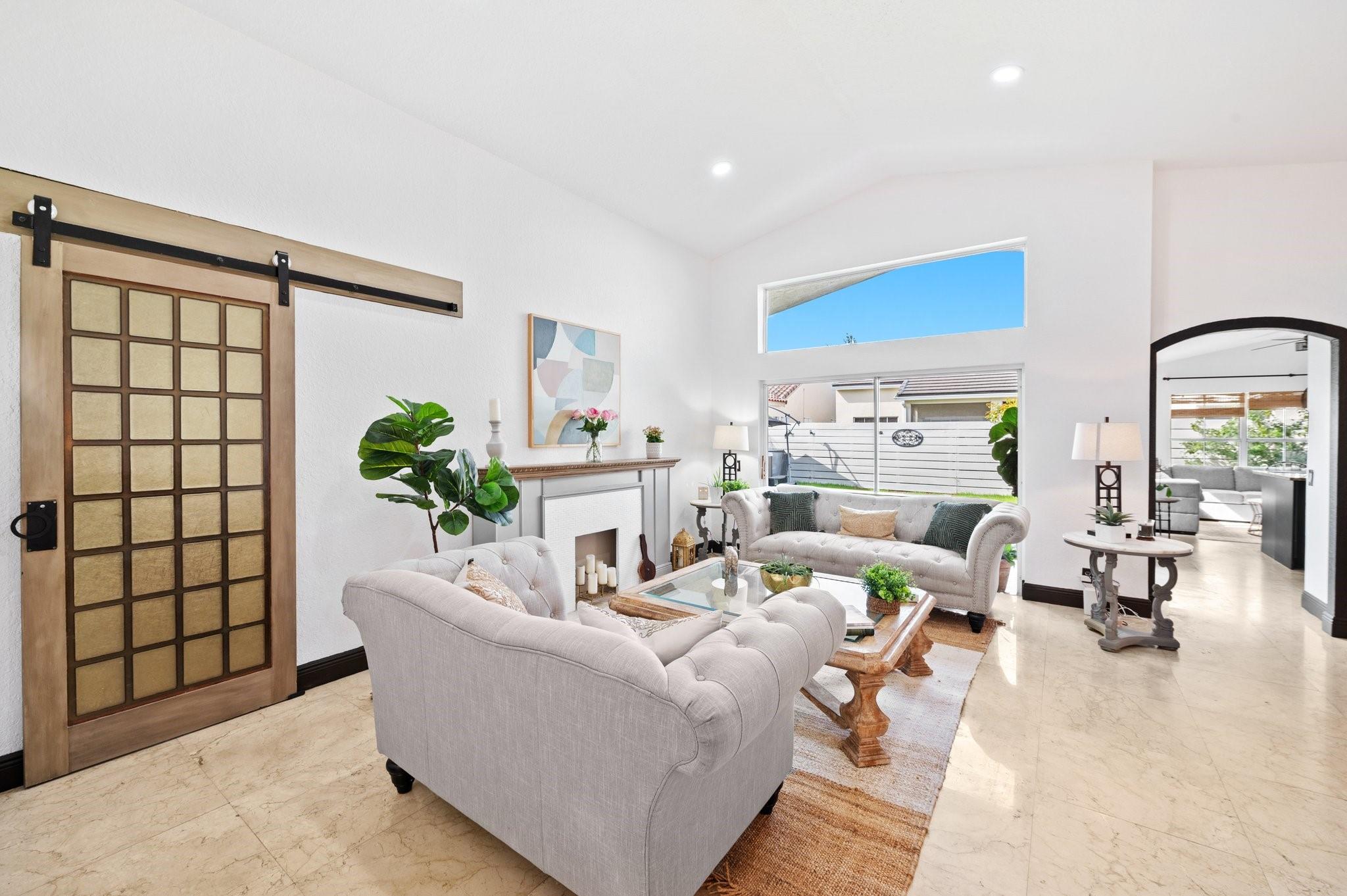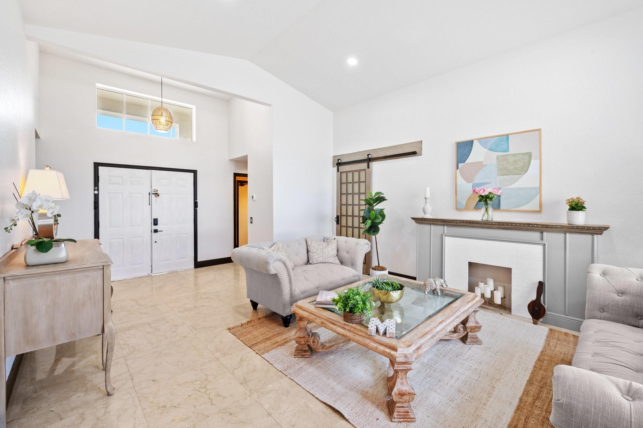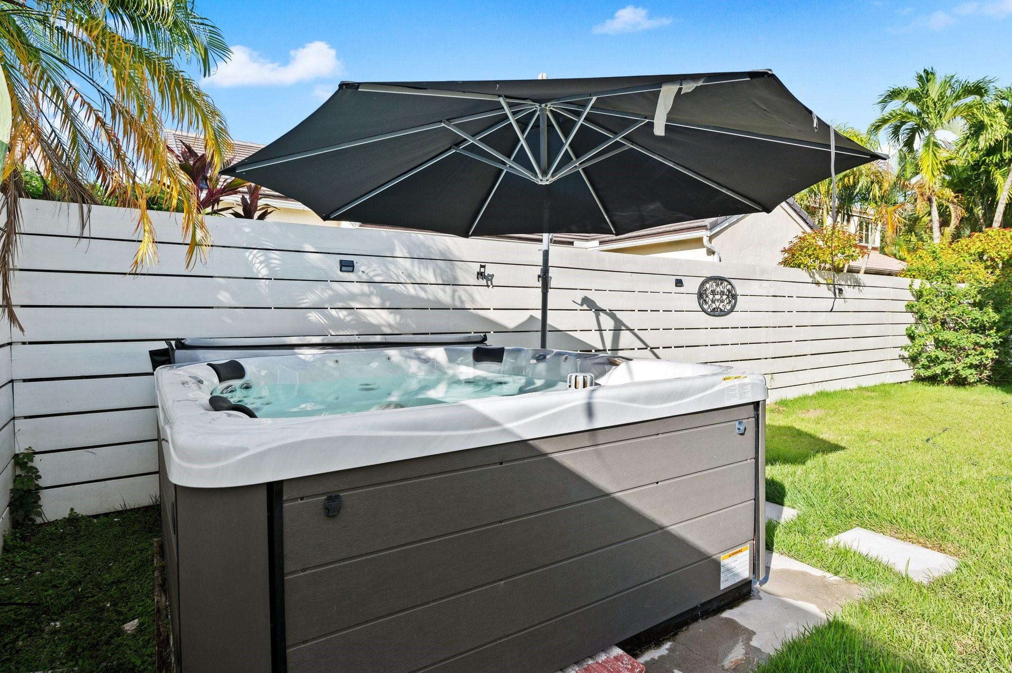 Gorgeous and highly upgraded. This one story split floor plan home boasts gorgeous new beautiful impact glass front doors, an updated open concept kitchen w/ wood cabinet, granite countertop, stainless steel appliances & counter bar that opens to the family rm. Marble floors in living areas, porcelain tile & wood laminate in bdrms. Formal dining rm & spacious light & bright liv. areas w/glass doors to private backyard w/privacy fence, covered patio w/ jacuzzi spa. Beautiful remodeled baths, primary suite w/ soaking tub, large spa style shower & dual vanities. Wardrobe style closets, high ceilings w/ lots of light, front loading washer & dryer & laundry sink. Laundry rm currently a private office. Covered patio w/ tile floor. Freshly painted exterior. Community amenities & A-schools!