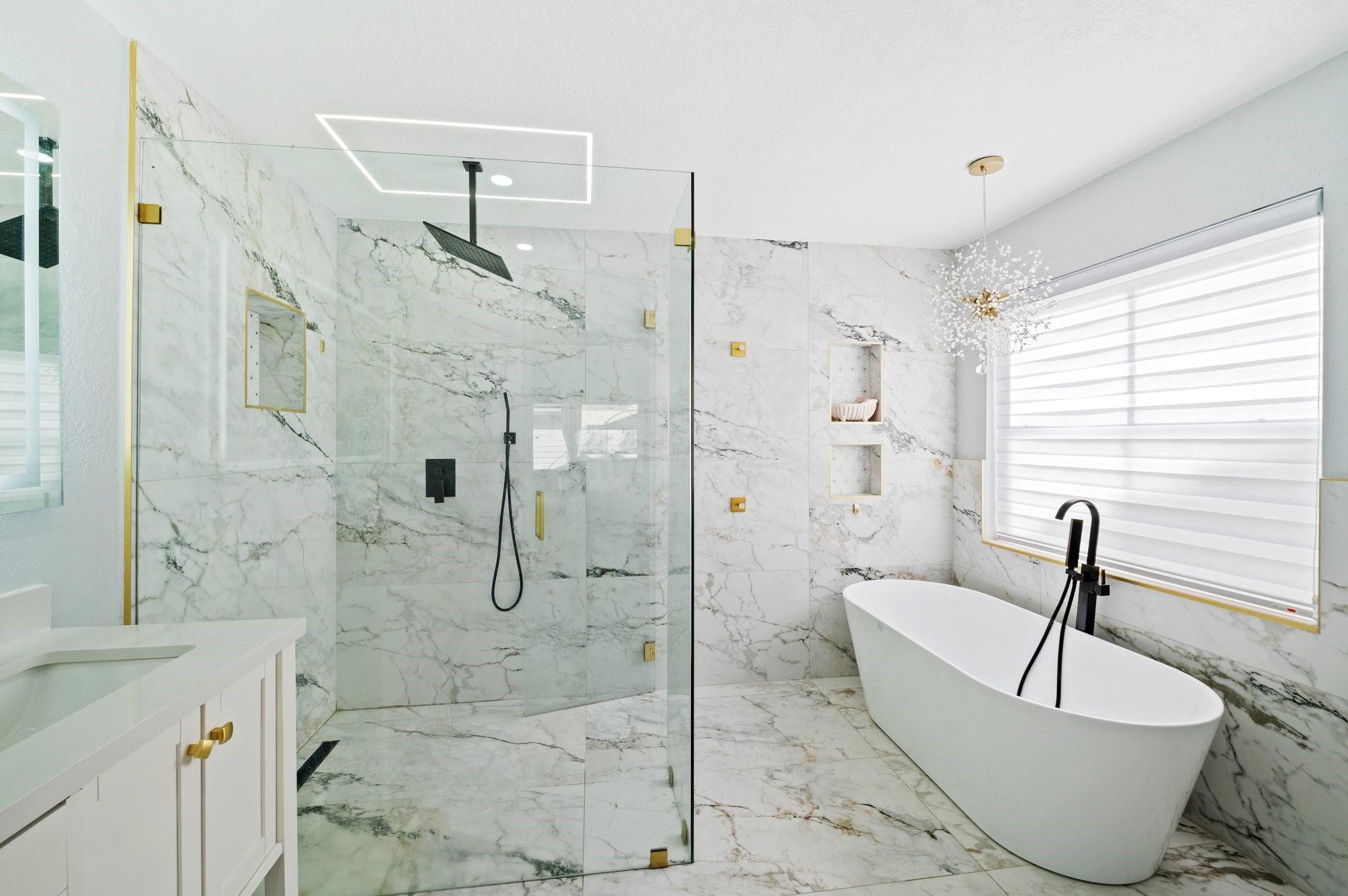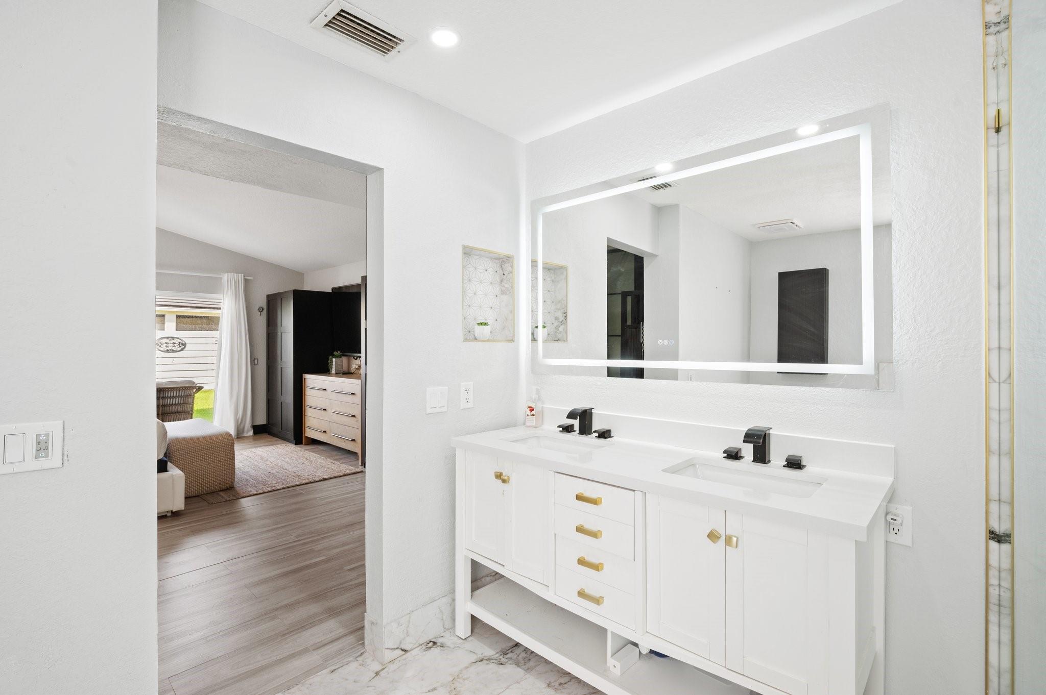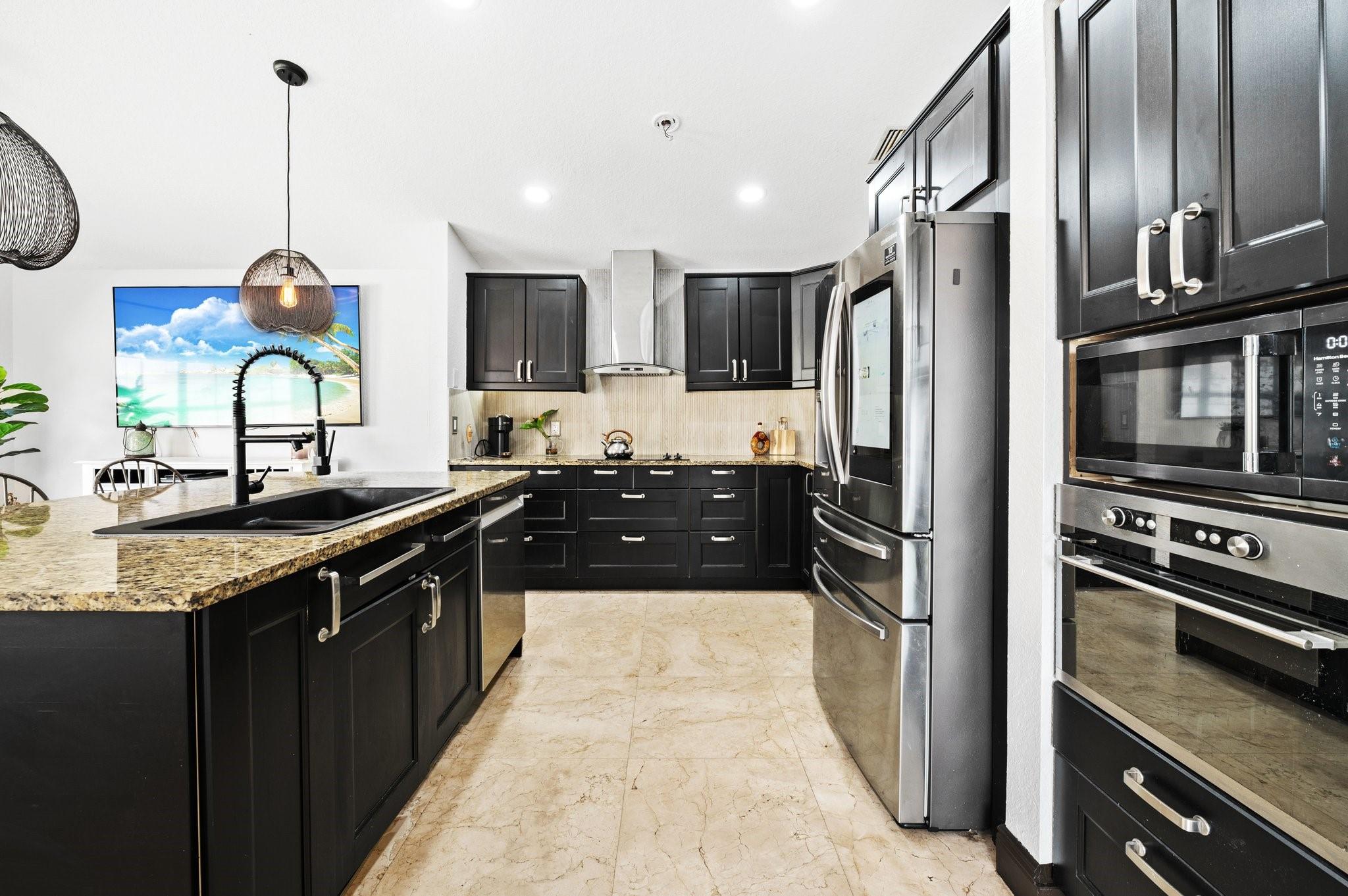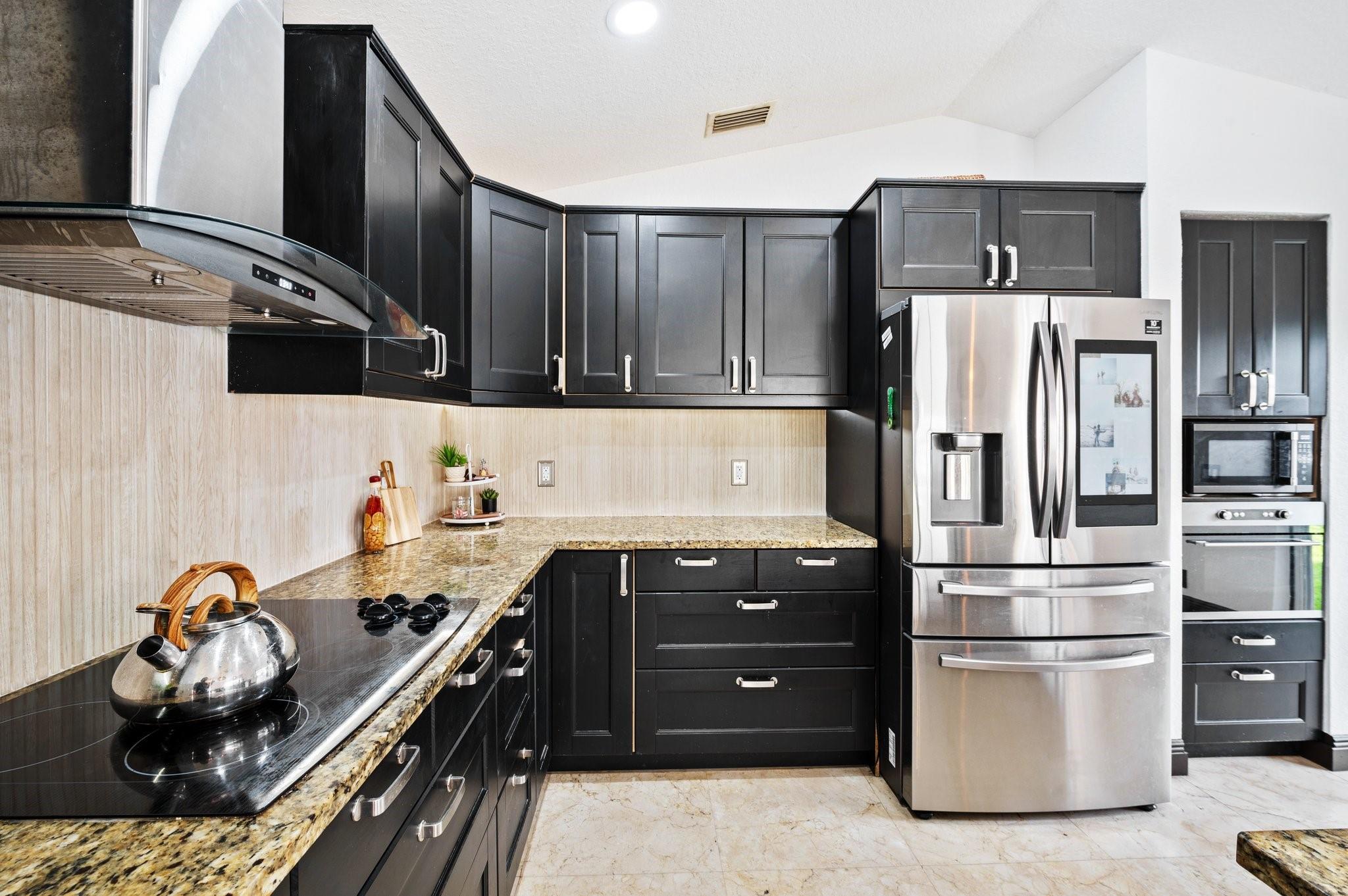 Gorgeous and highly upgraded. This one story split floor plan home boasts gorgeous new beautiful impact glass front doors, an updated open concept kitchen w/ wood cabinet, granite countertop, stainless steel appliances & counter bar that opens to the family rm. Marble floors in living areas, porcelain tile & wood laminate in bdrms. Formal dining rm & spacious light & bright liv. areas w/glass doors to private backyard w/privacy fence, covered patio w/ jacuzzi spa. Beautiful remodeled baths, primary suite w/ soaking tub, large spa style shower & dual vanities. Wardrobe style closets, high ceilings w/ lots of light, front loading washer & dryer & laundry sink. Laundry rm currently a private office. Covered patio w/ tile floor. Freshly painted exterior. Community amenities & A-schools!