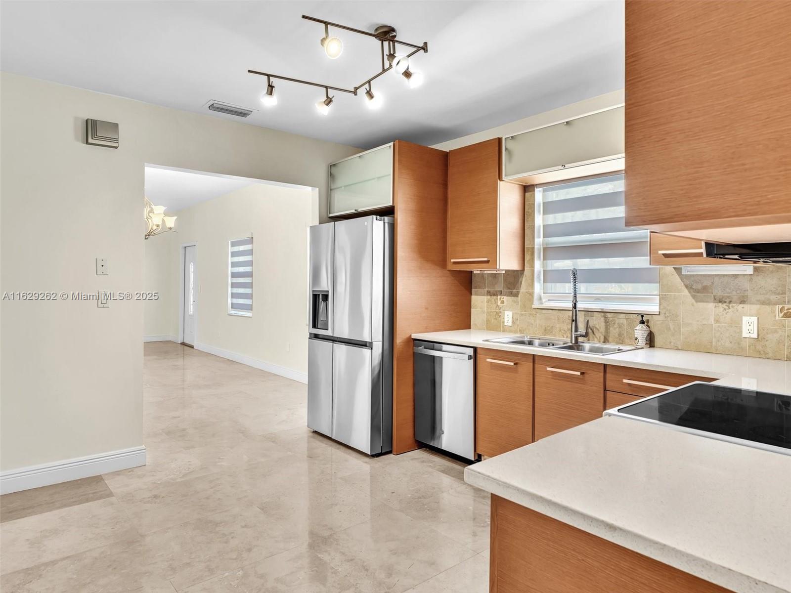 Enjoy luxury living in the gated keystone on this oversized 10,881 sqft lot property. This unique 3-bedroom, 2-bathroom has one of the largest open layout interior with travertine marble floors in the area. With a newly updated kitchen equipped with the latest appliances, and renovated bathrooms. Features hurricane-impact windows and a new roof. Includes a sizable garage and an enormous backyard and side yard; spacious enough to fit an RV or new pool, surrounded with fruit trees. 24-hour guard-gated community, located in a calm area but close to restaurants, shopping plazas, and just less than 30 minutes from both Miami International and Fort Lauderdale Airports.