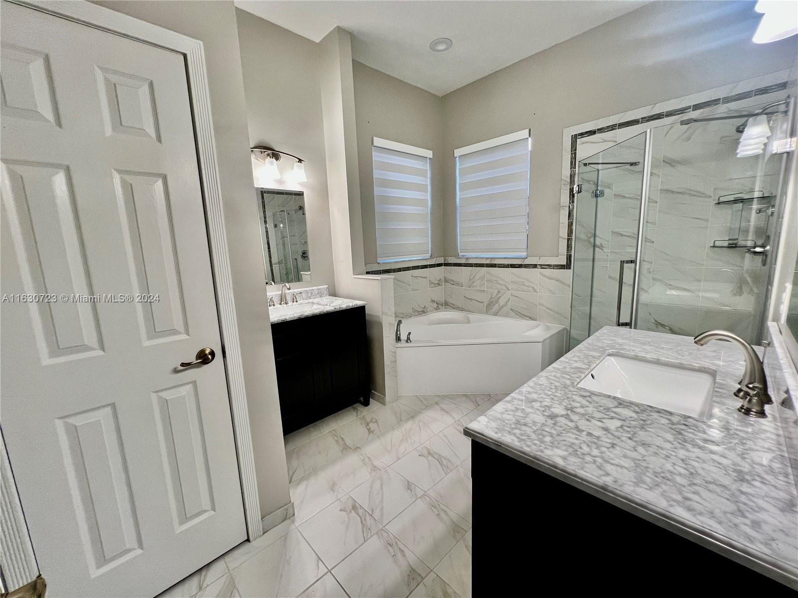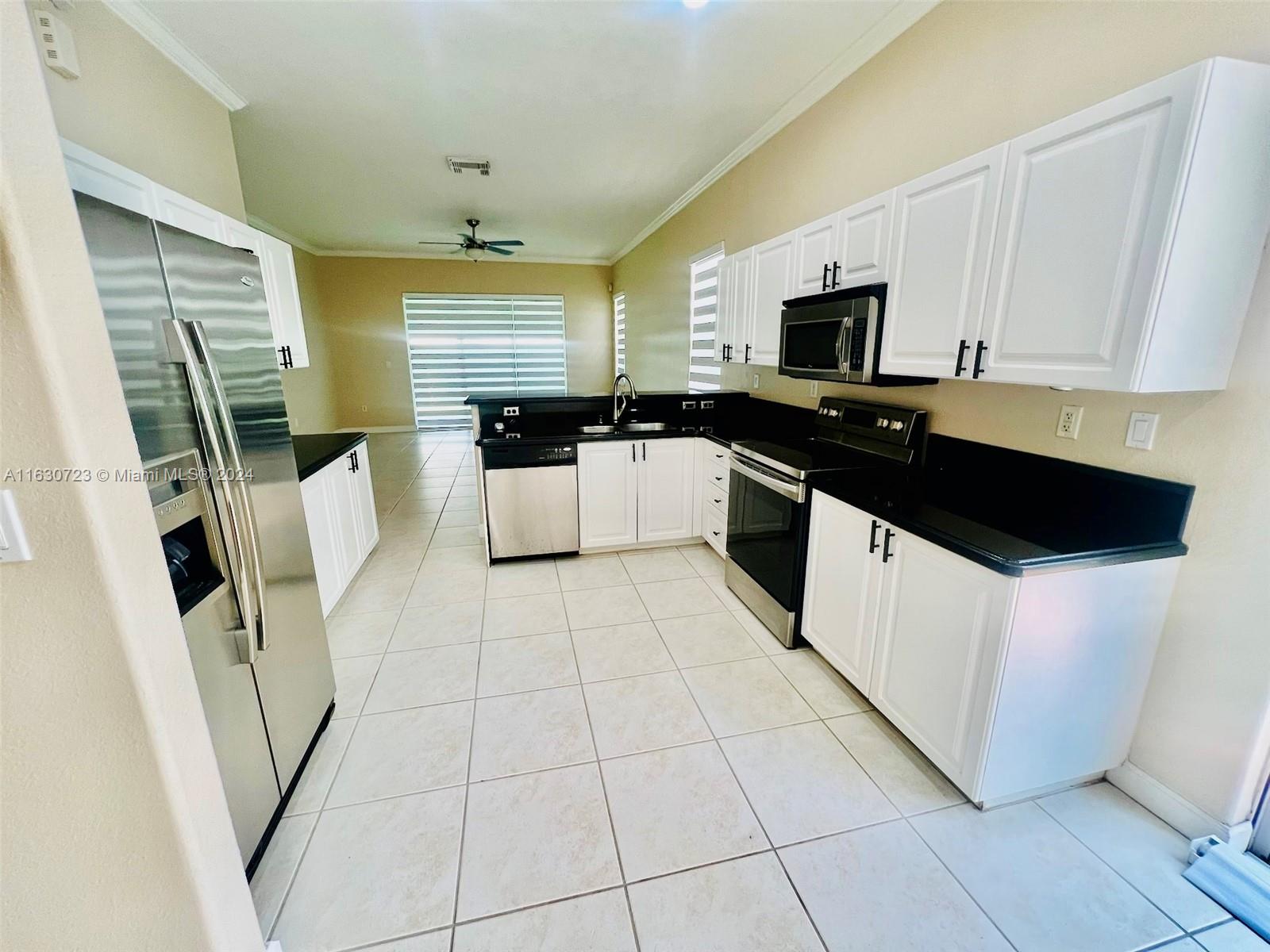 Spacious home in Vizcaya Gated Community, 4 bedroom, 2 bath, with a 2 car garage, over 2100 sq. ft. of living space ,enjoy the bright and airy open floor plan, perfect for both relaxation and entertaining. The large living room flows seamlessly into the dining area and kitchen, creating a welcoming atmosphere for gatherings, with plenty of updates as crown molding throughout, vaulted ceilings, new zebra blinds, spacious master bedroom, master bath features roman tub and shower, remodeled kitchen with granite counter top, covered terrace, and spacious backyard, close to everything, low HOA fee.