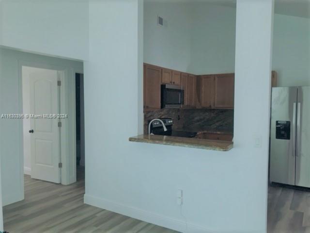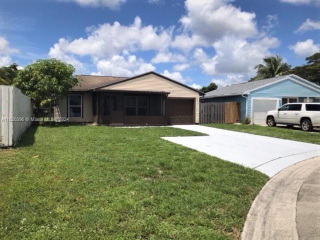 This charming home is located in a family-oriented neighborhood. The home features vaulted ceilings, laminate floors, and hurricane impact windows and doors! Both bathrooms have been remodeled in a modern and elegant style. The eat-in kitchen has wood cabinets and granite countertop. Slat-walled garage to maximize storage capacity and organization. The front screened patio offers privacy, and the fenced yard with patio and landscaping area is perfect for family cookouts. There is plenty of parking space in the driveway, plus a parking island for visitors. NEW ROOF & HURRICANE-IMPACT GARAGE DOOR. Seller concessions are negotiable.