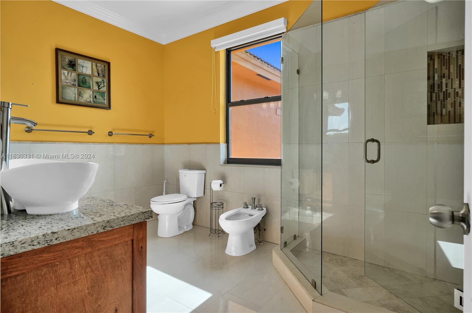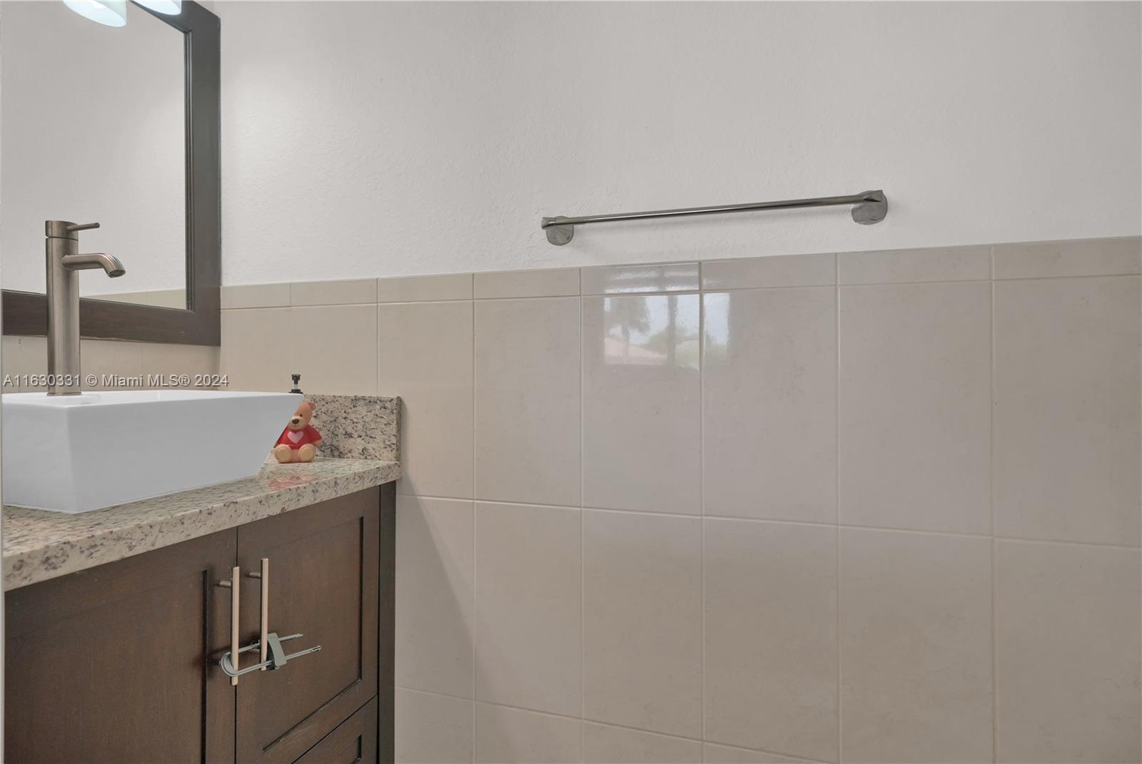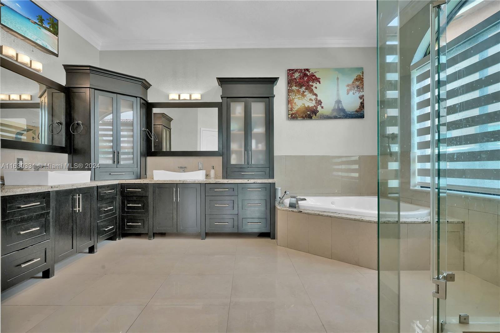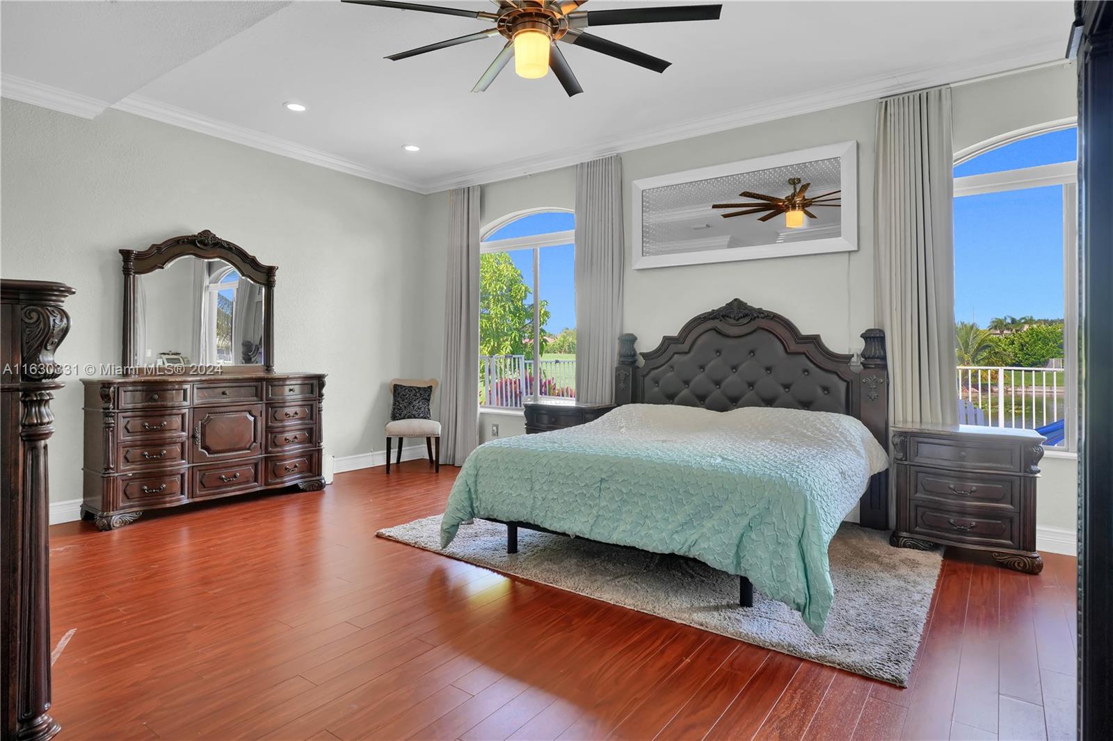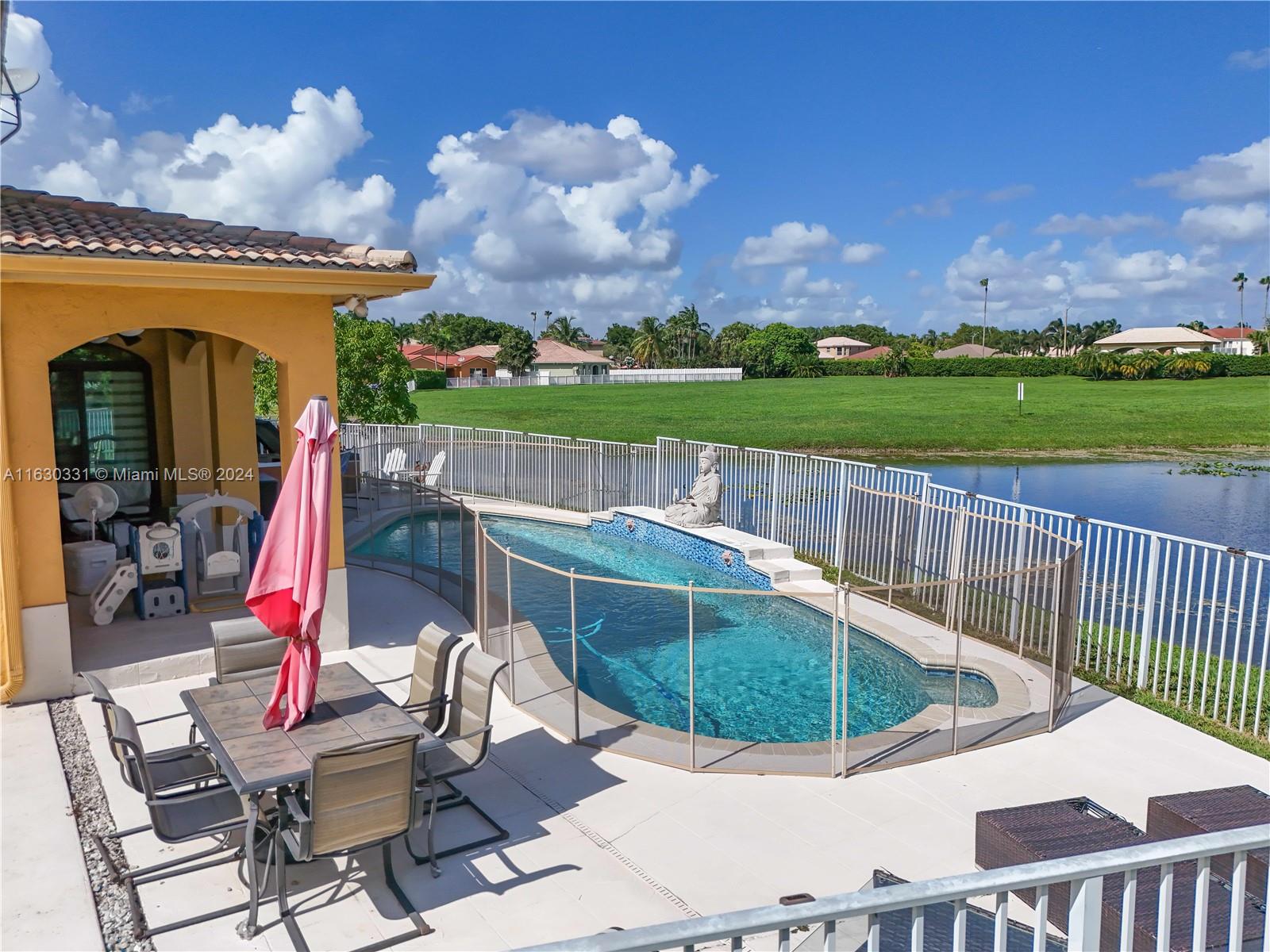 Discover the perfect Family haven in this Stunning two-story Lakefront Home nestled in the prestigious Estates of Tequesta Cove. This Home boasts 5 bedrooms and 3.5 baths, plus a 3 Car Garage. Home offers the Primary Suite conveniently located on the first floor. The Primary Bath features his/her sinks, tub and shower with spacious walk-in closets with custom cabinets. All Bathrooms have been tastefully updated. The Kitchen, showcases beautiful real wood cabinets and modern updates. Upstairs, you will find four additional Bedrooms, each equipped with good sized closets. This home also includes a three-car garage. Enjoy incredible Lake views from the expansive 40x12 Pool with waterfall and an extended deck area perfect for entertaining. New Impact Doors and Windows for maximum protection.