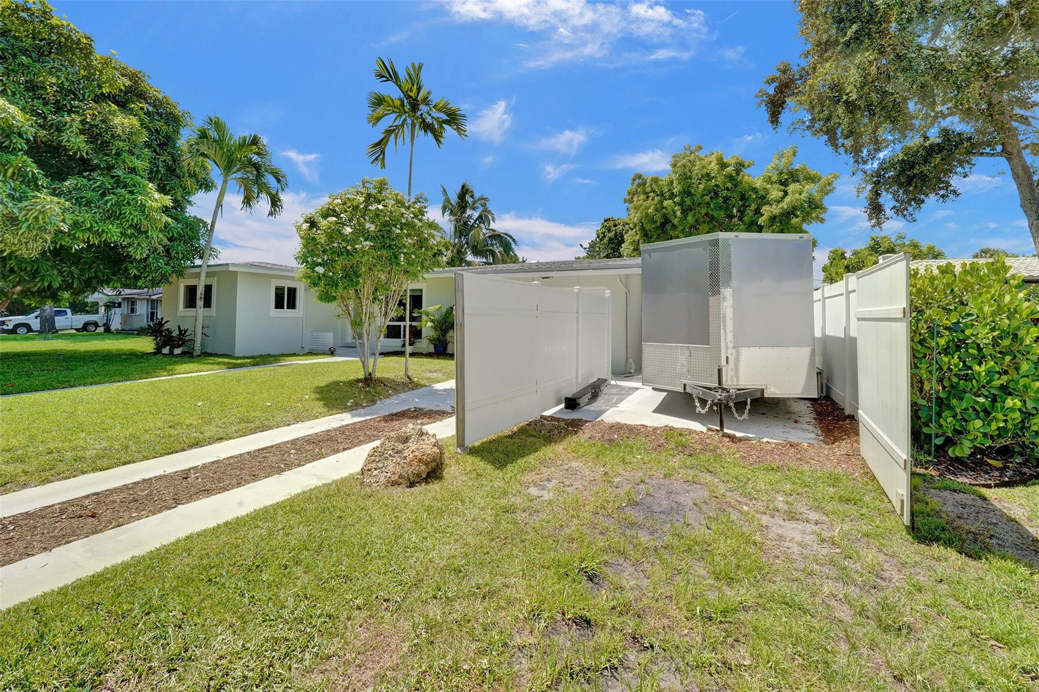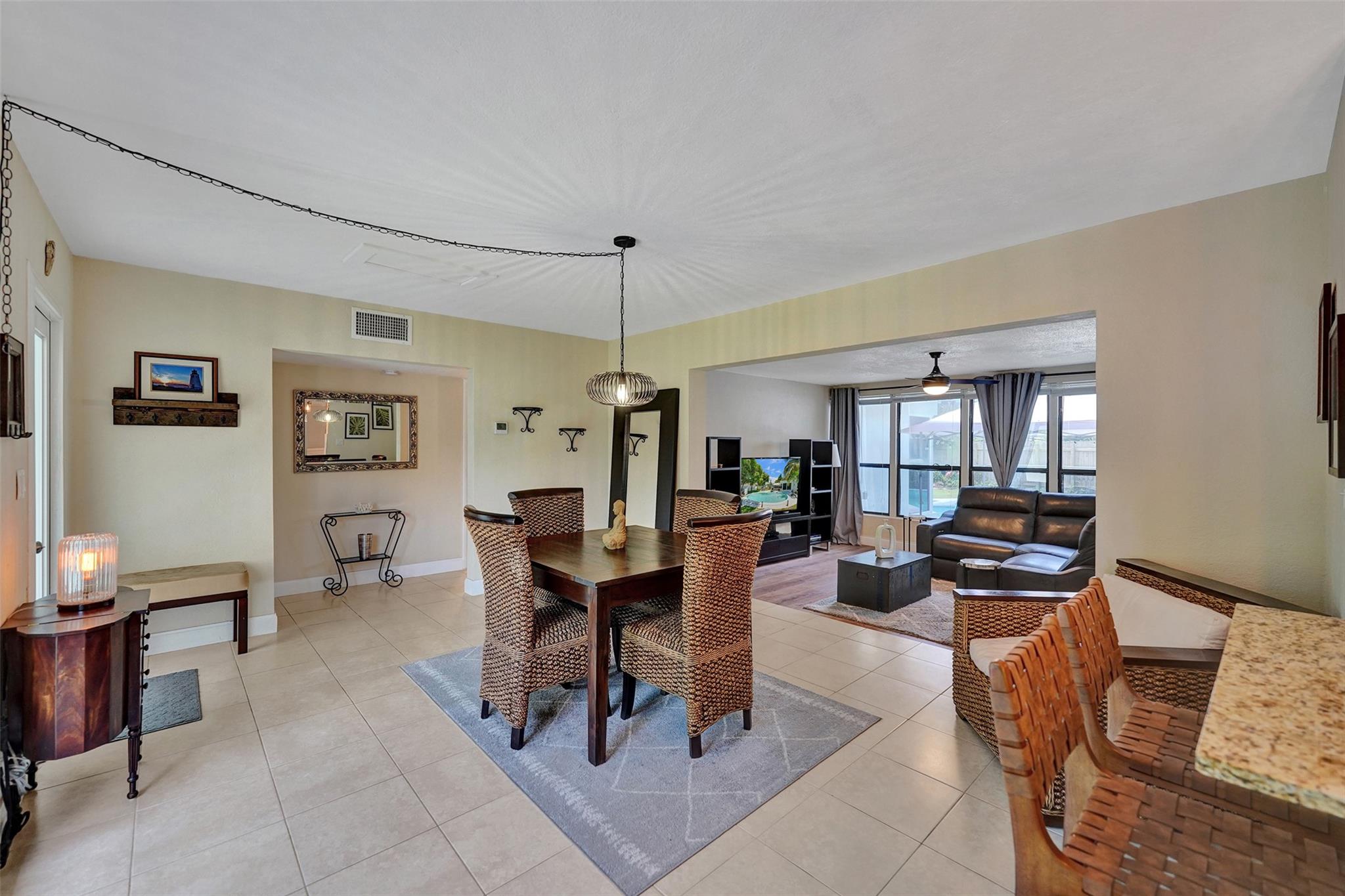 Welcome to this beautiful home located on a desirable corner lot. This inviting residence features three bedrooms and two full bathrooms. Step out of the master bedroom into your own private oasis, were a sparkling pool awaits you in the expansive backyard-ideal for relaxation, entertaining, or sitting around the fire pit. The large kitchen is a chef's dream, complete with modern appliances and plenty of counter space, while the adjoining dining room and living room over look the sparkling pool. The property also boasts a one car garage, laundry room, and a convenient side gate perfect for storing a boat or trailer. ROOF 2022 , Brand new AC , Impact windows throughout the home except the living room-shutters provided.