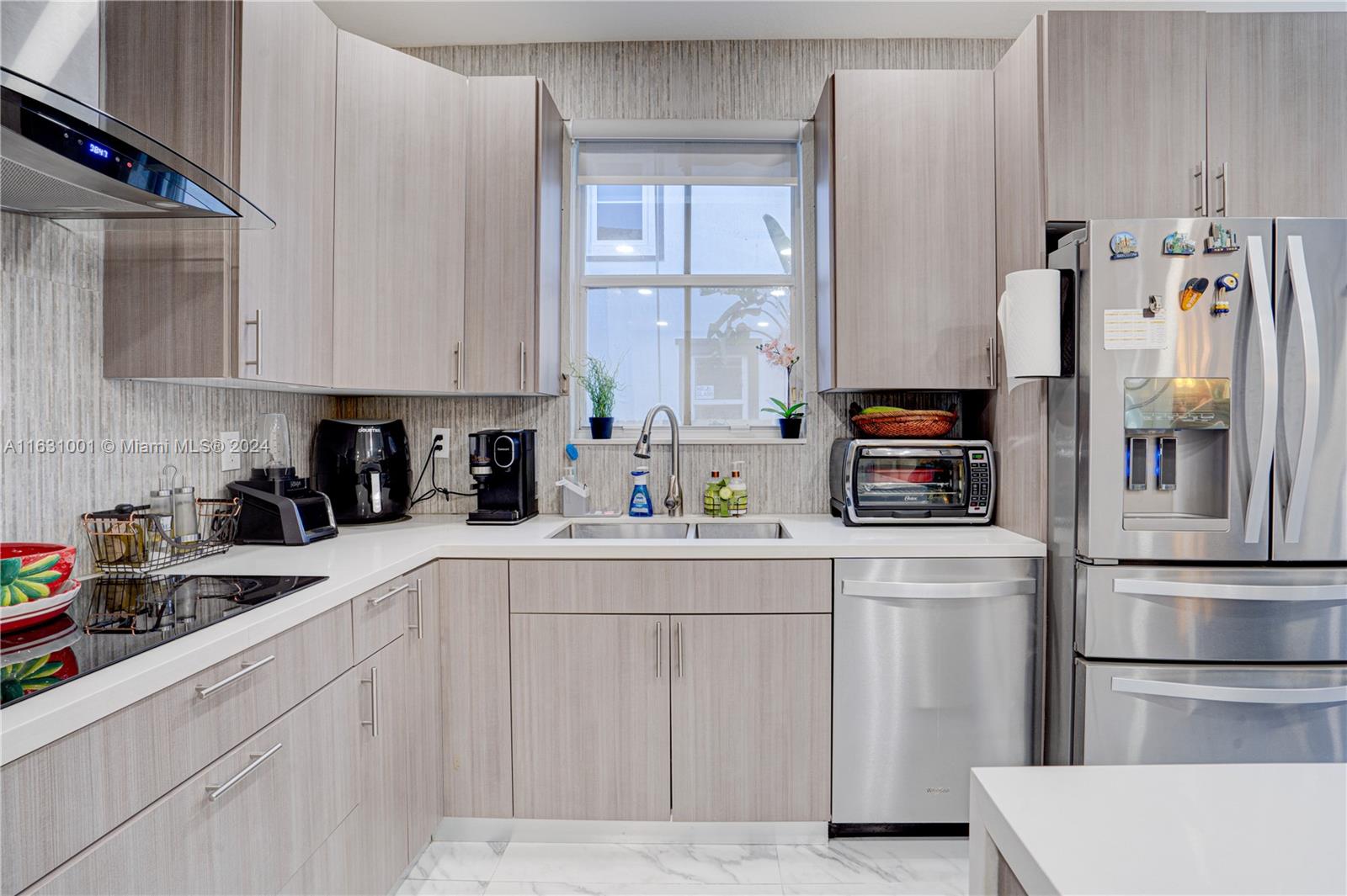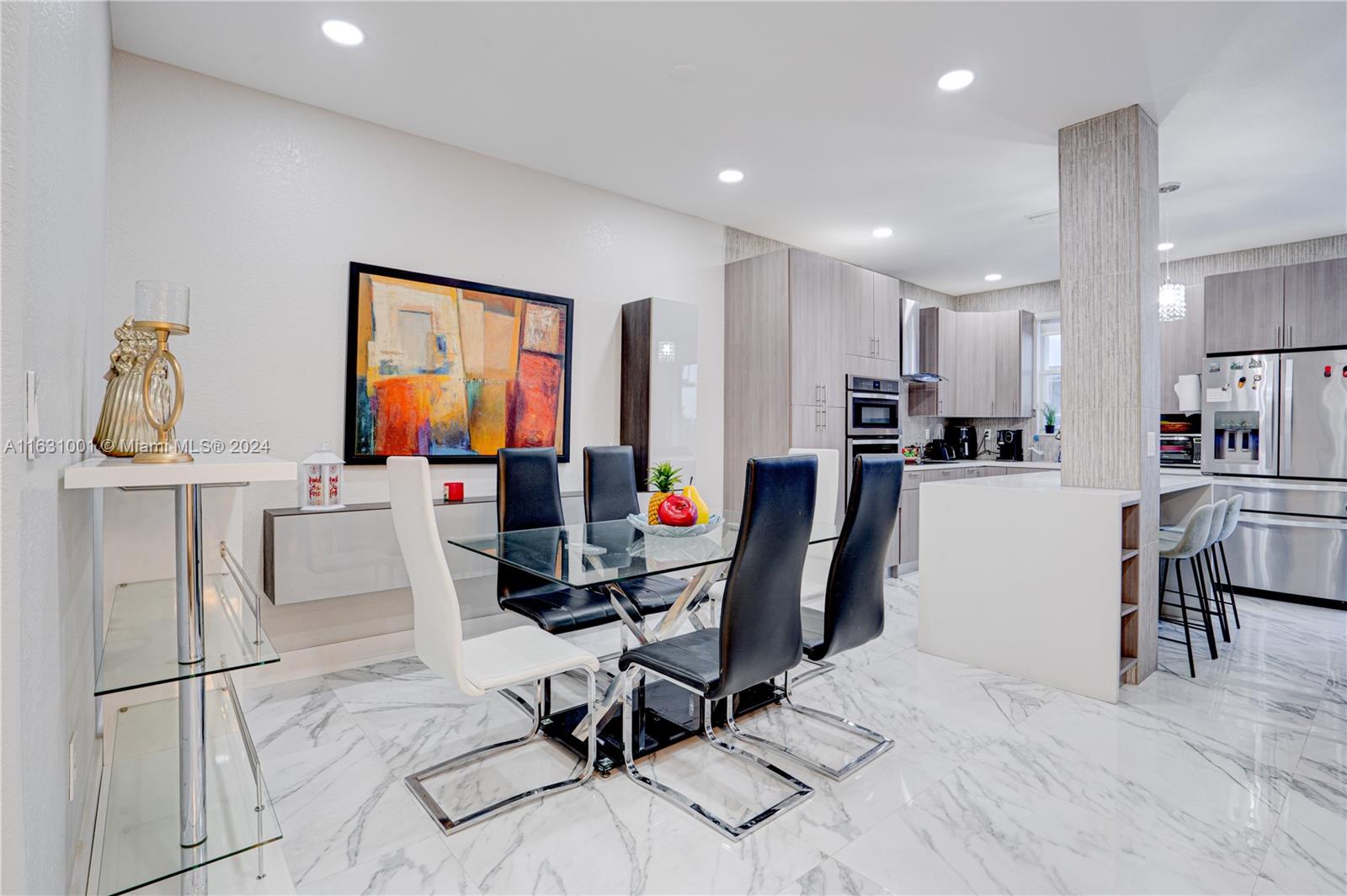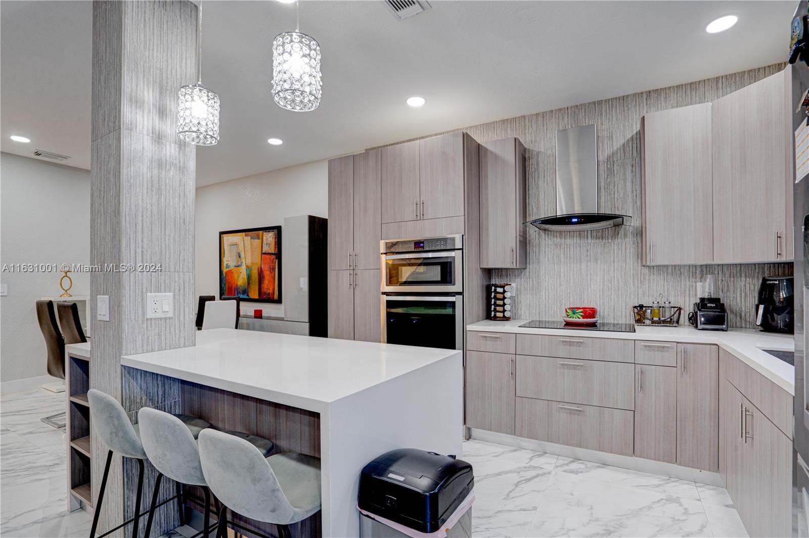 Stunningly remodeled and upgraded townhouse in the heart of centrally located Doral! This home boasts a professionally designed open-concept living, dining, family, and kitchen area, all enhanced by exquisite Calacatta marble tiles. A glass staircase leads to three spacious bedrooms. The property includes a one-car garage, two driveway spaces, and additional guest parking. Features include a newly installed AC unit, Whirlpool appliances, accordion shutters, and numerous other high-end upgrades and details. Enjoy the community pool or the Island of Doral complex. This is a must-see property! Act fast and bring your best offers – this unique home won't be on the market for long!