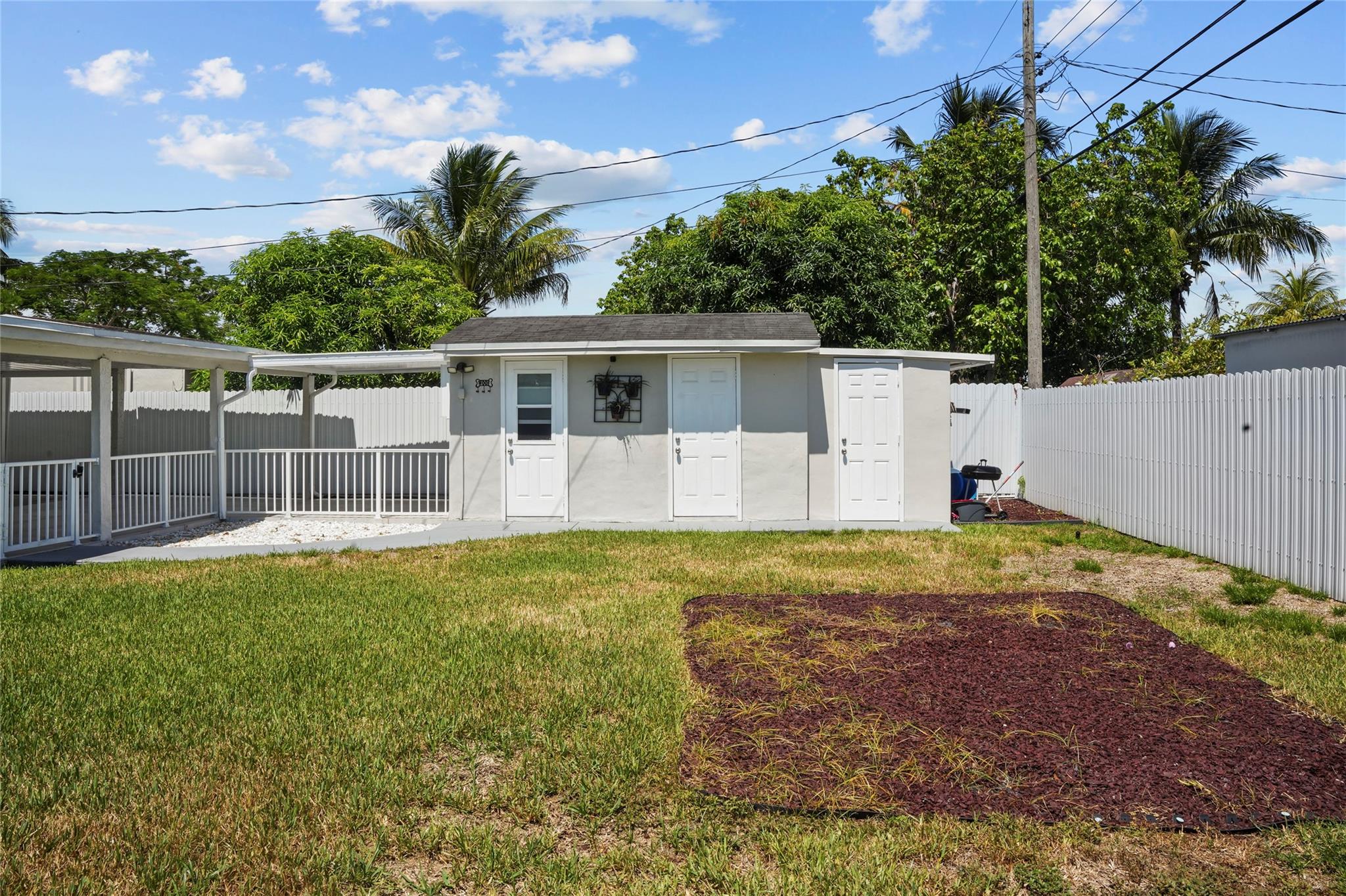 Welcome to this stunning, completely remodeled home in the heart of Miramar. This exquisite property boasts top-of-the-line finishes and meticulous attention to detail throughout. Property offers a 3-ton 2023 high efficiency AC with 10 year warranty, Remodeled kitchen in 2022 which includes microbial cabinets, recessed lighting and external venting hood. Vinyl floors were installed in 2022 (water resistant). Roof is from 2013. Hurricane shutters throughout the property and windows are only 5 years old. Working sprinkler system, 2023 sewer lines, new insulation installed in 2023 and terrace is also insulated! Property includes a 30-amp connection for your RV. This will not last! The backyard oasis is perfect for relaxing or hosting gatherings.