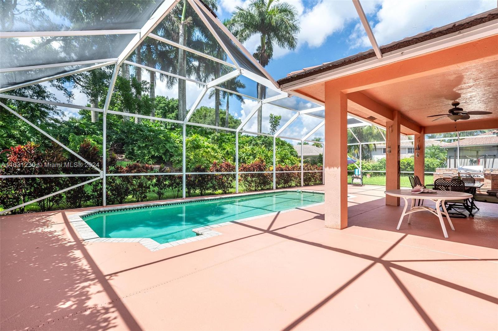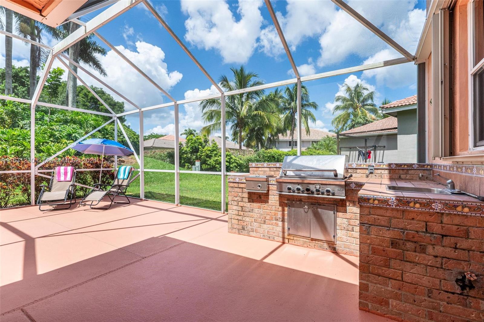 HUGE home in sought after Heron Ridge in "The Ridges". With almost 4000 sf of living area this is hard to find in Weston at this price. Featuring 5 bedroom PLUS fabulous primary suite with sitting area AND size-able private space that can be used for nursery, office or gym. Perfect layout with bedroom and full bath downstairs...great for multi generational living. Kitchen has wood cabinets and granite with added counter space. All living areas are BIG. Plenty of room for everyone! Very private lot with berm and trees (no neighbors in back) Sparkling screened pool and patio for entertaining. Gated community has pool, tennis, play and more. Zoned for excellent Weston schools includes Falcon Cove and Cypress Bay. Terrific location with easy access to Weston Road, shops and restaurants.