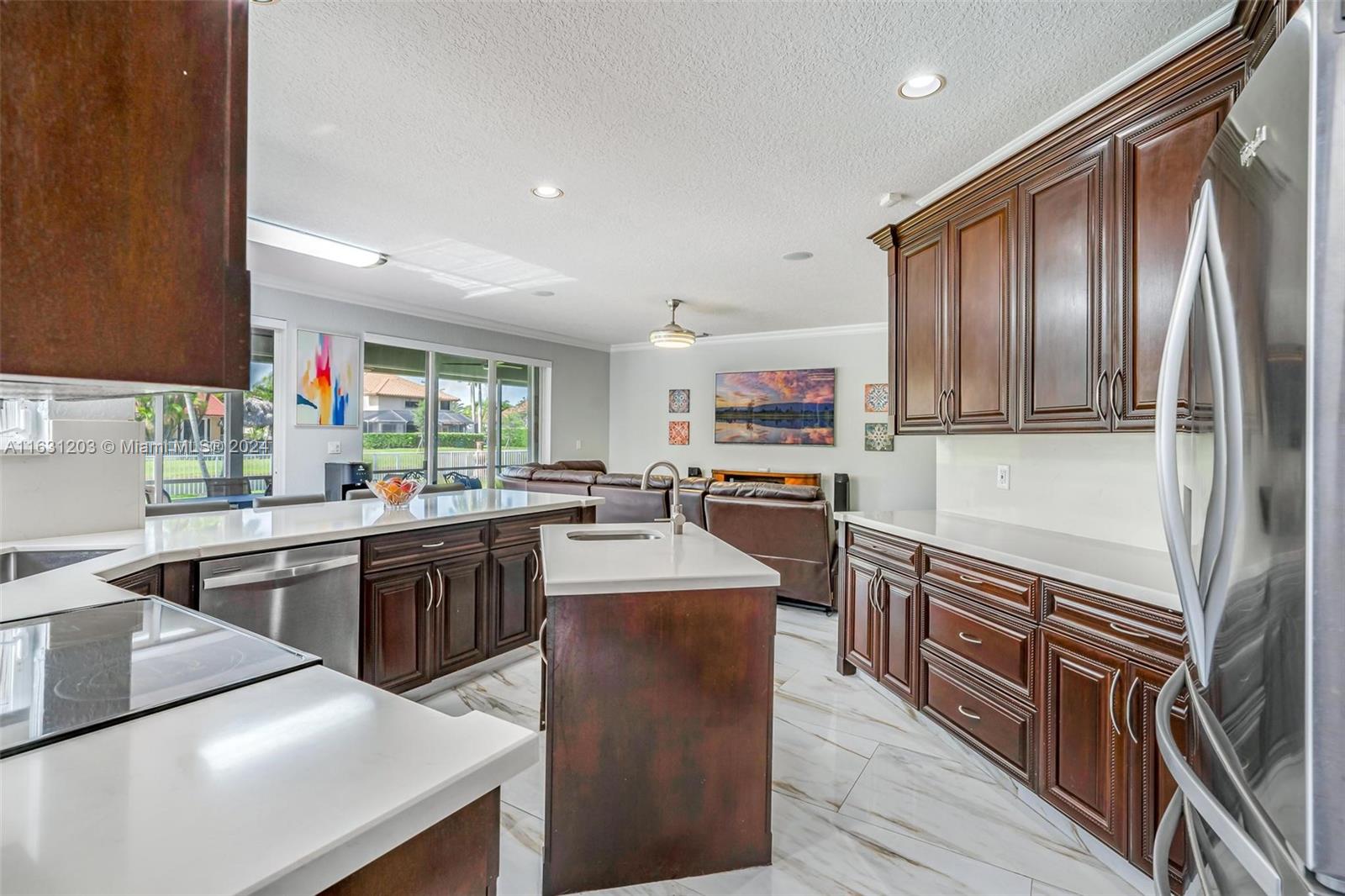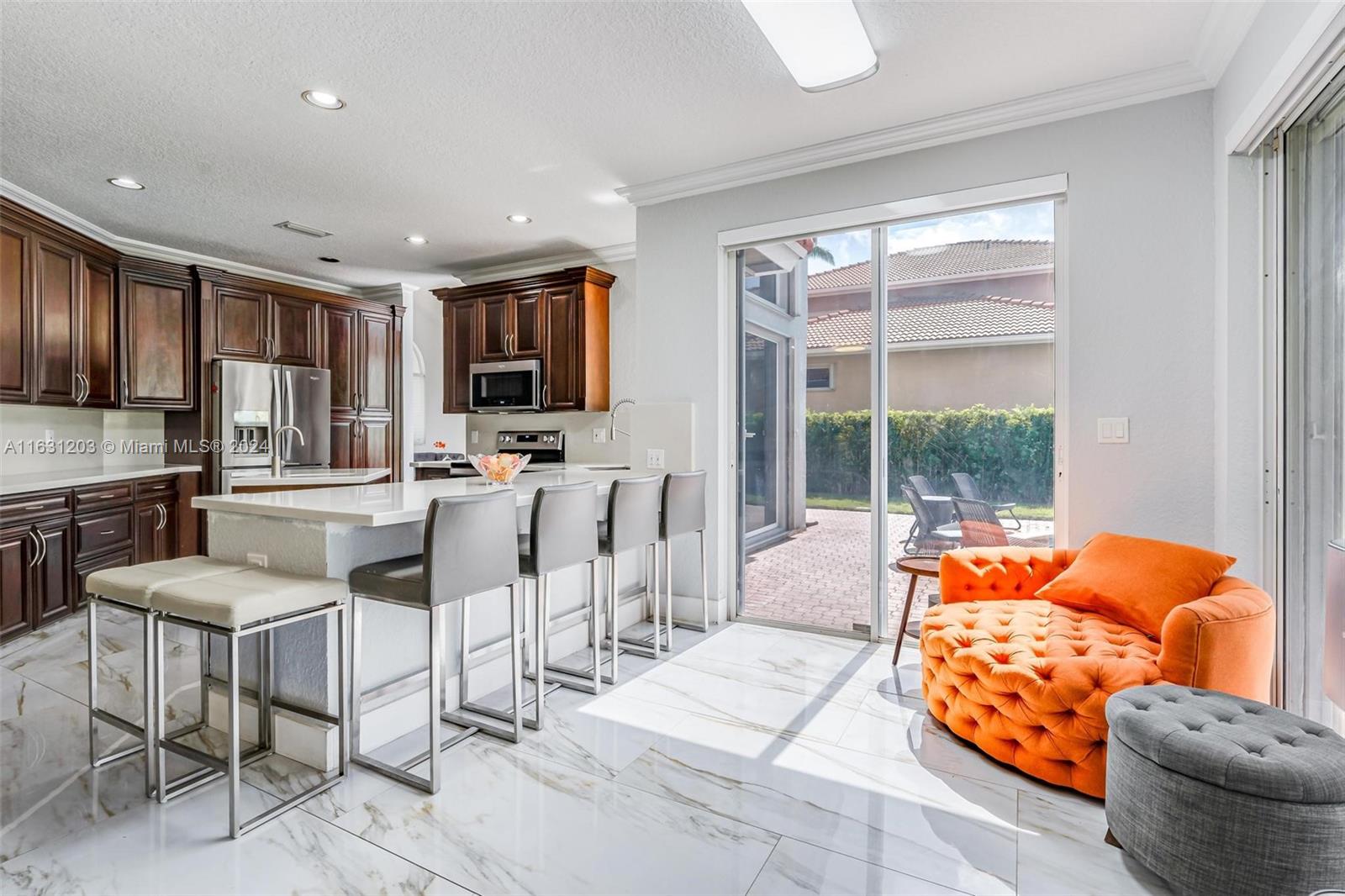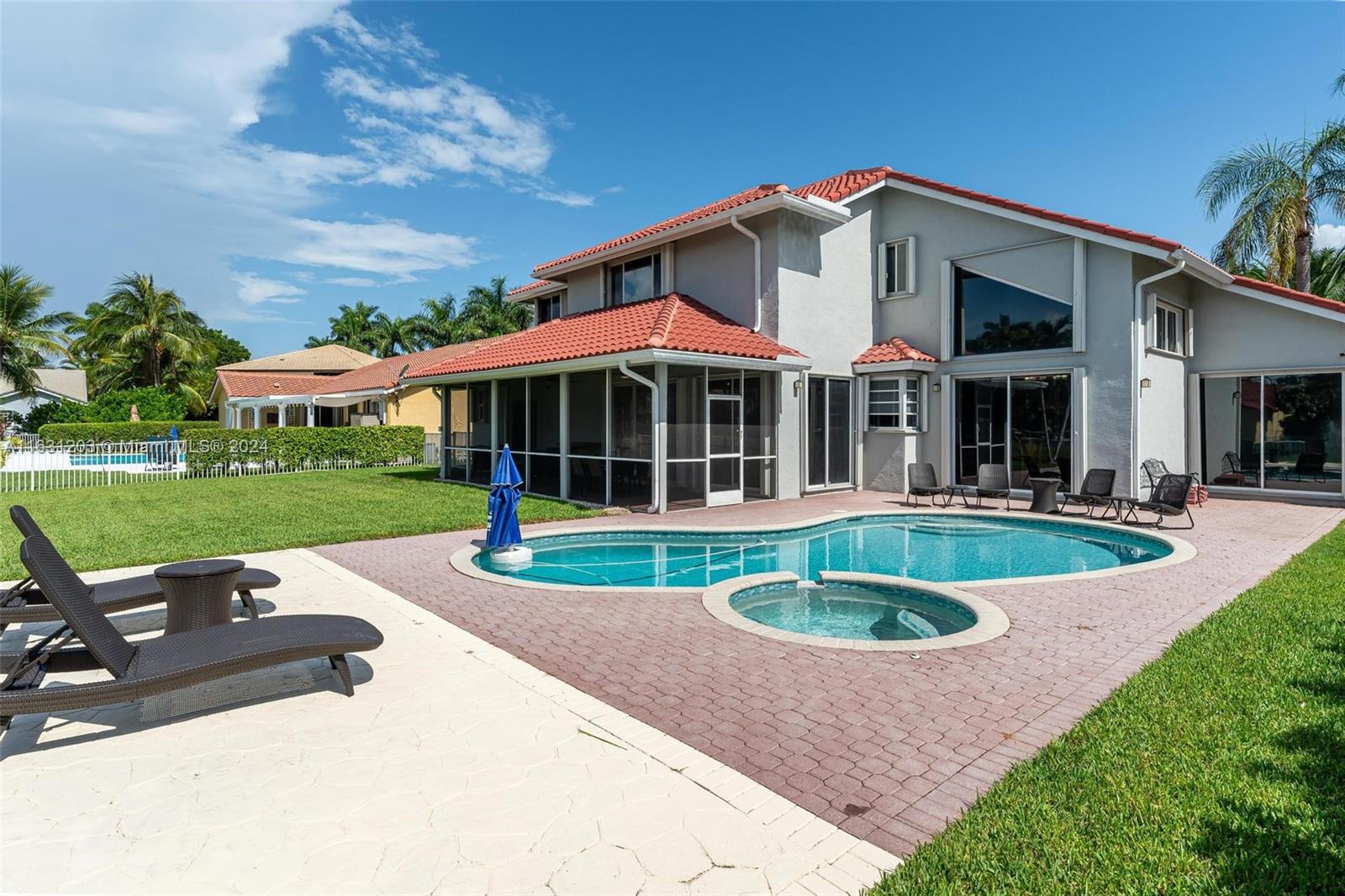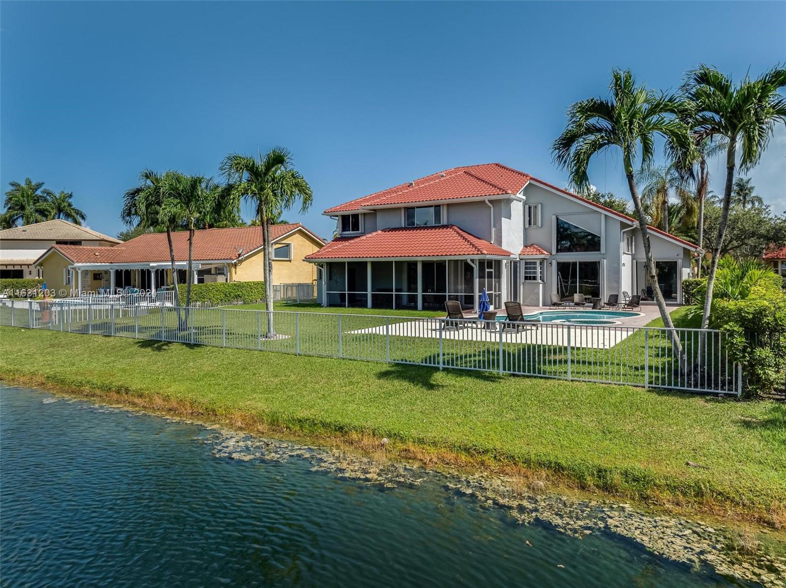 Huge 4/3.5 with bonus room, pool and lake. Nestled in the quaint, gated Sunset Isles section of Silver Lakes with just 39 homes. Fantastic floor plan ~ big rooms & foyer entry. First floor has ensuite bedroom, 1/2 bath & handy laundry room. Primary has dual sinks & separate shower & tub. Upgrades include beautiful porcelain tile downstairs, iron/wood stair railing and wood flooring on 2nd. Bonus room can be used as office or gym. Solid wood kitchen cabinetry with quartz & stainless featuring a cooking island with sink. Step outside to a true Florida paradise. Screened & covered patio leads to big green area, sparkling pool & pretty view of lake & fountain. Insurance discounts with Roof 2021, Accordion shutters & rated garage door. Zoned for terrific schools including West Broward High.