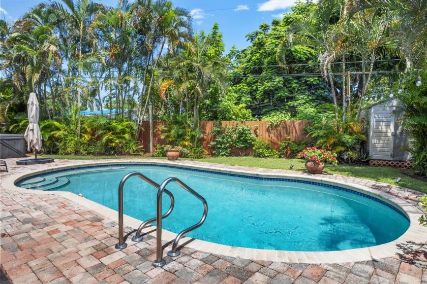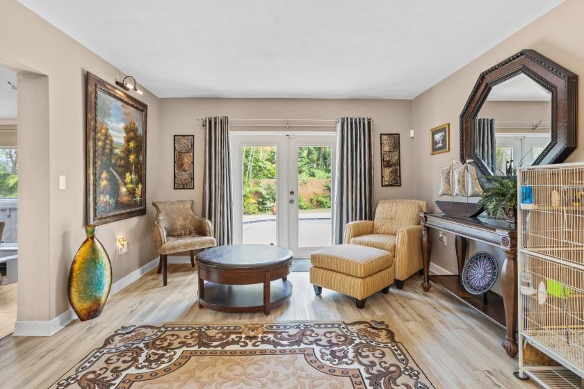 NO HOA ! Come see this single-family home that can become a 4 bedroom easily with Hurricane windows/Doors and a HOT TUB in Plantation set in the quiet back of the neighborhood Enjoy the backyard oasis with pool, hot tub, pavers and lighting new Shed! Inside, the floors are Like new and with a Brand-New water heater. The primary bedroom was extended making an extra-large suite with room for home office or sitting area Or Nursery It could be put back to a Fourth bedroom as well. The AC is 2019, Tented in 2024. All Furniture is negotiable less then 2 years olds