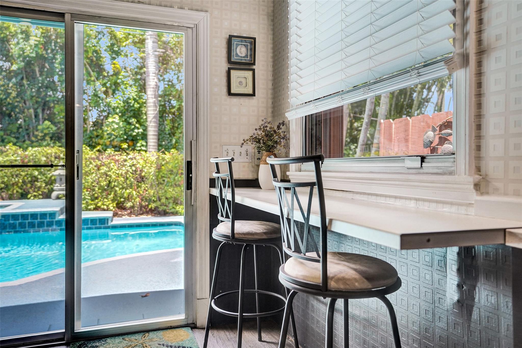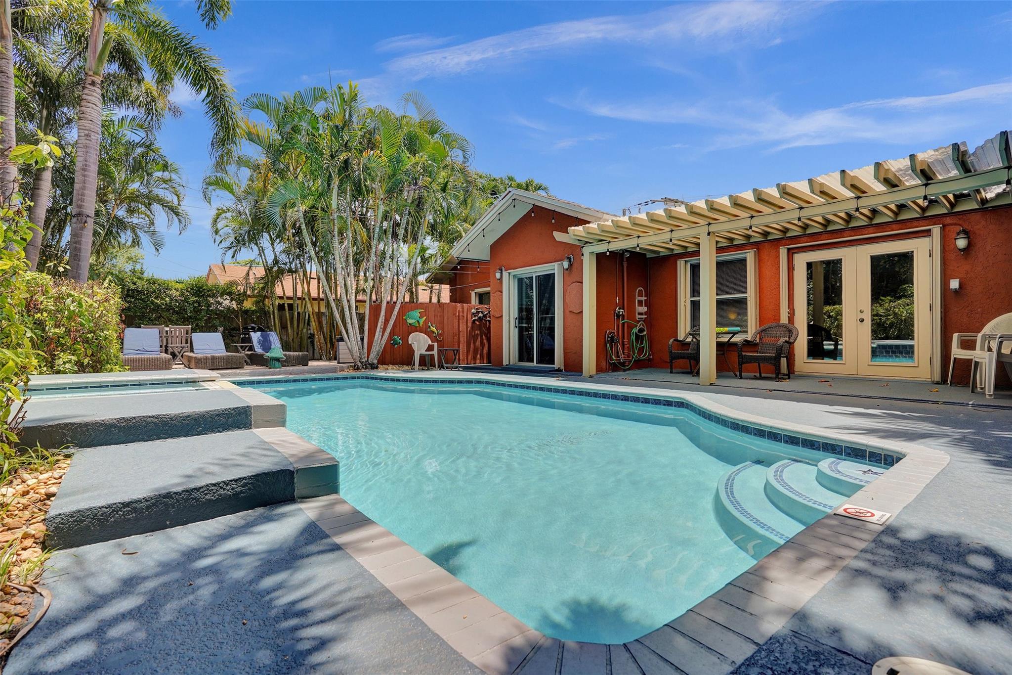 Welcome to this stunning 1935 home, radiating charm and character at every turn. Step inside to discover a harmonious blend of old-world elegance and modern updates, featuring bamboo hardwood floors, and exquisite artistic tile. Split bedroom plan. The remodeled kitchen is completly updated and opens up to a tropical paradise with a salt system heated pool and spa. Spacious outdoor pavered lounging area. You can be assured this backyard is a pristine oasis for relaxation and entertainment. With beautifully renovated bathrooms and a successful history as an Airbnb, this home has been a great retreat for repeat seasonal tenants and Air BnB guests. Make this paradise your personal home or continue offering as an Air BnB. (see additional remarks)
