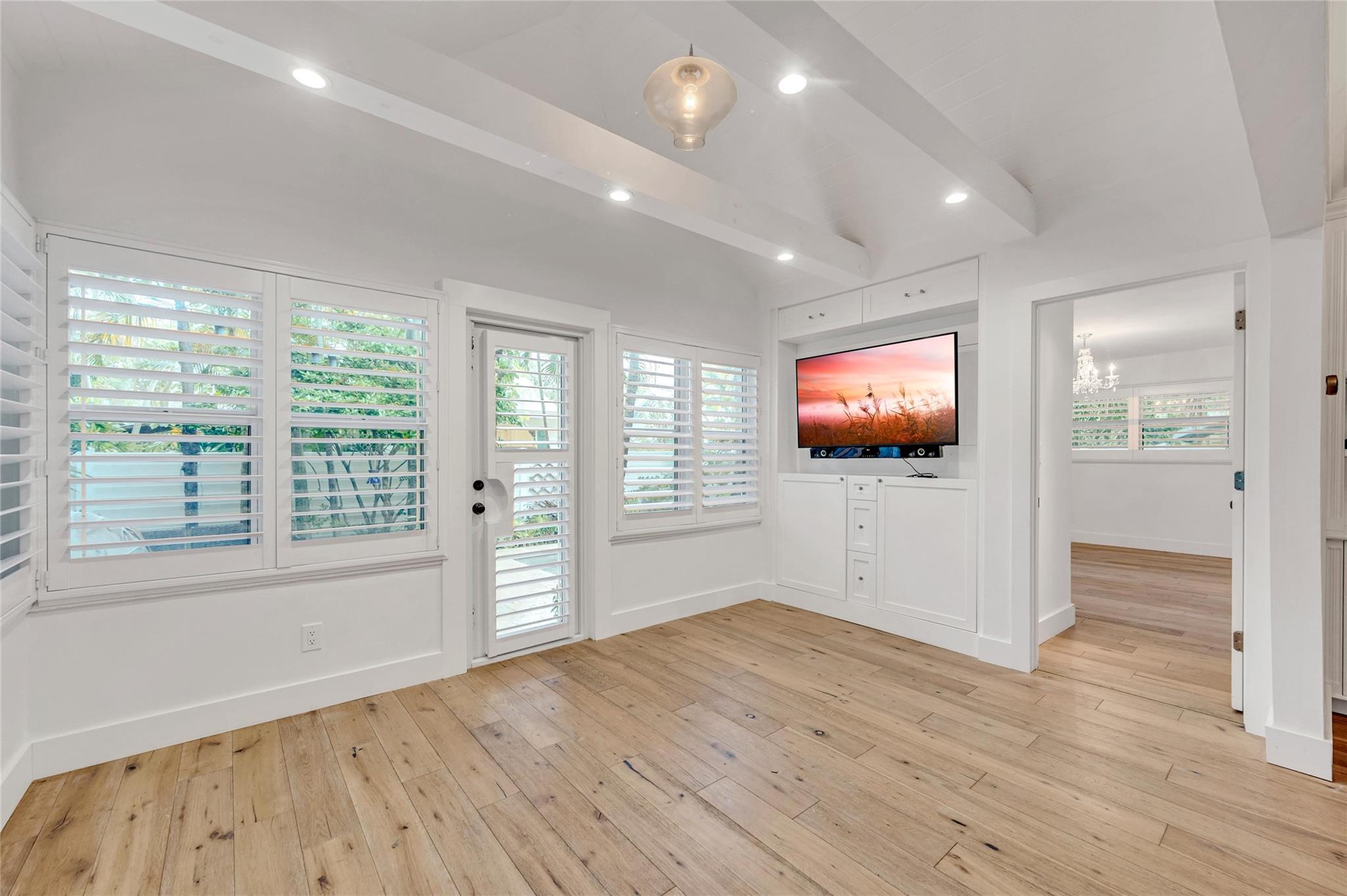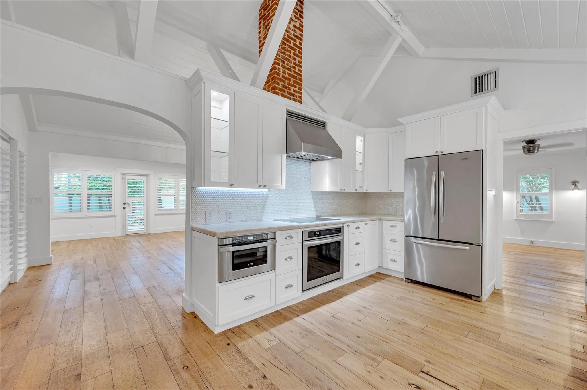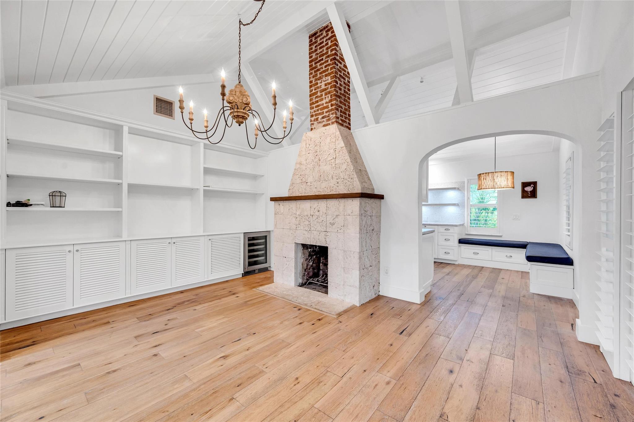 Renovated and extremely private Victoria Park pool home will have you feeling as if you are constantly on vacation in a tropical urban Utopia! Acutely-designed, split bedroom floor plan maximizes functionality by offering: a family room with an abundance of natural light and windows overlooking a chilled & heated salt-water pool; a den/sitting room w/amazing ambiance (and future amazing conversations!) thanks to a wood burning fireplace and impressive built-in bookcase; and a modern kitchen w/SS appliances, quartzite counters, cabinetry w/multiple pull-outs and a corner banquette for dining! Impact glass throughout and a metal roof provide additional peace of mind during storm season. But wait...there's more! An air-conditioned attic large enough to stand up and move around!