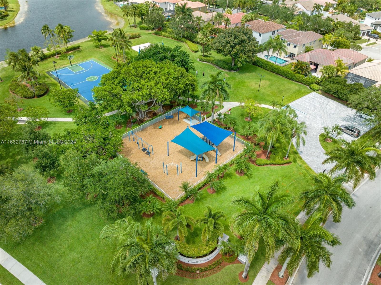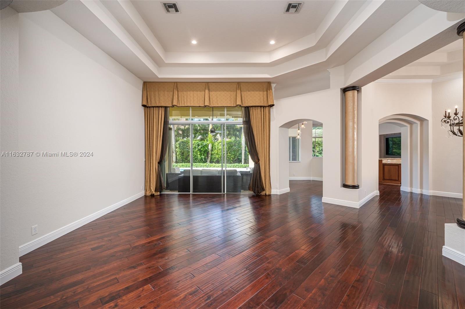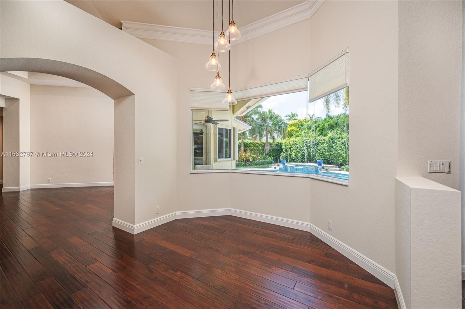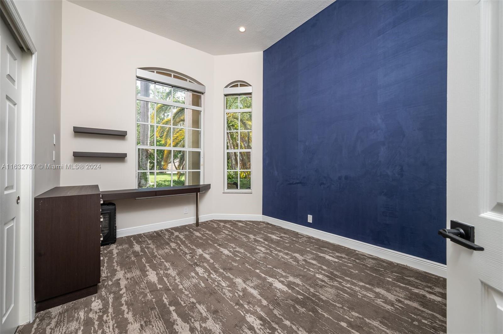 Large, one-story home located on a big corner lot in The Islands, 24-hour security guard-gated. Four bedrooms, office with built-ins, split design; three full baths & two half baths. Engineered hardwoods floors from foyer to formal living & dining areas, kitchen & family room. Main bedroom has two walk-in closets & a sitting area; main bathroom has a separate tub and two vanities & sinks. 2nd bedroom is an en-suite, 3rd & 4th bedrooms share a Jack-n-Jill bath. Half bath for guests near social areas & second half bath located by exit to pool. Modern pool & heated spa with travertine marble pavers in patio. Level 2 EV charger installed inside two-car Garage. Accordion shutters on all openings. Roof replaced in 2018 and maintained in 2023. Complete house painted inside and out in 2024.